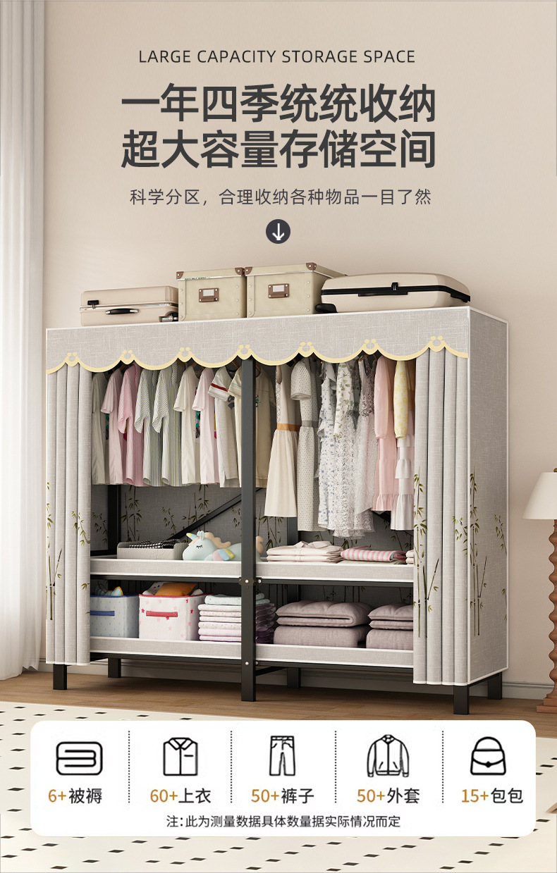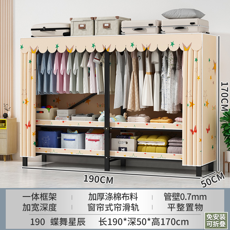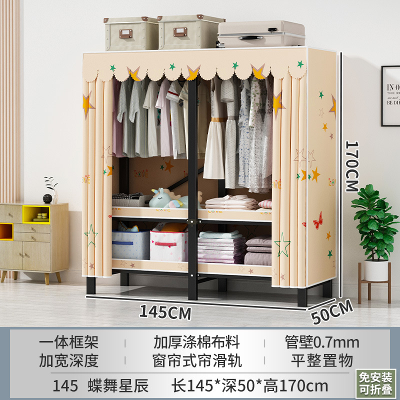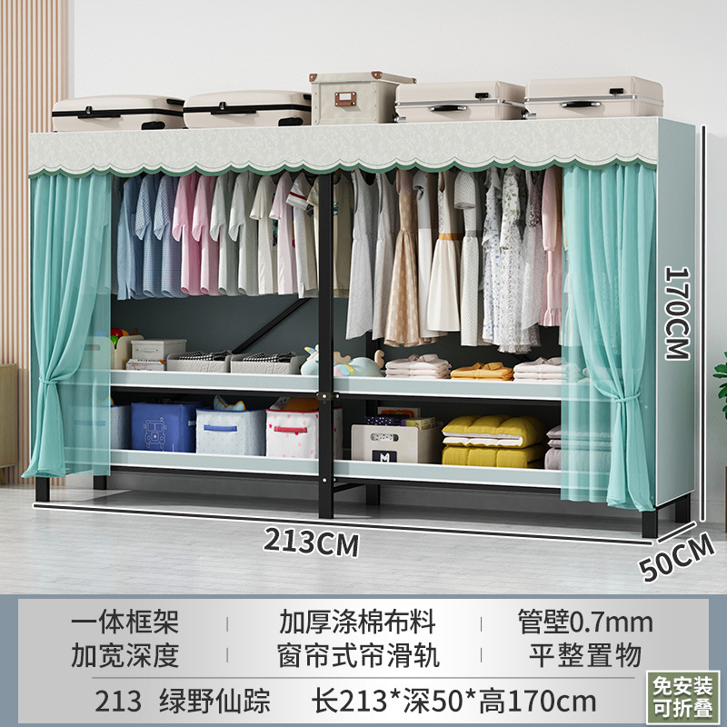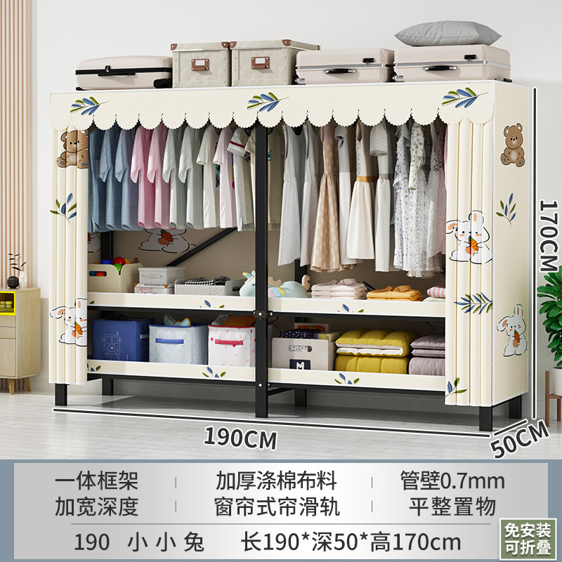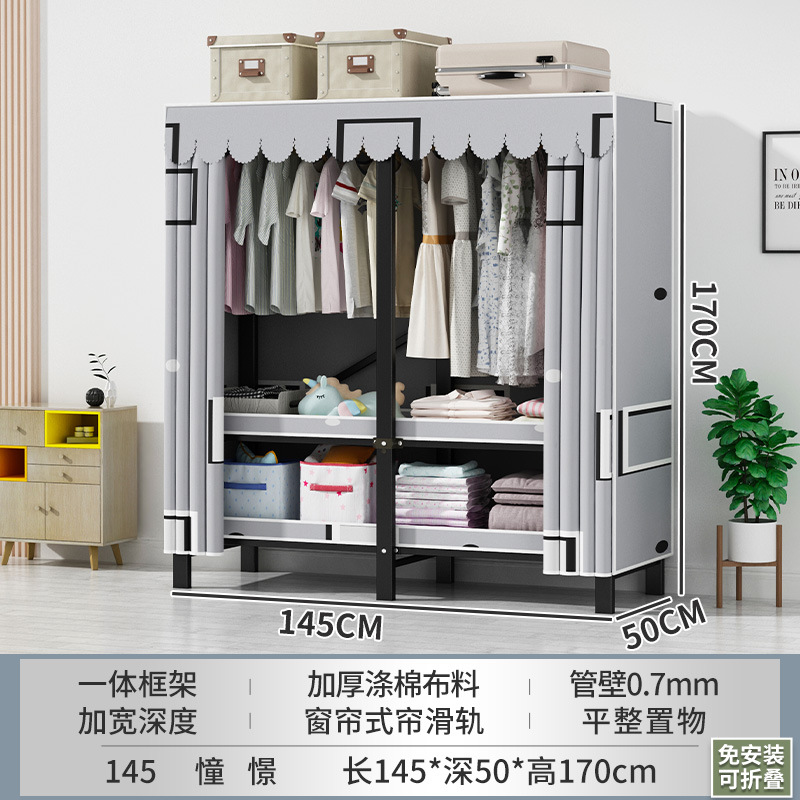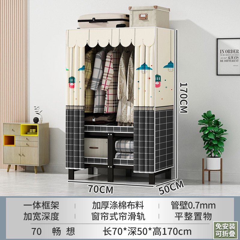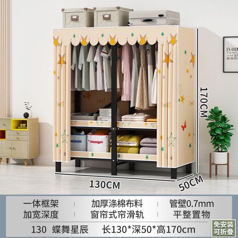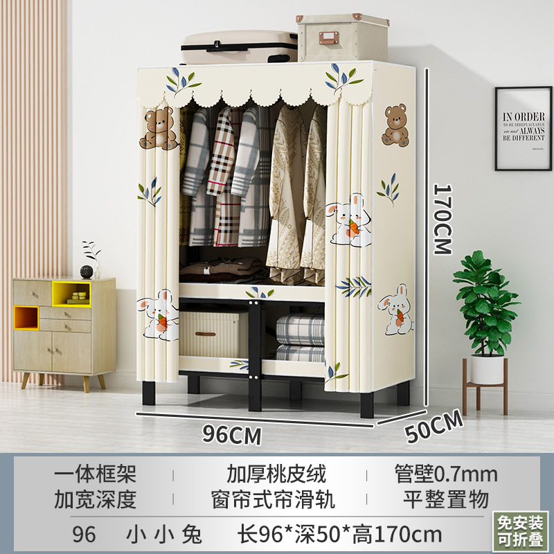 접이식 옷장 설치가 필요 없는 임대 주택 천 옷장 침실 튼튼하고 내구성이 뛰어난 간단한 옷장 강철 프레임 수납 옷장