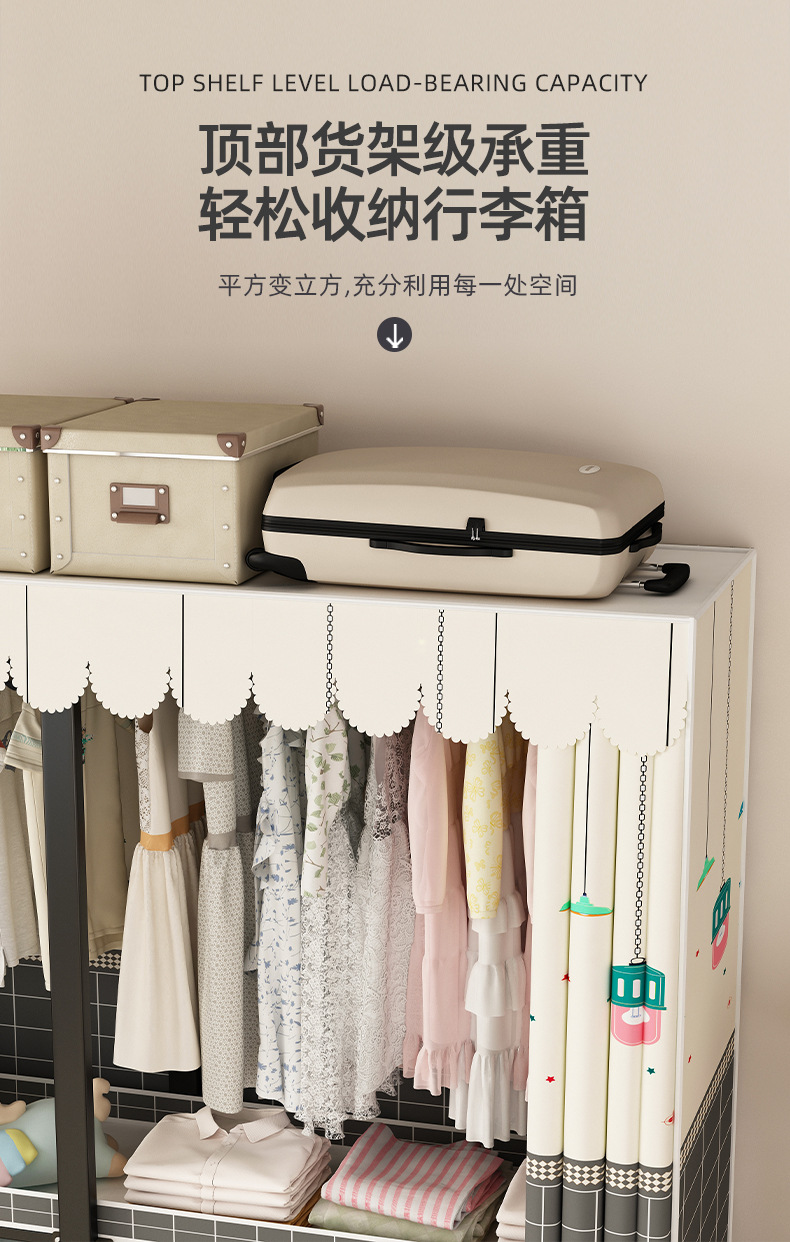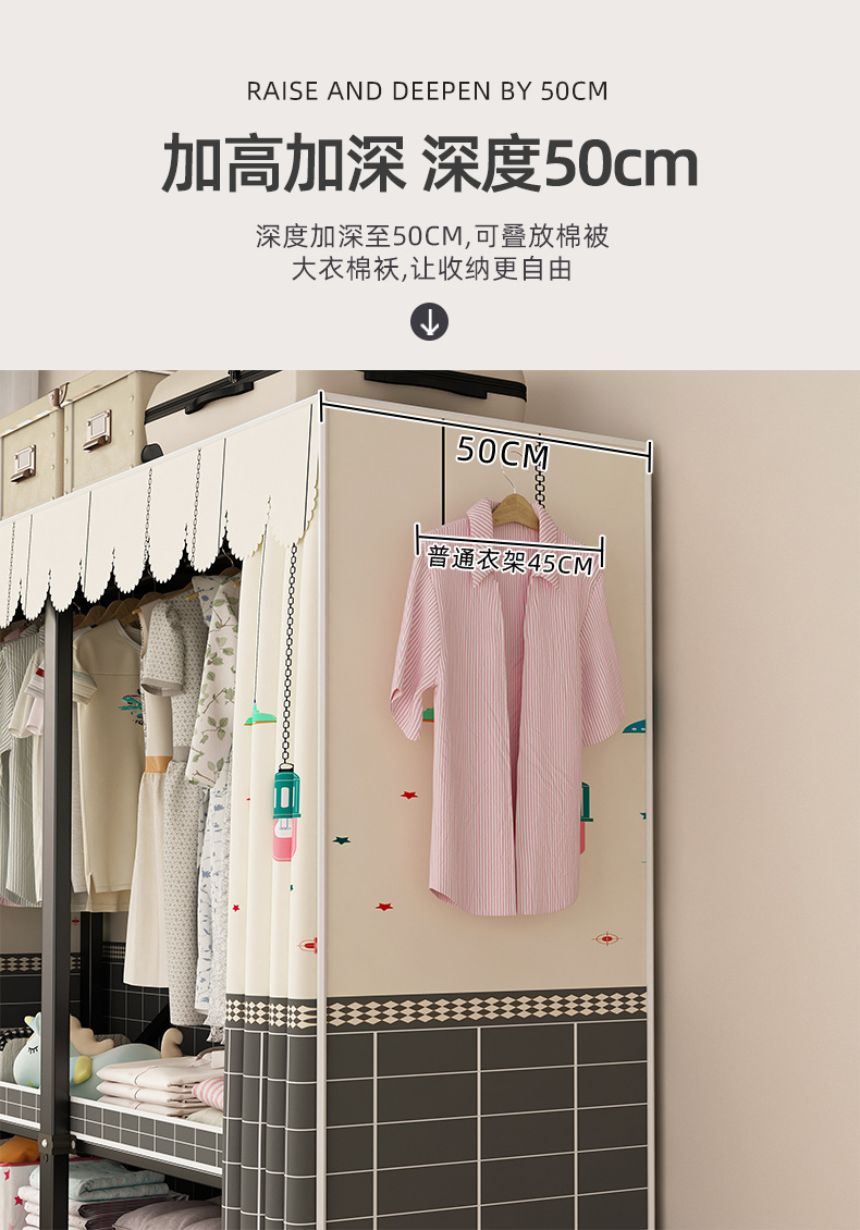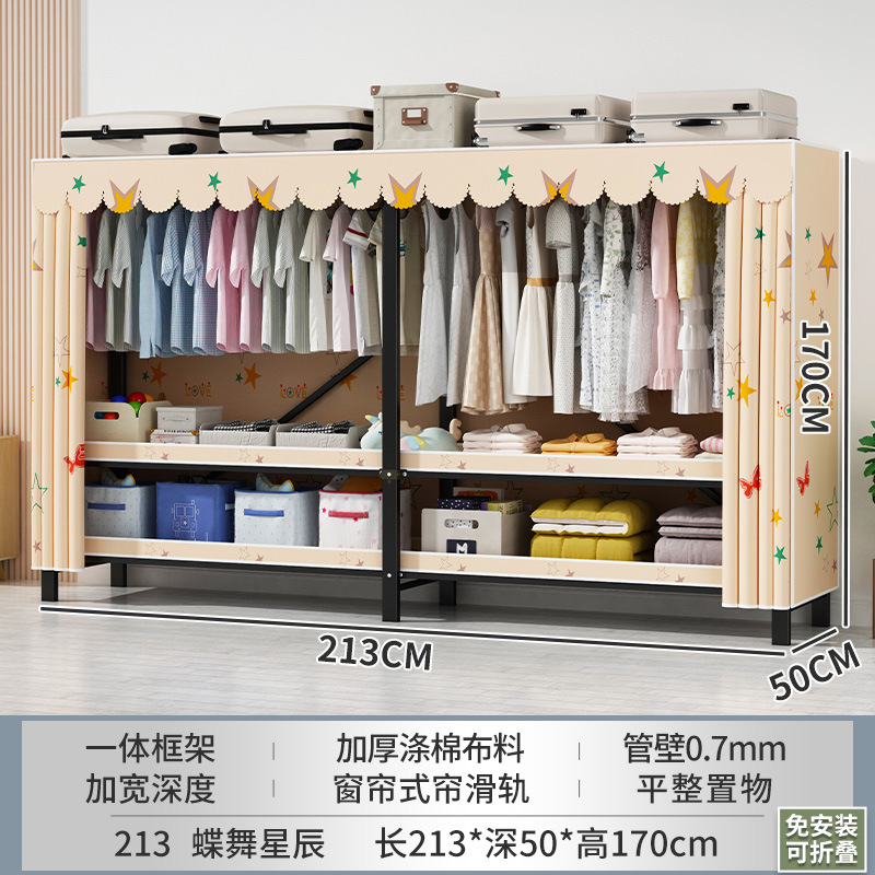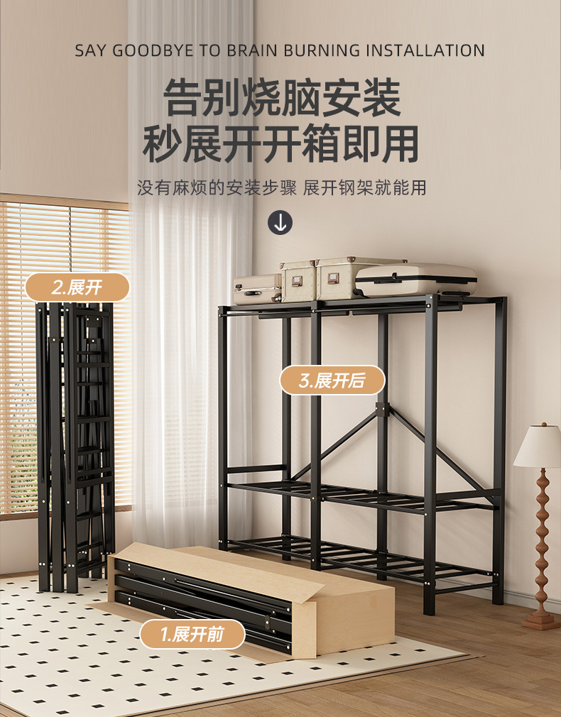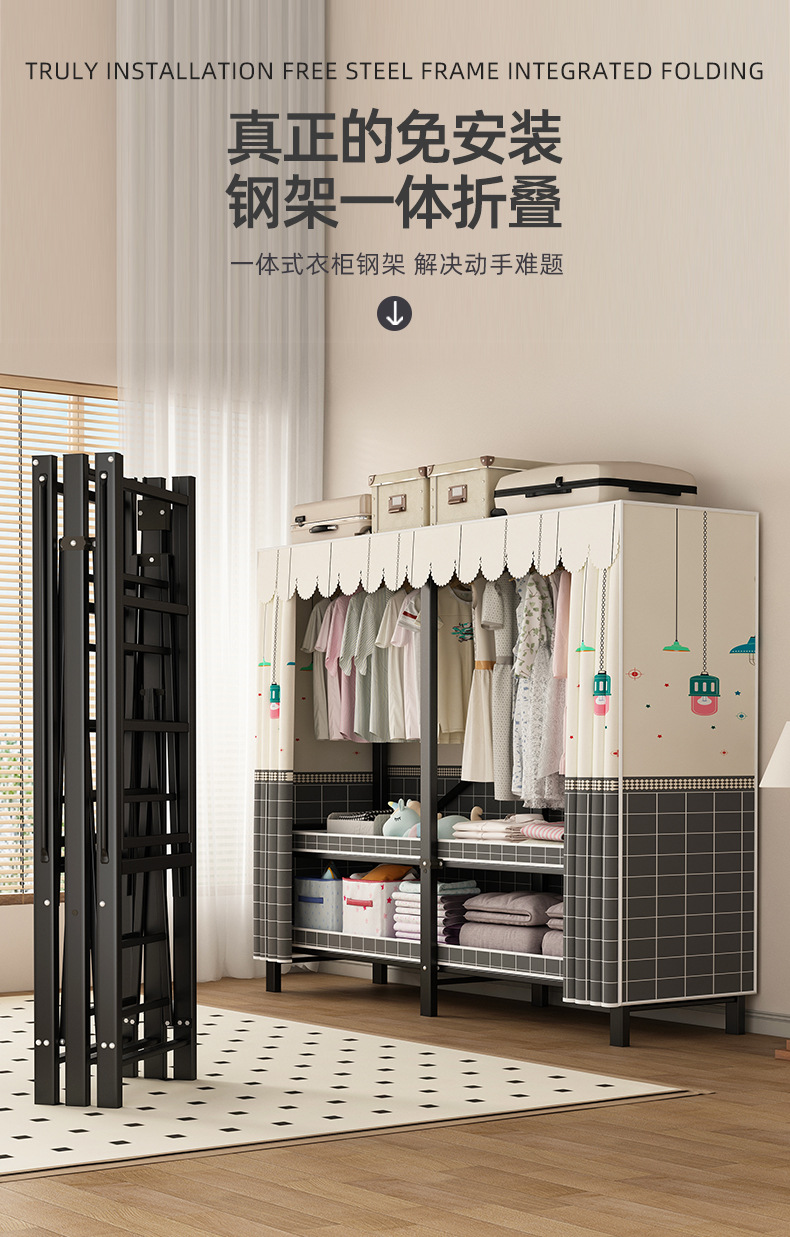 접이식 옷장 설치가 필요 없는 임대 주택 천 옷장 침실 튼튼하고 내구성이 뛰어난 간단한 옷장 강철 프레임 수납 옷장스토어 가기