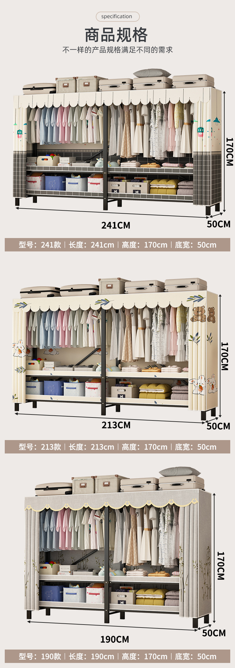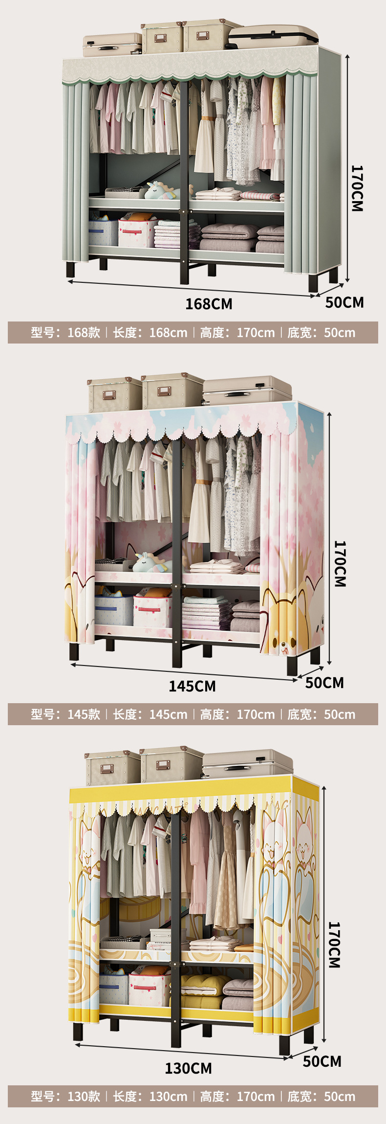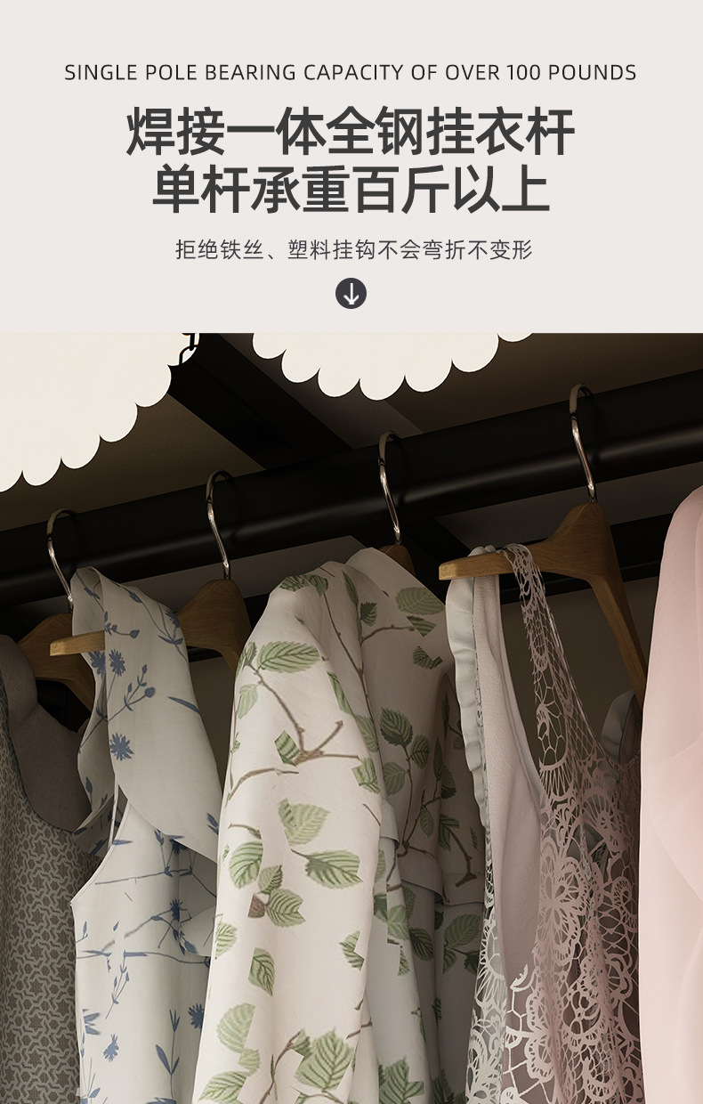 접이식 옷장 설치가 필요 없는 임대 주택 천 옷장 침실 튼튼하고 내구성이 뛰어난 간단한 옷장 강철 프레임 수납 옷장스토어 가기