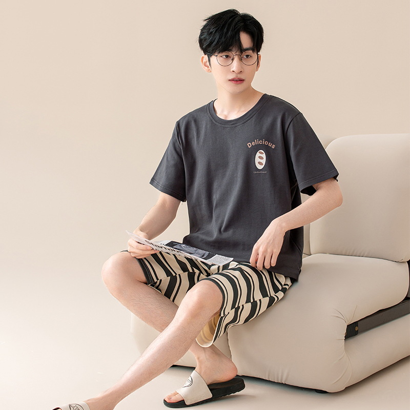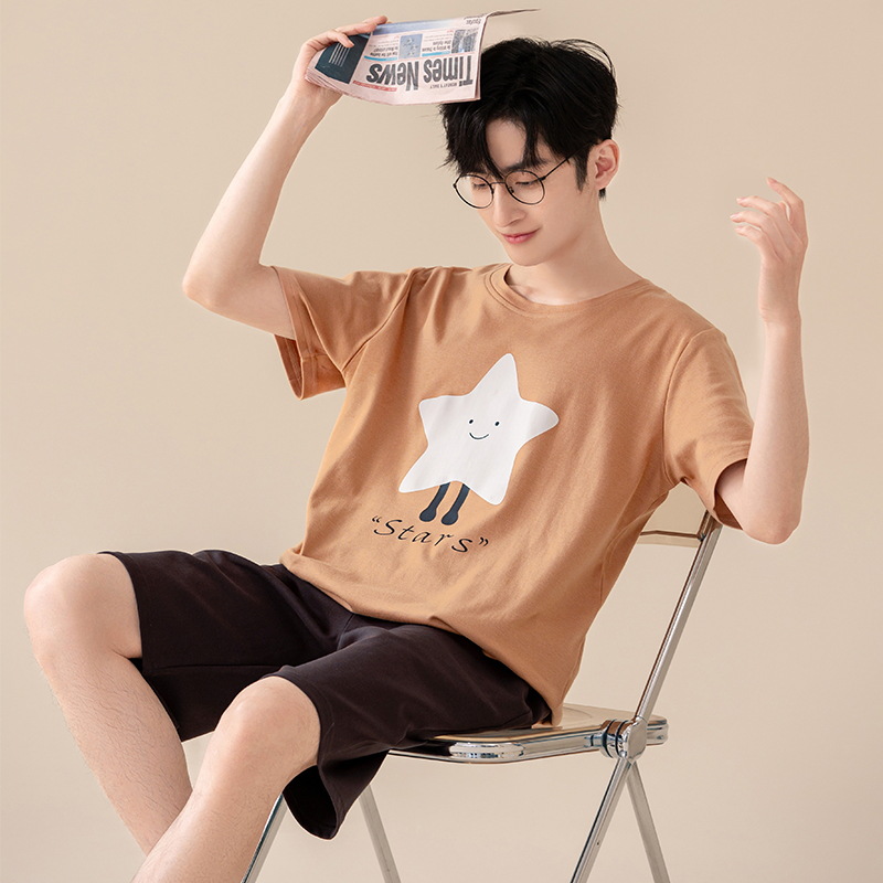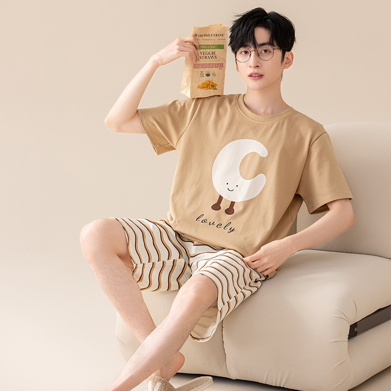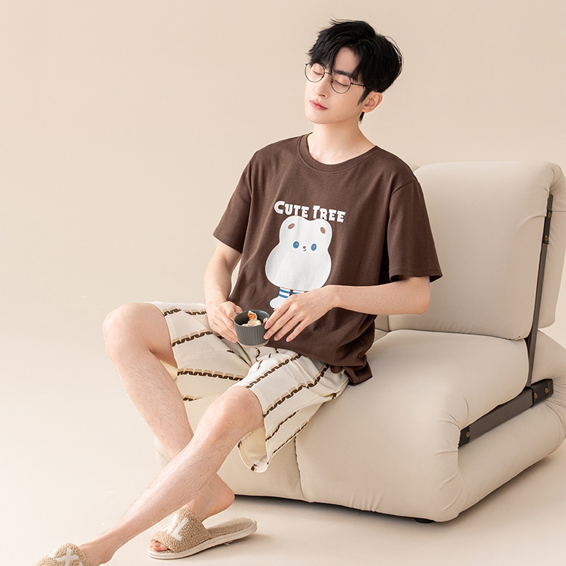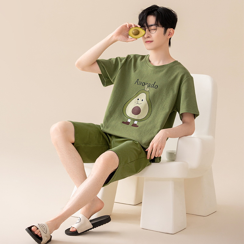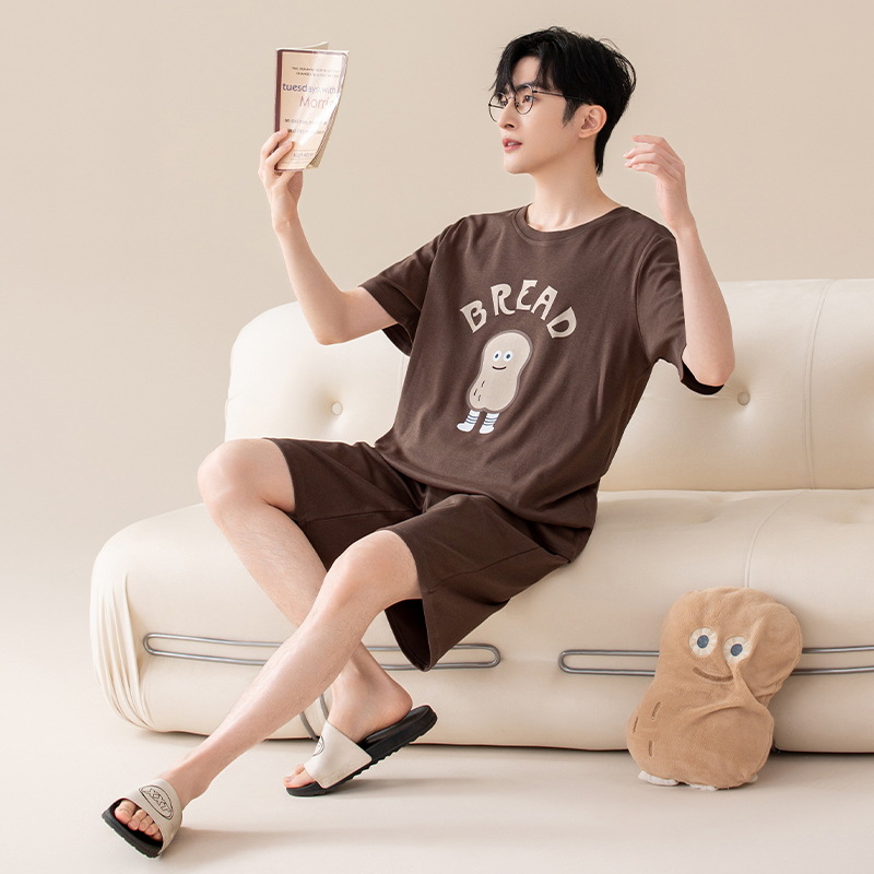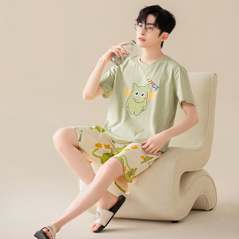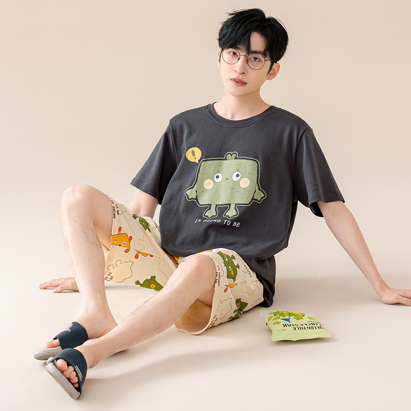 클래스 A 항균 면 잠옷 남성 여름 반팔 청소년 만화 착용 가능 면 가정 의류 남성 정장스토어 가기