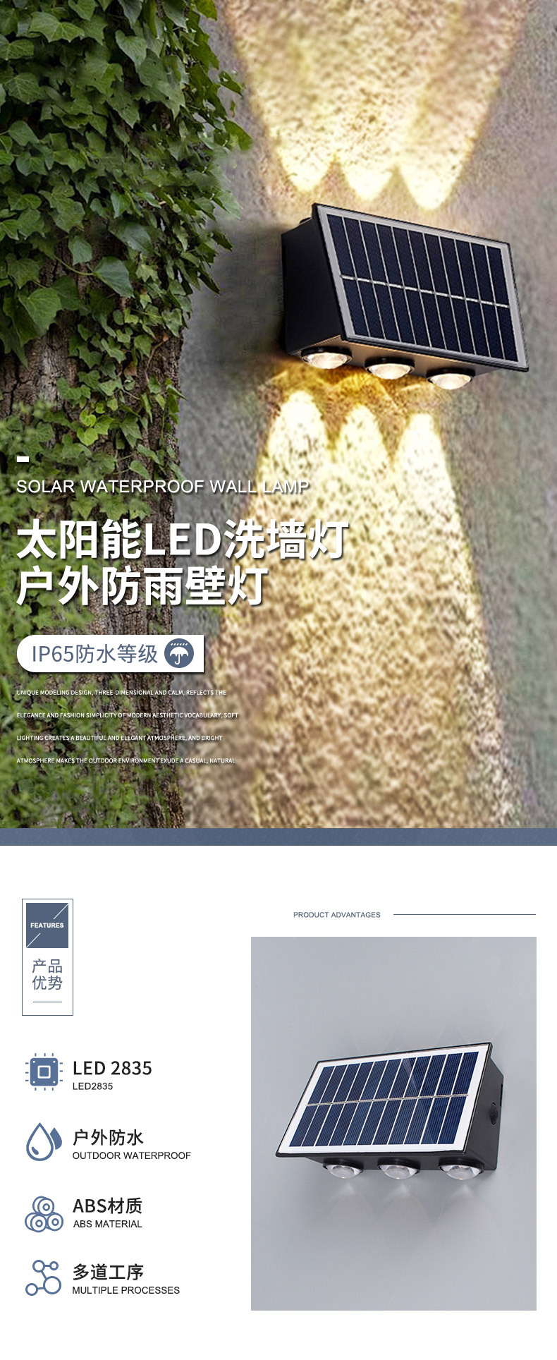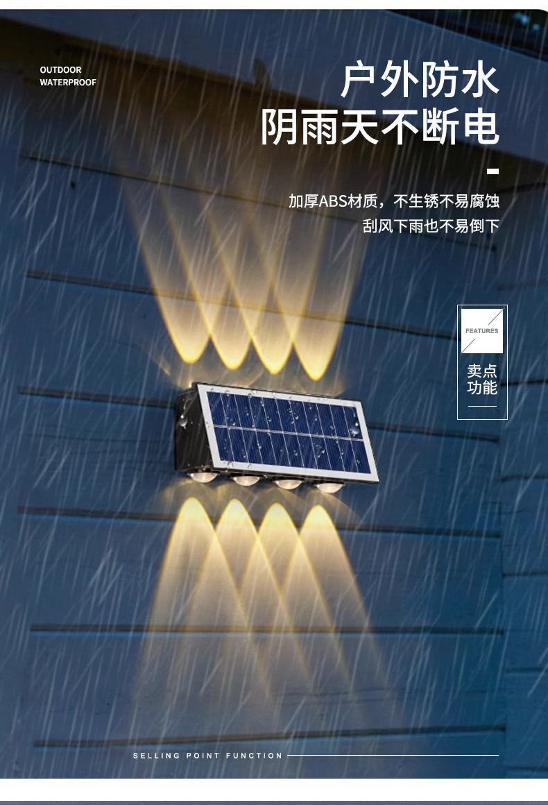 LED 태양광 벽등, 야외 방수, 듀얼 헤드 벽등, 다기능, 고휘도, 와이어리스 충전식 벽등스토어 가기