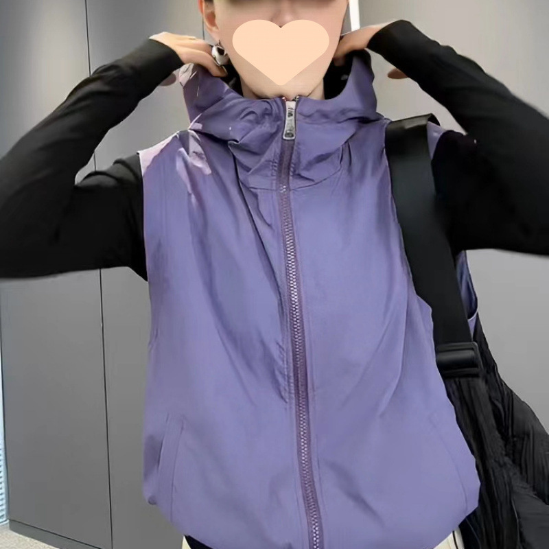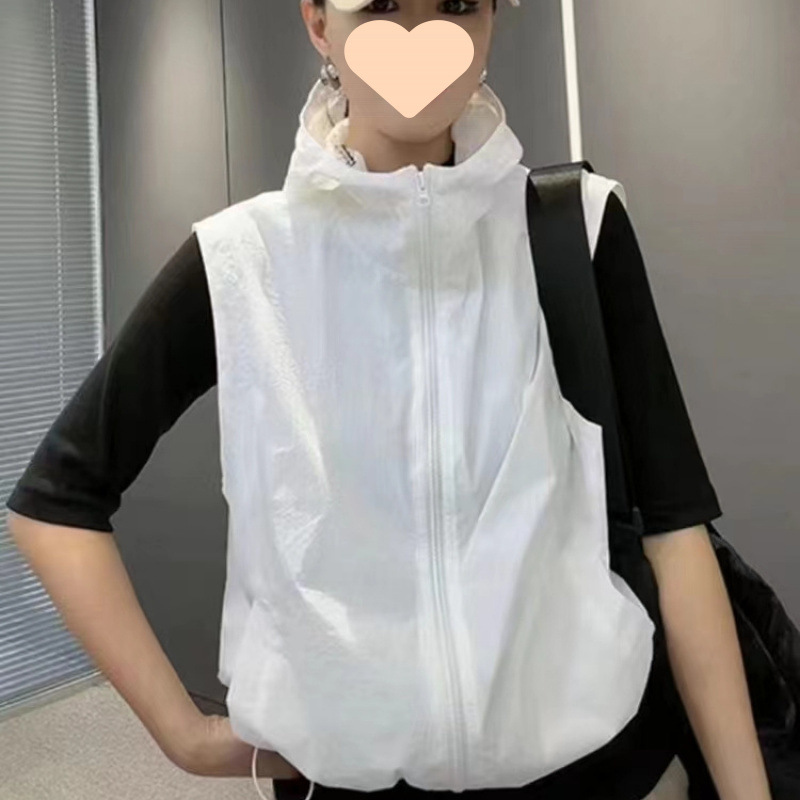 고품질 캐주얼 후드 연령 감소 솔리드 컬러 조끼 여성 가을 한국 스타일 느슨한 슬리밍 후드 태양 조끼