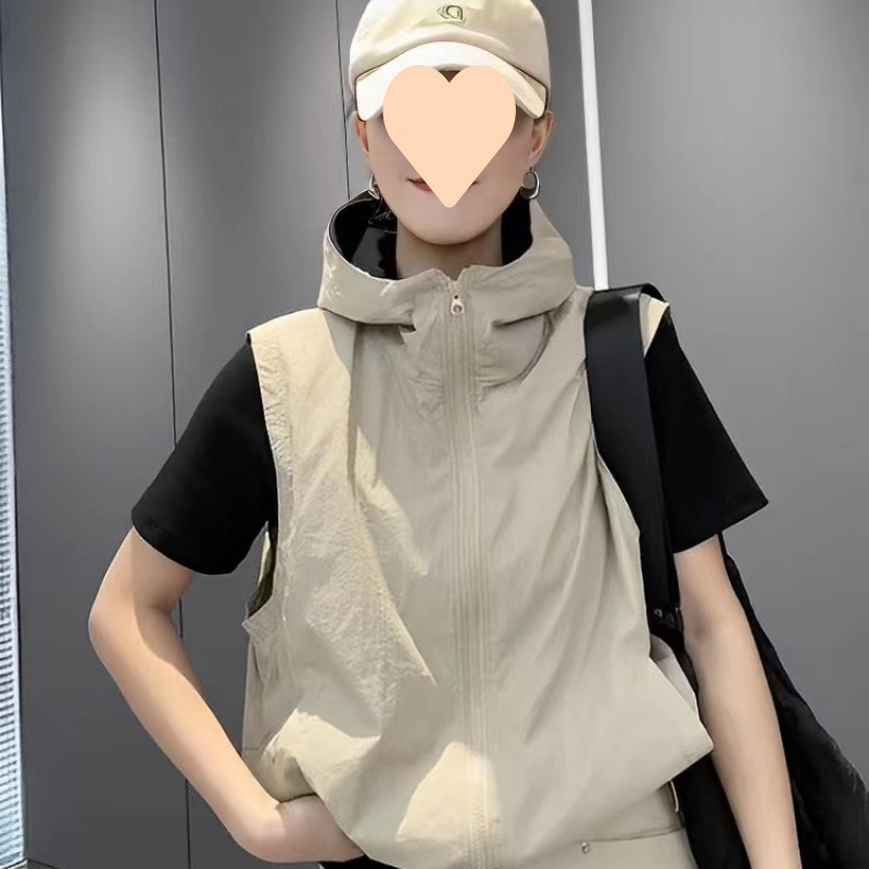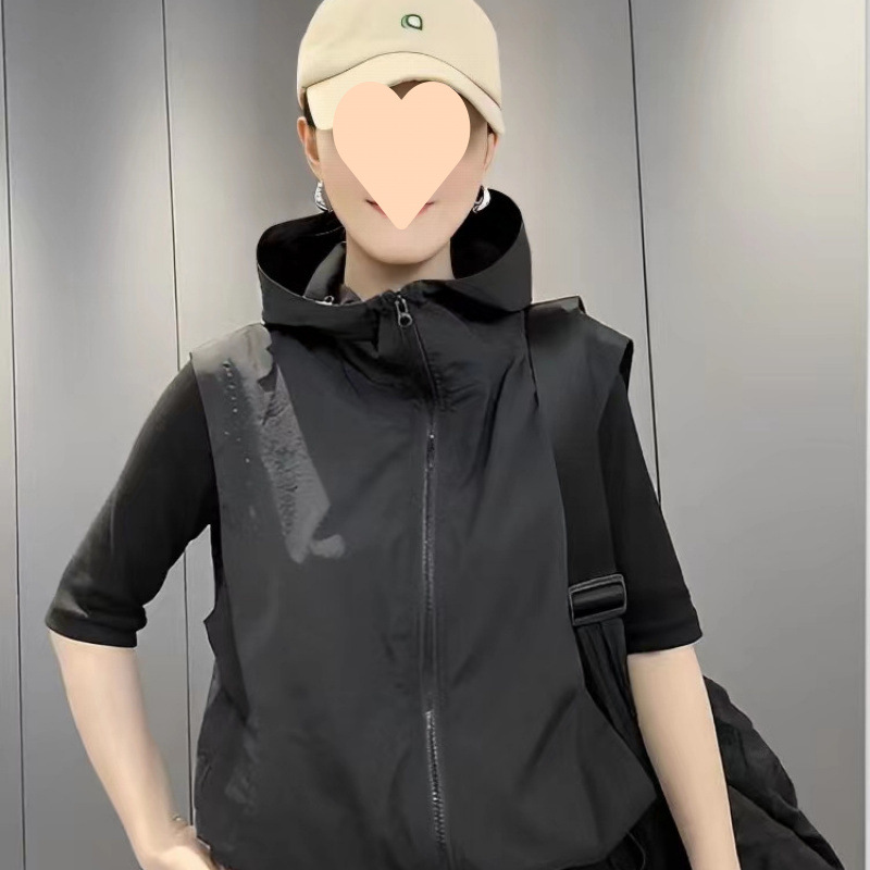고품질 캐주얼 후드 연령 감소 솔리드 컬러 조끼 여성 가을 한국 스타일 느슨한 슬리밍 후드 태양 조끼스토어 가기
