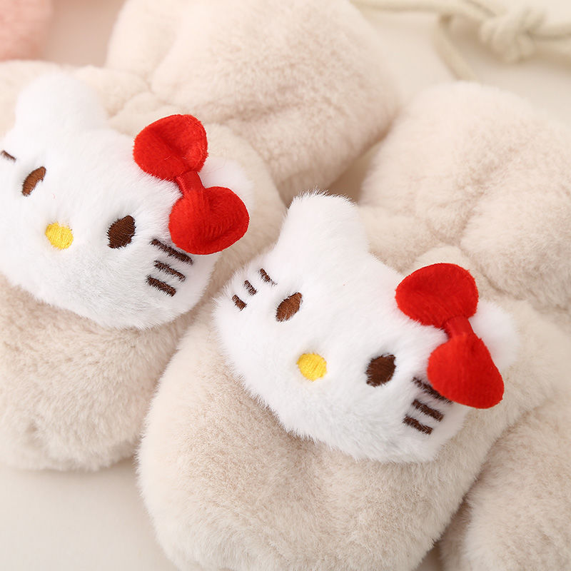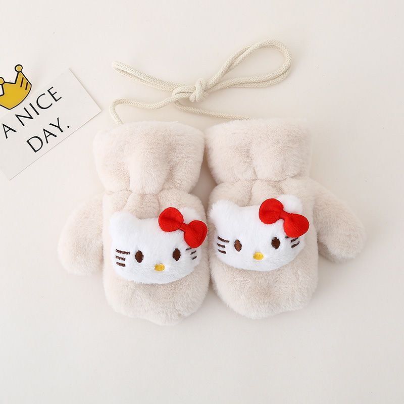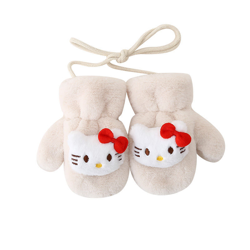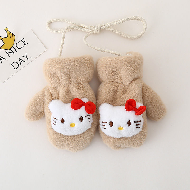 • KT 고양이 고삐 봉제장갑 - 베이지 (벨벳,두꺼움)