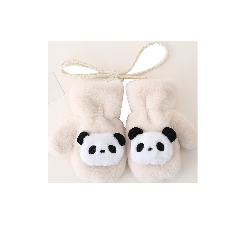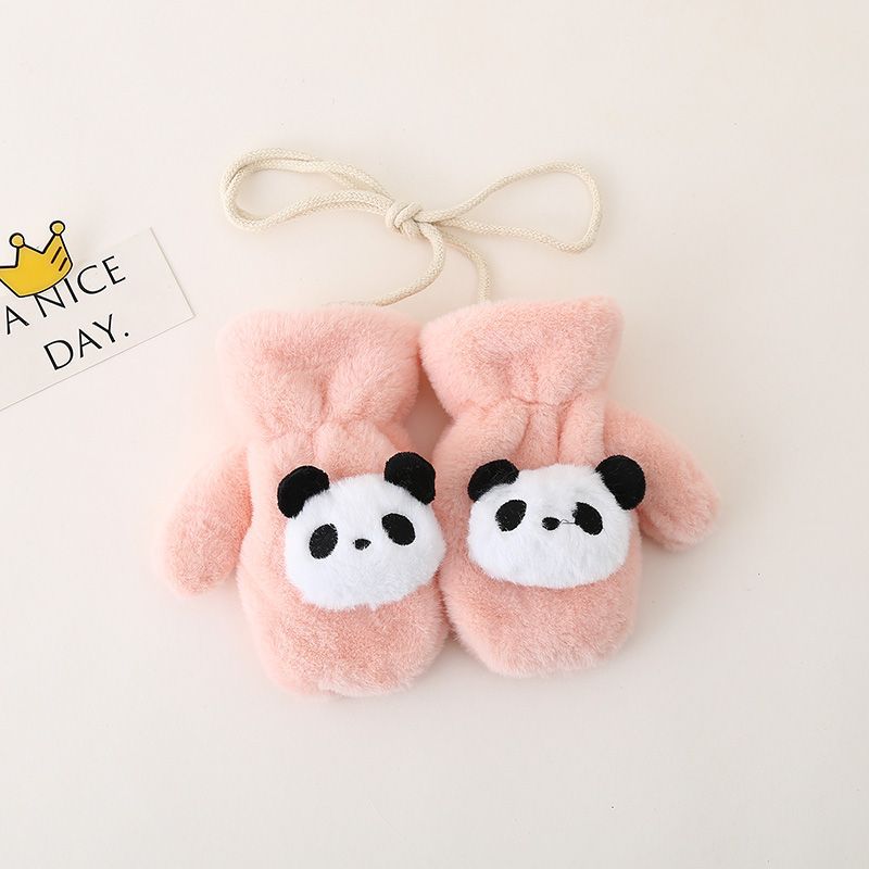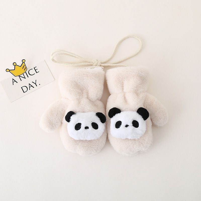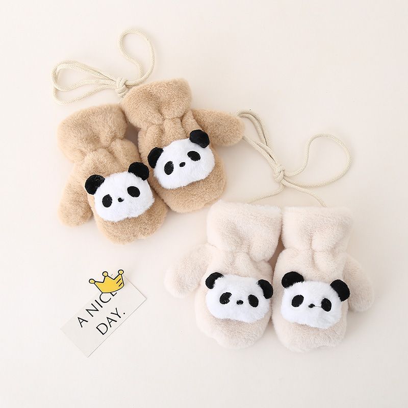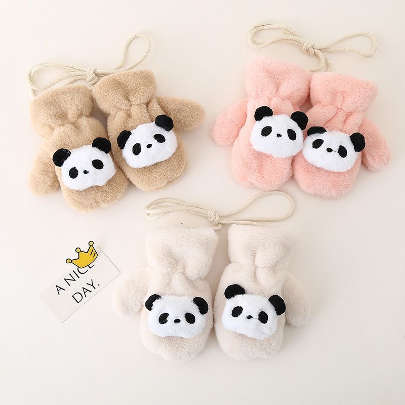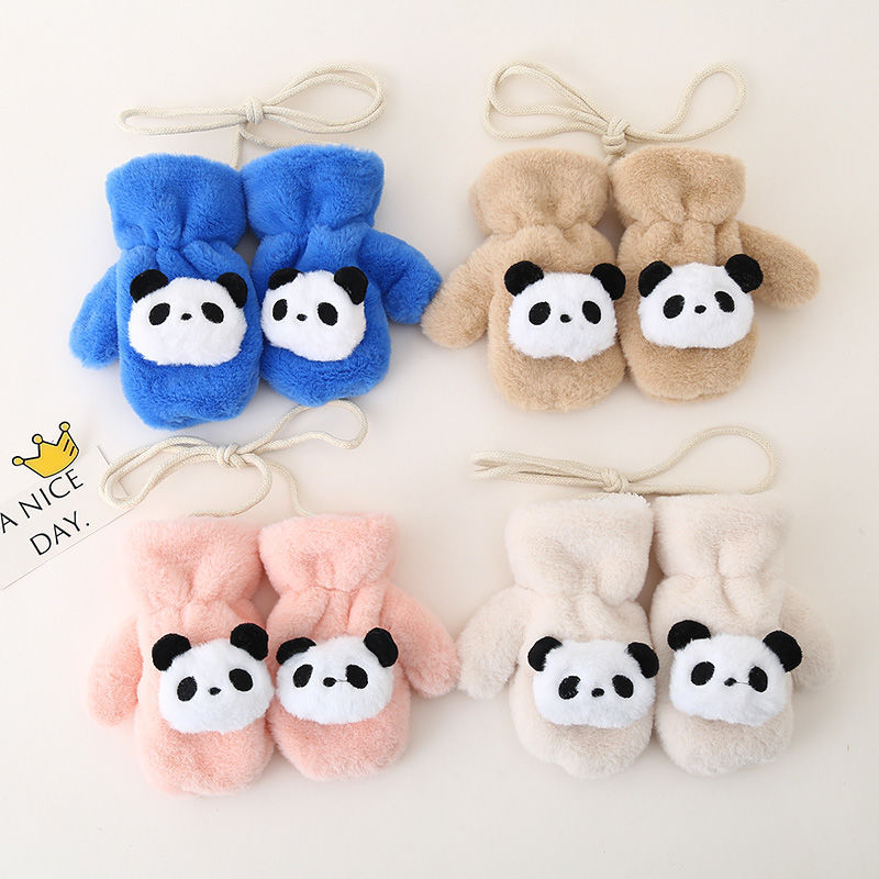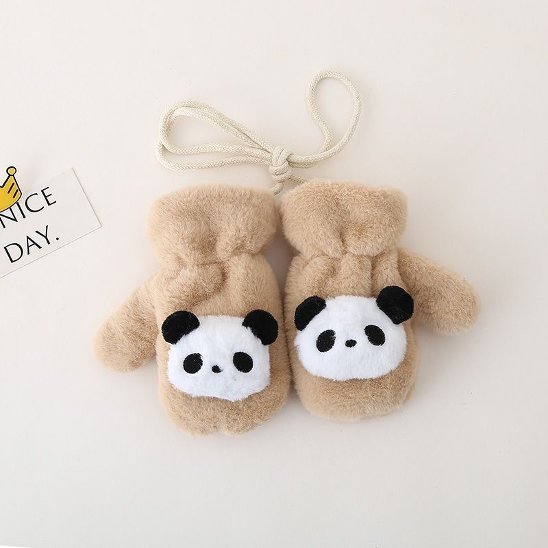 1~6세 어린이를 위한 벨벳과 두툼한 귀여운 레드 팬더가 포함된 아기 장갑, 방한 및 동결 방지 플러시 소프트 일체형 손가락 장갑