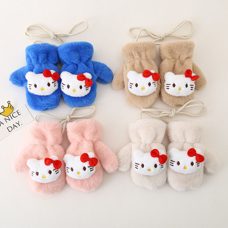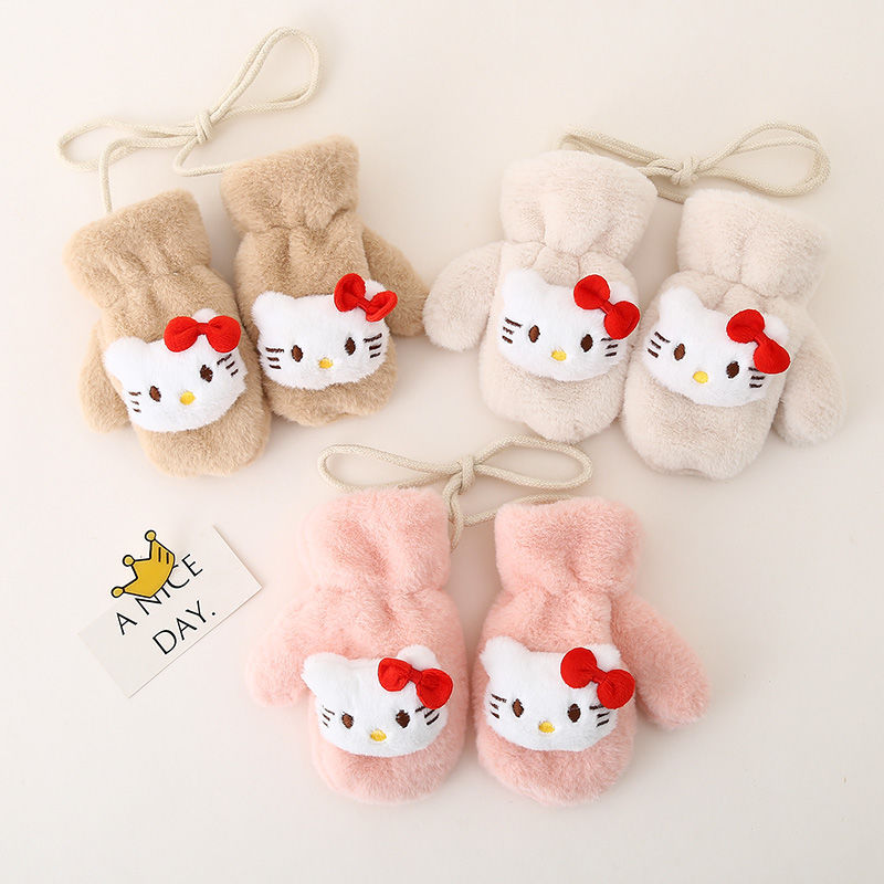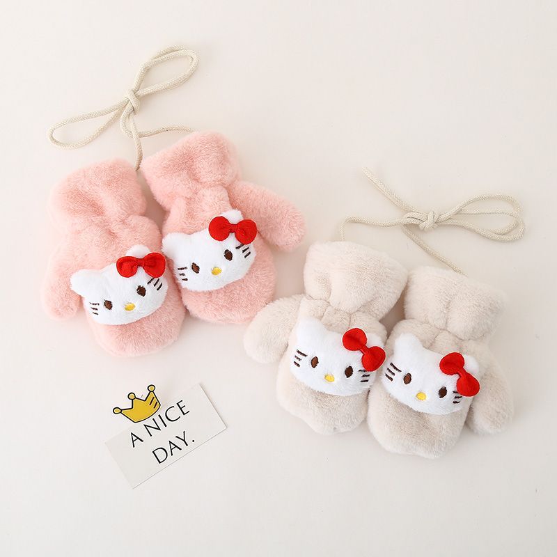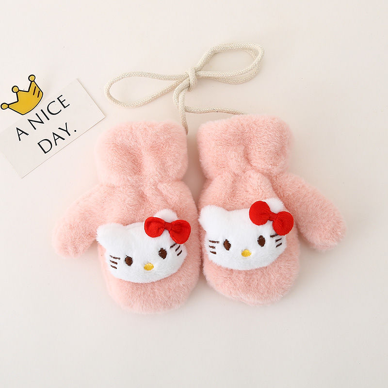 • KT 고양이 고삐 봉제장갑 - 핑크 (벨벳,두꺼움)