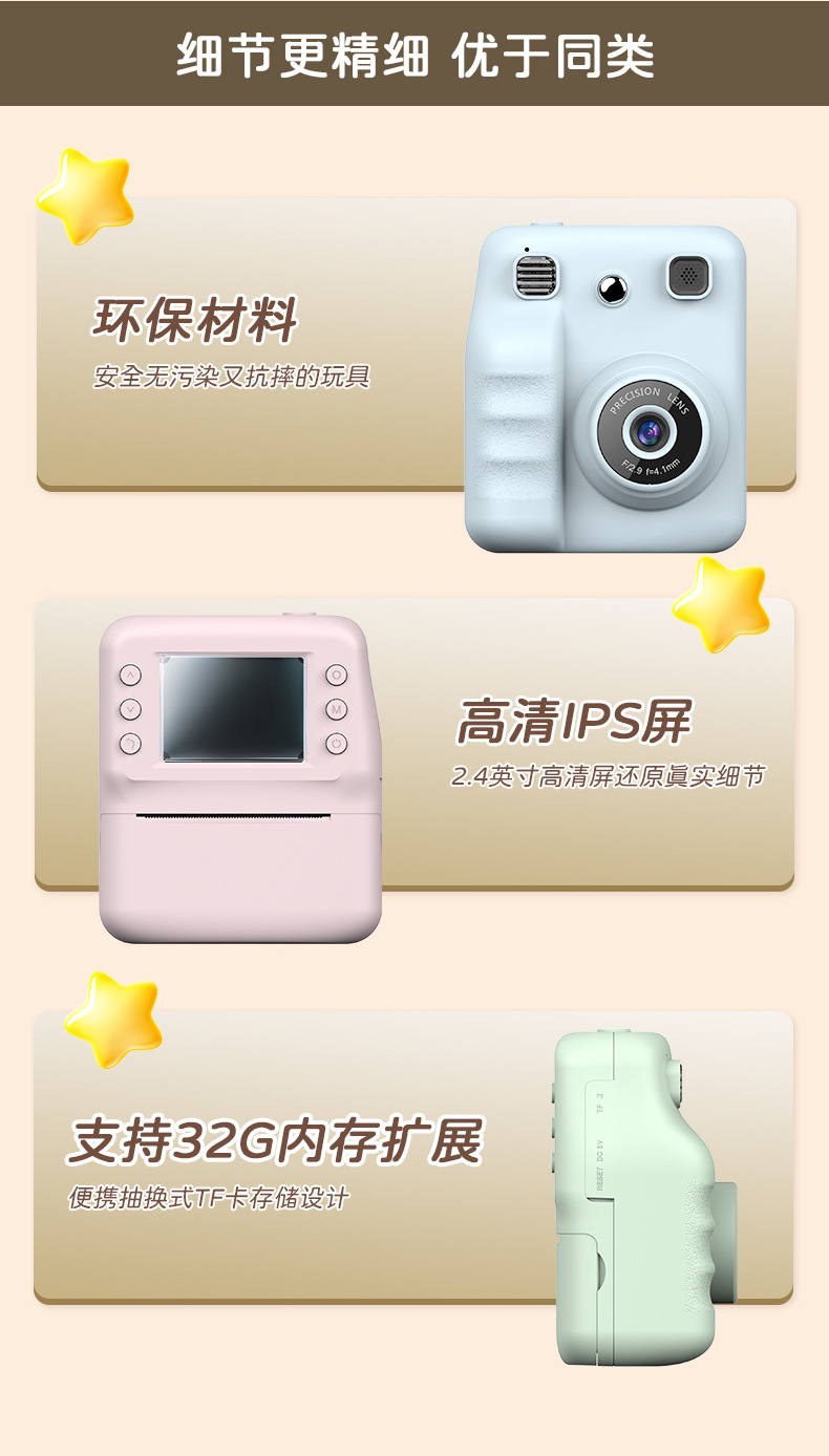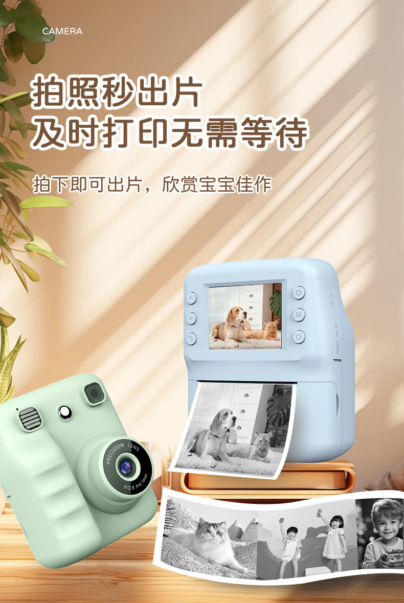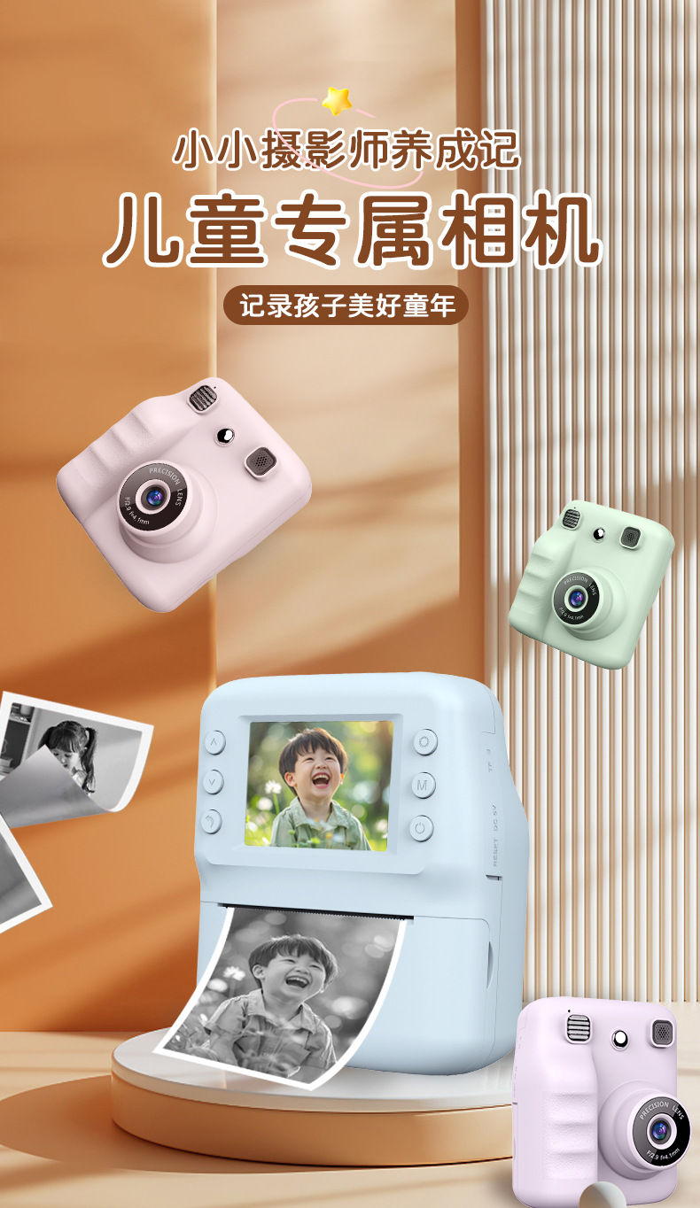새로운 국경 간 즉석 사진 휴대용 열 인쇄 카메라 미니 패션 어린이 선물 카메라 즉시 인쇄