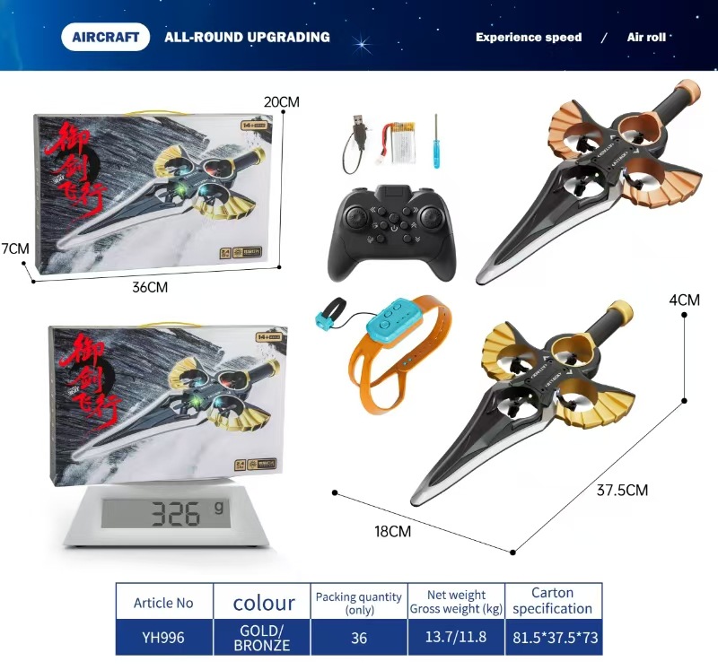 • 제스처 모델 - Royal Sword Flying 원격 제어 항공기 - 블랙 골드