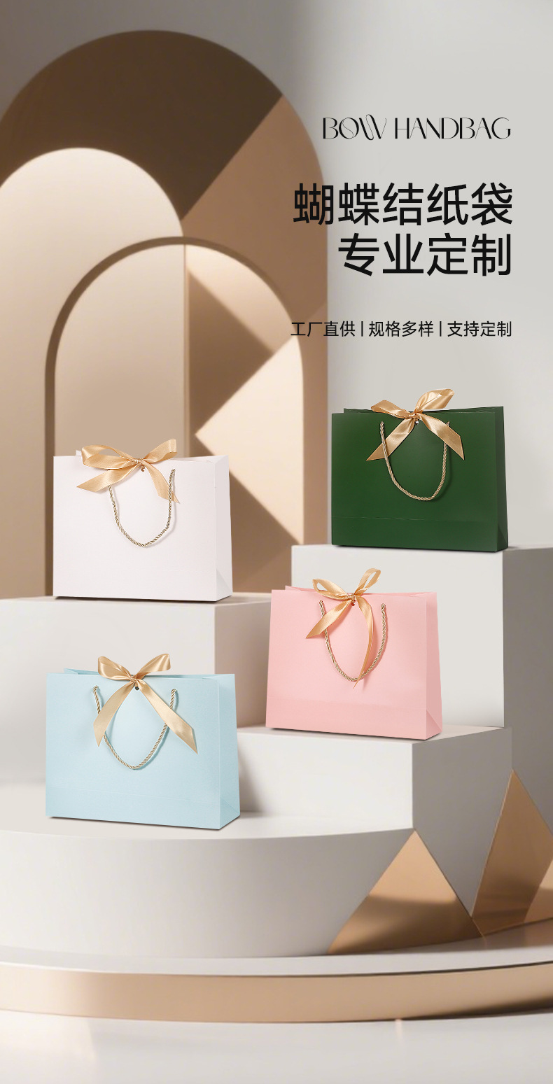 맞춤형 핸드백 리본 장식 두꺼운 명절 브랜드 홍보 로고 선물 가방 광고 창의적인 쇼핑백