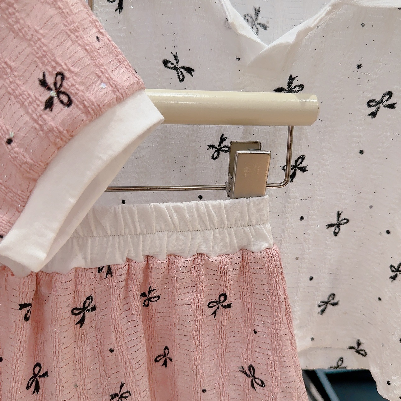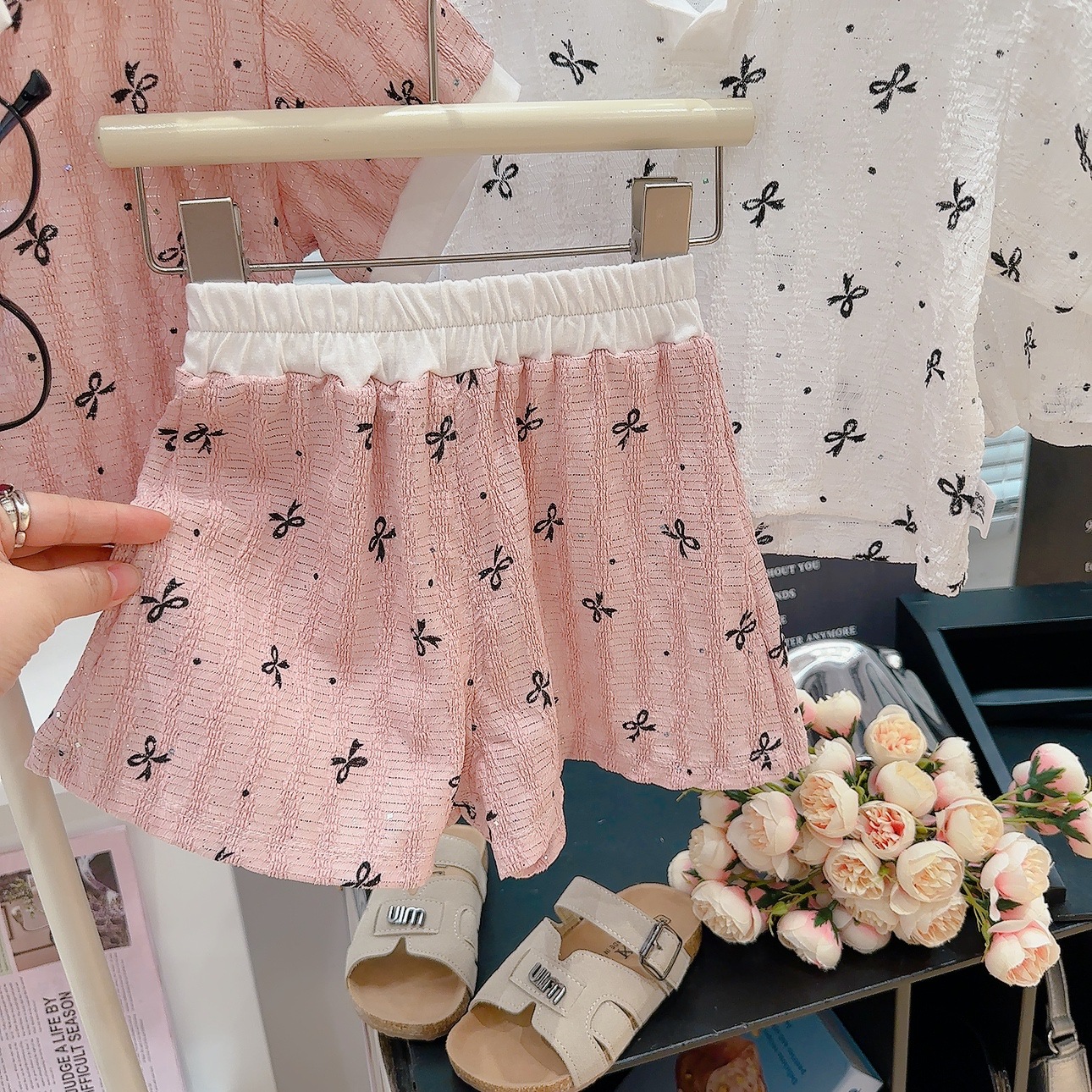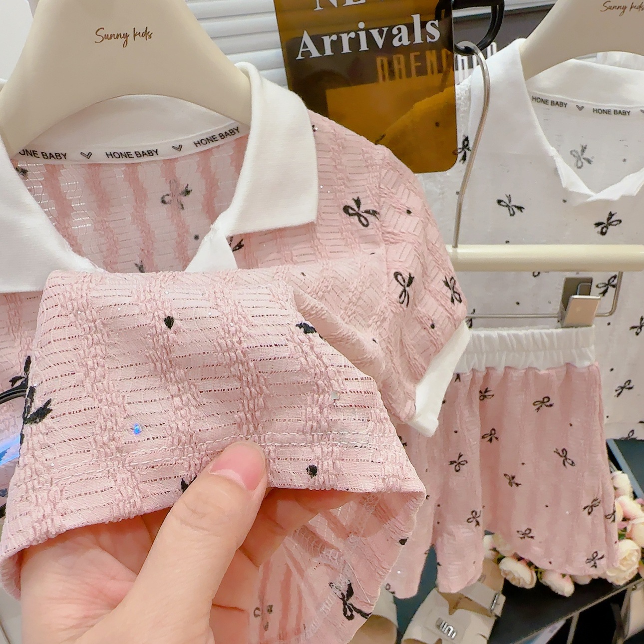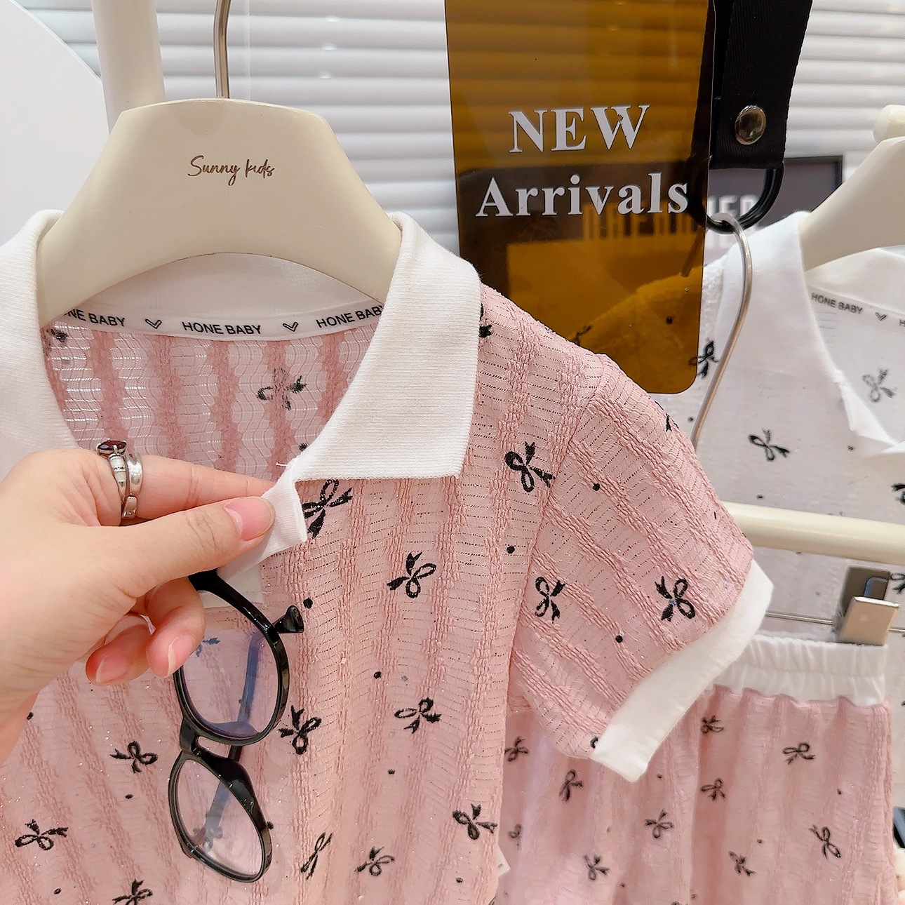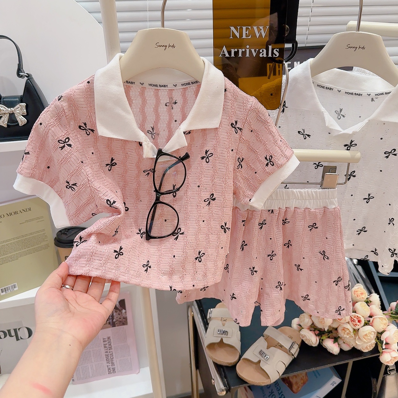 폴로 칼라 밑단 반팔 셔츠 반바지 여름 새 스타일 달콤한 아기 소녀 투피스 세트 패션 옷깃스토어 가기