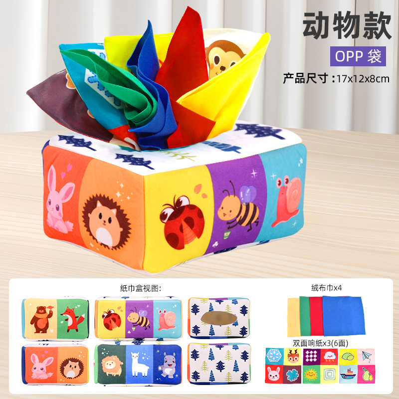 • 동물 디자인 - 고급 벨벳 소재 (벨벳 손수건 4장 + 바스락거리는 소리 나는 종이 3장 포함)