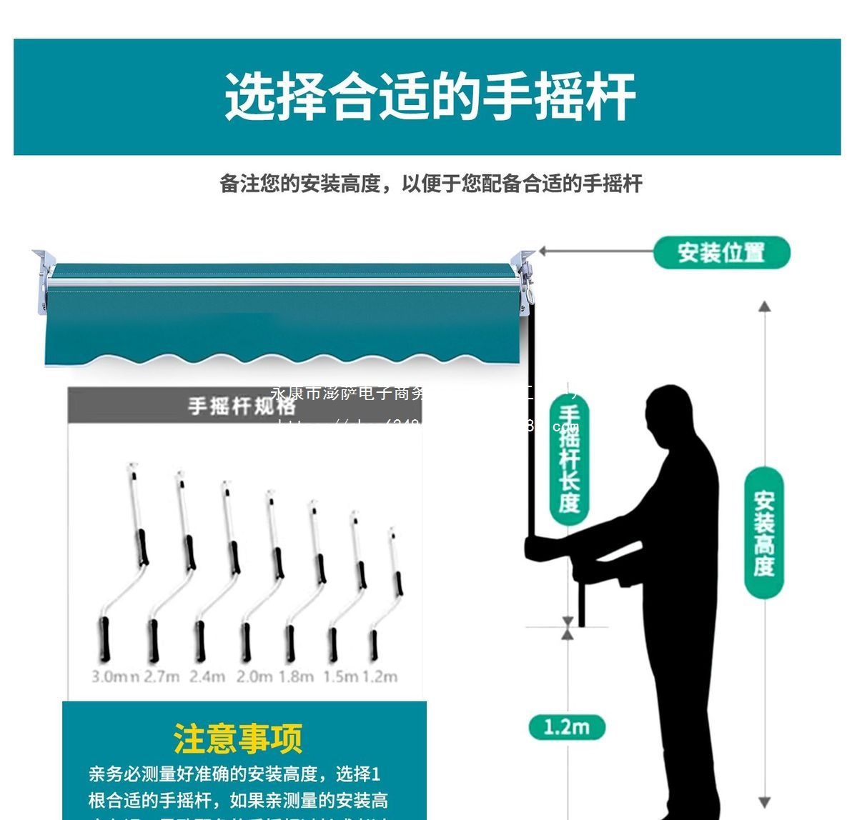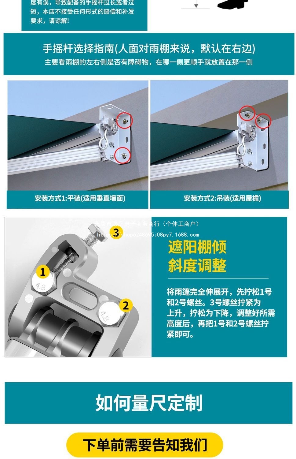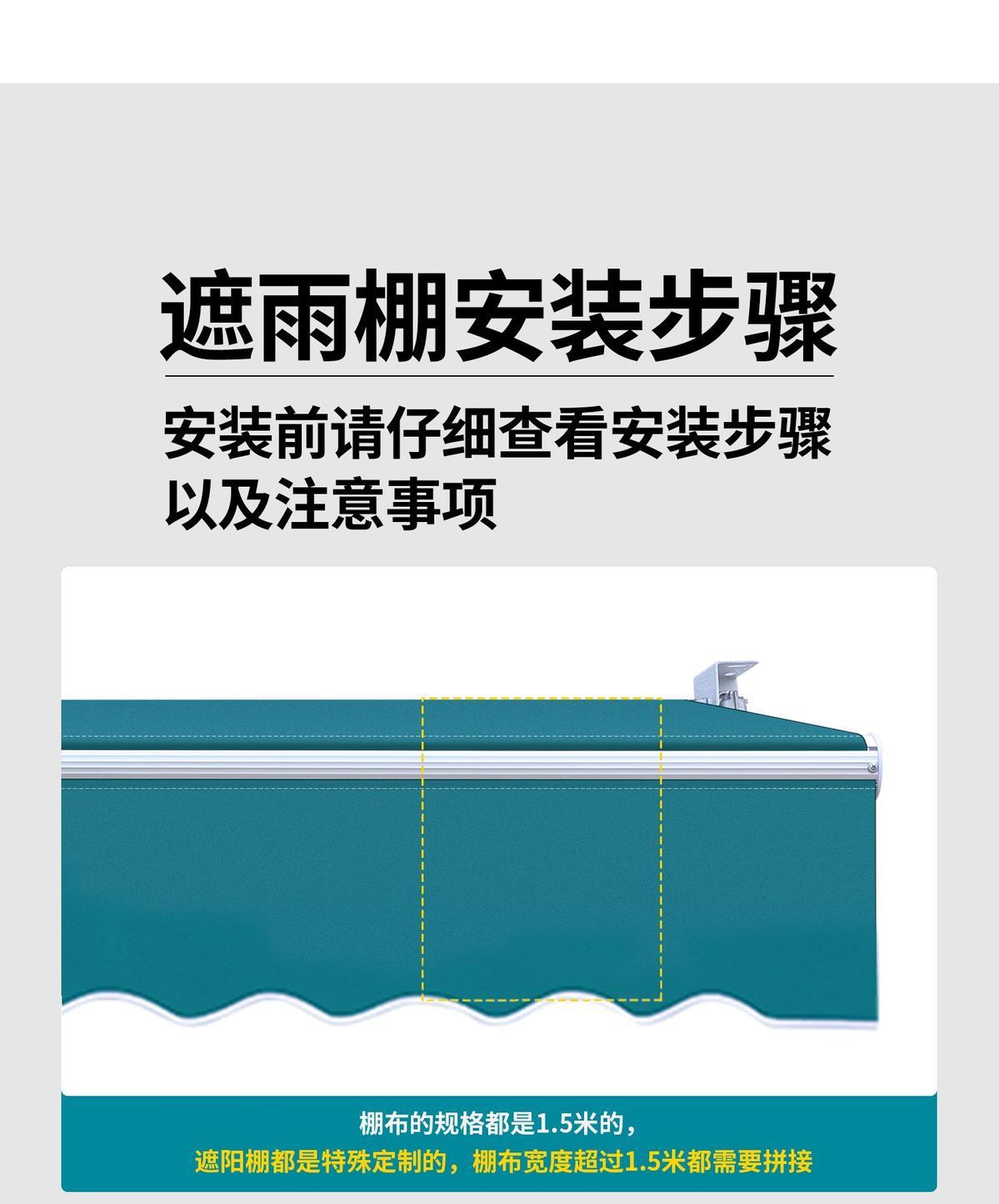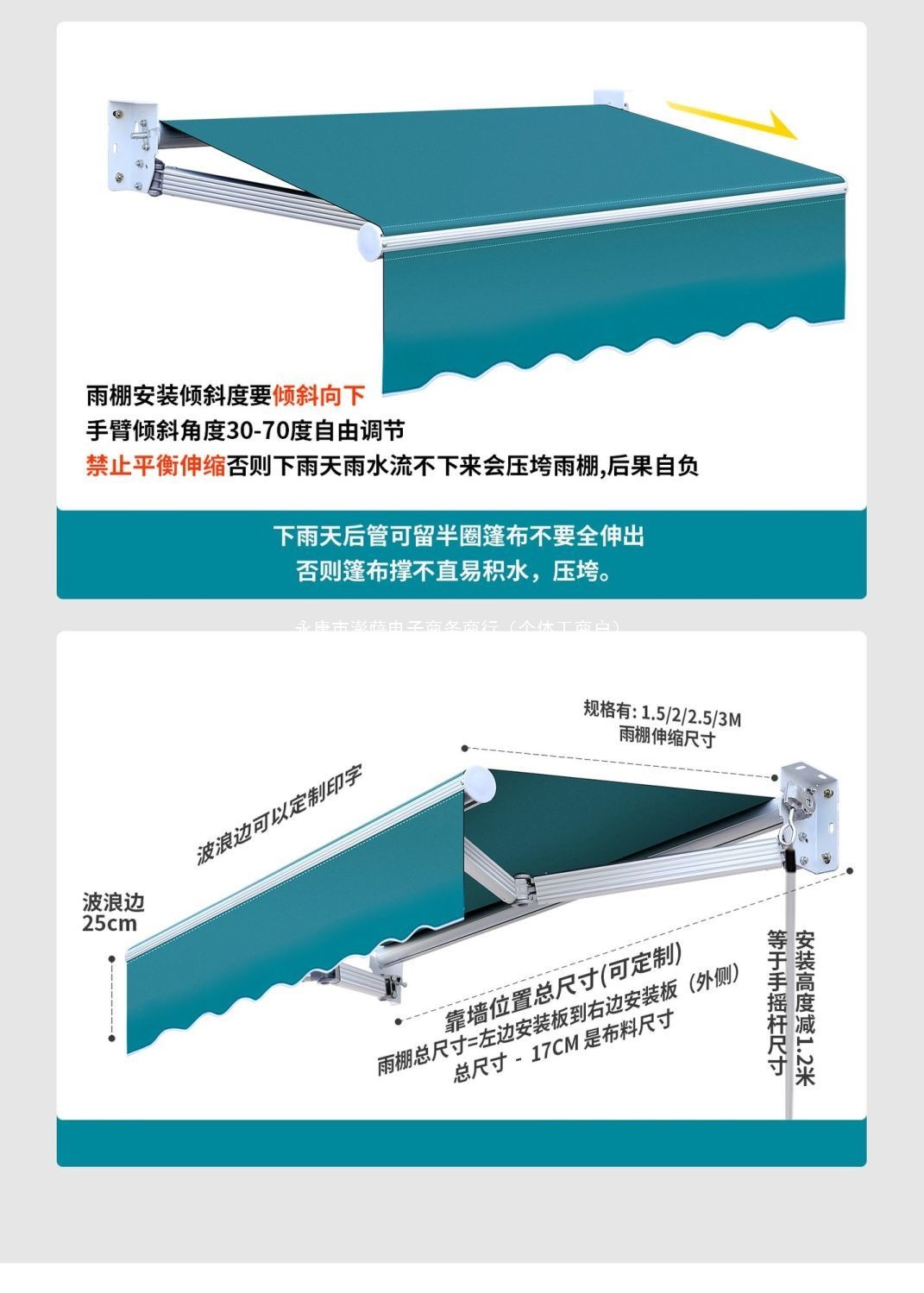 • 캐노피와 설치판의 치수는 벽에 기준으로 합니다. 4m 텔레스코픽: 3m