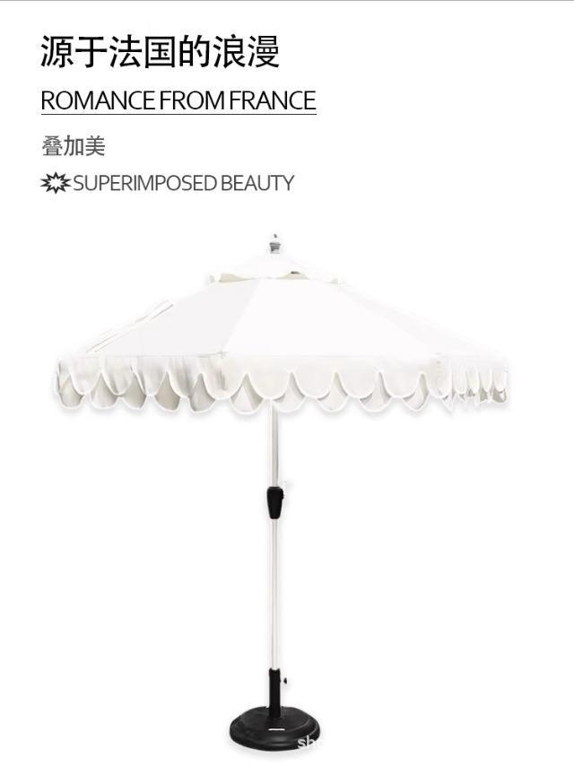 야외 해변 중간 기둥 우산 흰색 안뜰 정원 파라솔 야외 야외 카페 웨이브 엣지 태양 우산