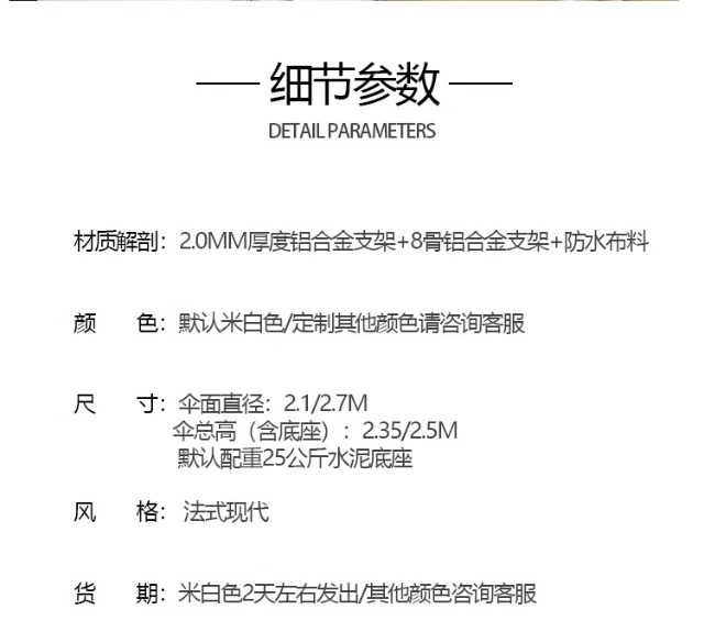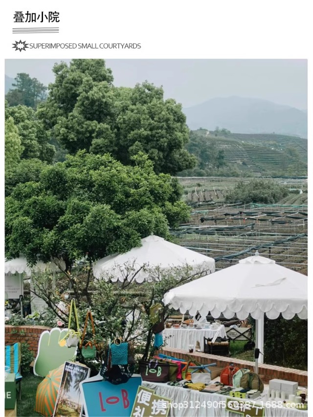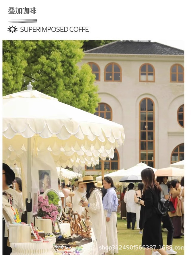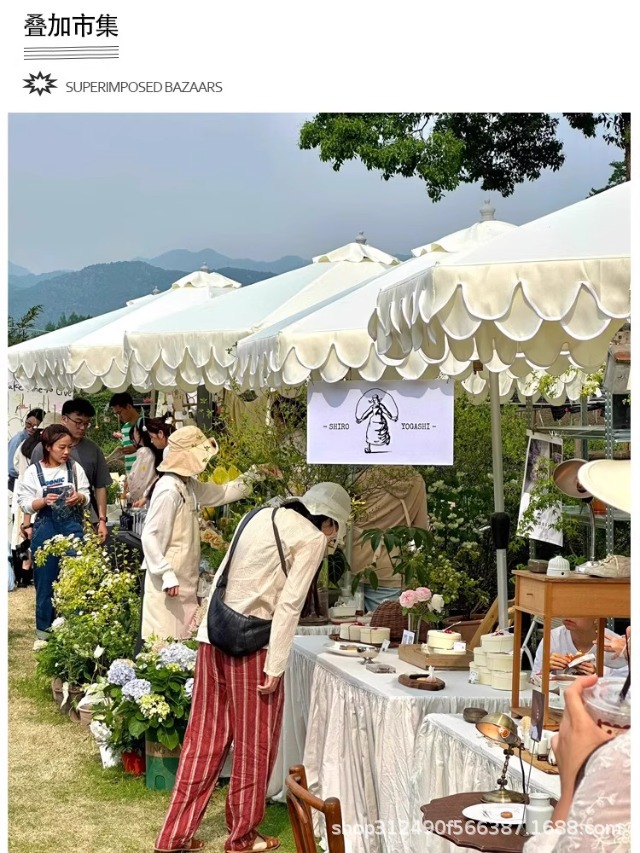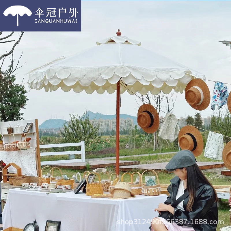 야외 해변 중간 기둥 우산 흰색 안뜰 정원 파라솔 야외 야외 카페 웨이브 엣지 태양 우산스토어 가기