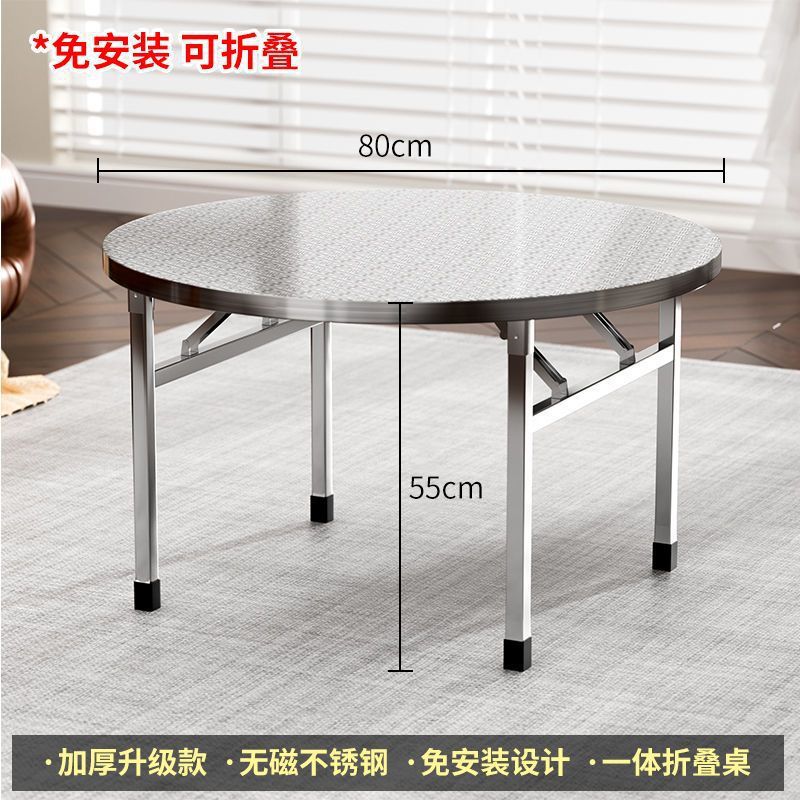 두꺼운 스테인레스 스틸 접이식 대형 원형 테이블 야외 연회 홈 식탁 내장 턴테이블 10인 식사 간단한 원형 테이블스토어 가기