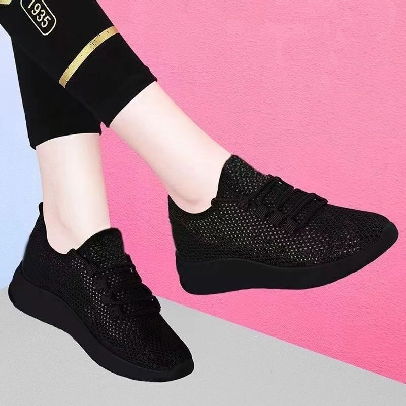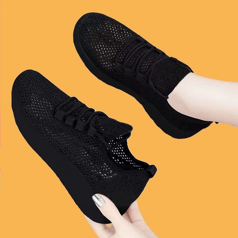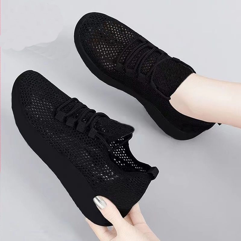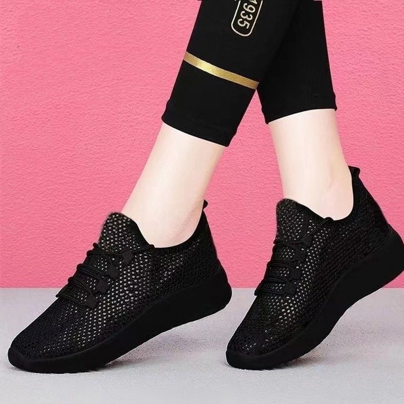 여성용 검은색 통기성 메쉬 신발, 미끄럼 방지 부드러운 밑창, 편안한 어머니 신발, 올드 베이징 천 신발, 플랫 밑창 운동화, 싱글 메쉬 여성 신발스토어 가기