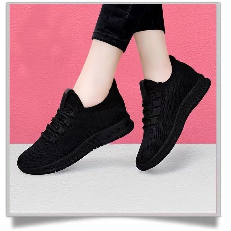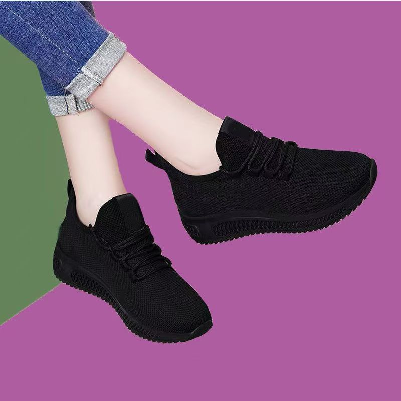 여성용 검은색 통기성 메쉬 신발, 미끄럼 방지 부드러운 밑창, 편안한 어머니 신발, 올드 베이징 천 신발, 플랫 밑창 운동화, 싱글 메쉬 여성 신발