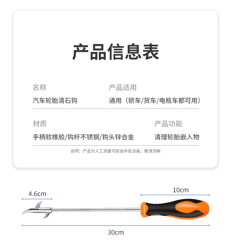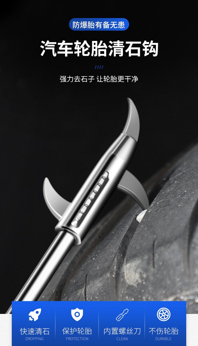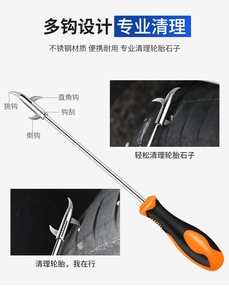 자동차 타이어 돌 청소 후크, 타이어 돌 제거, 방폭 청소 도구, 자동차 다기능 돌 선택 청소 후크스토어 가기