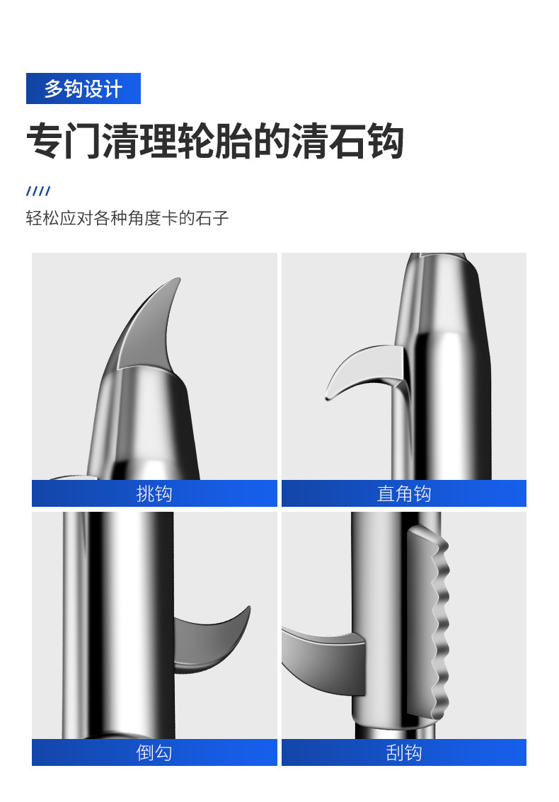 자동차 타이어 돌 청소 후크, 타이어 돌 제거, 방폭 청소 도구, 자동차 다기능 돌 선택 청소 후크