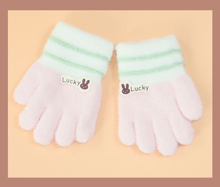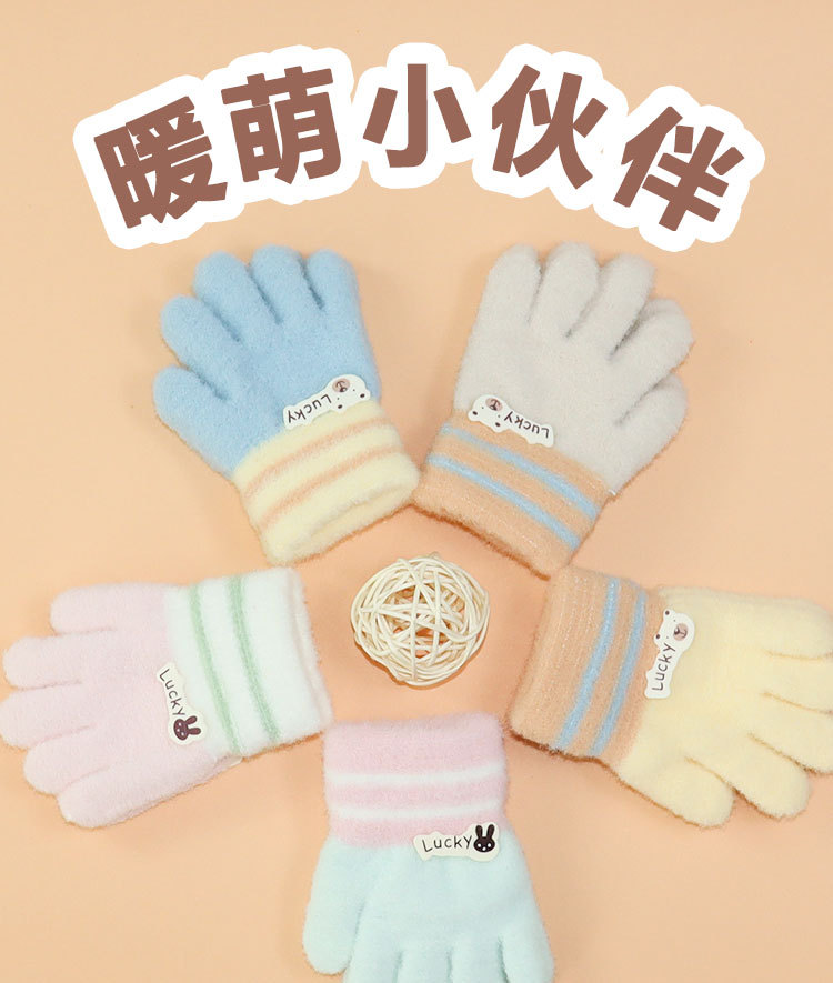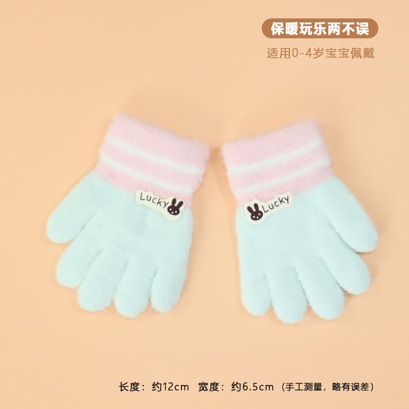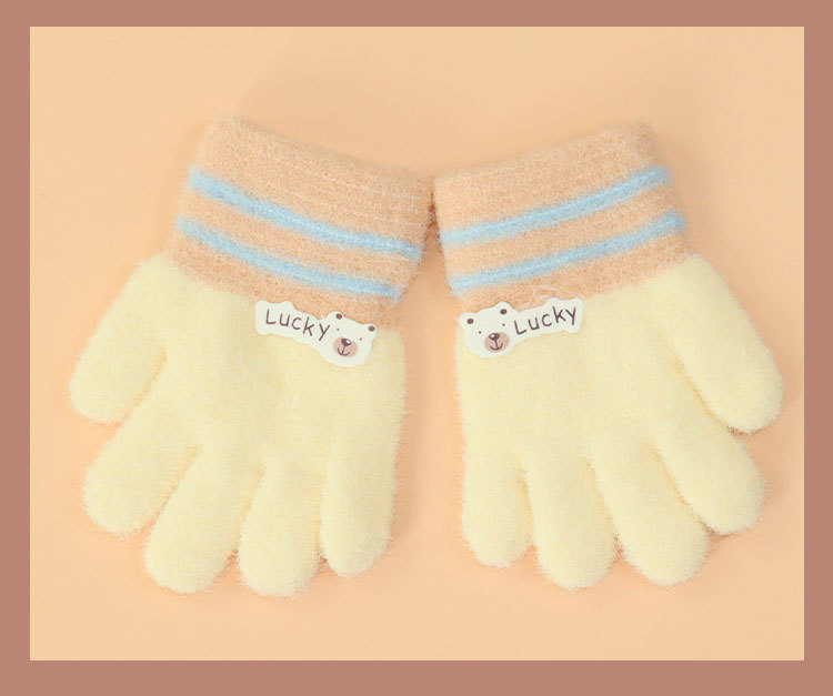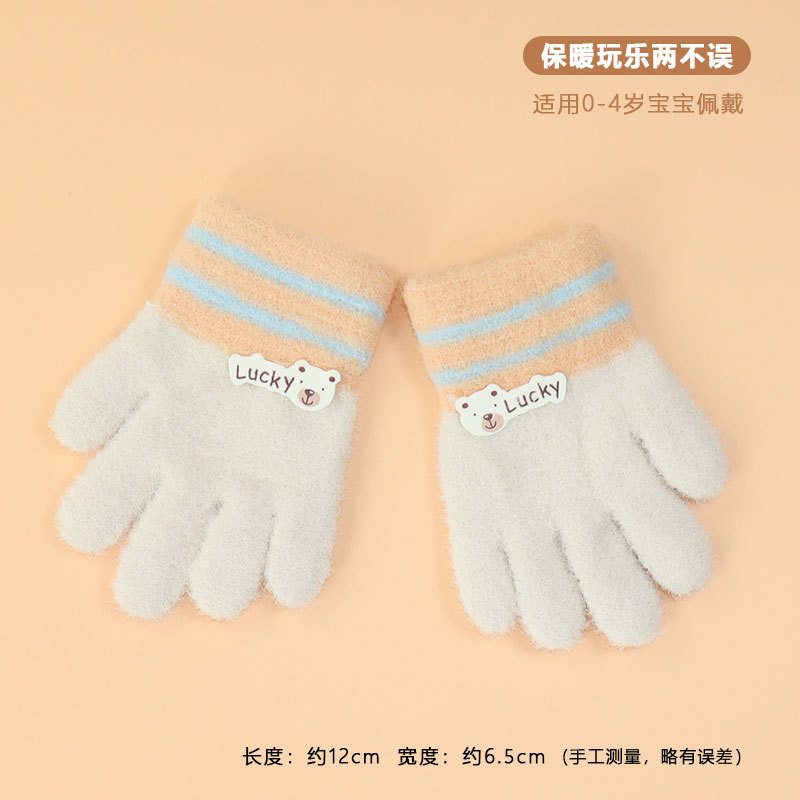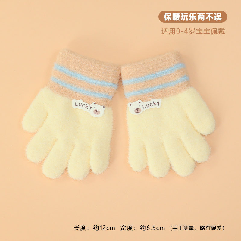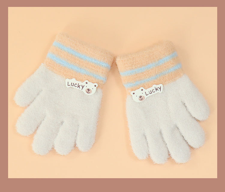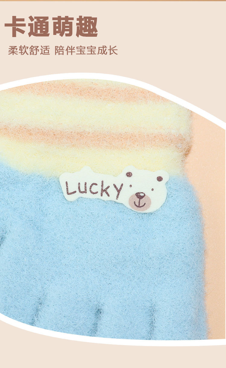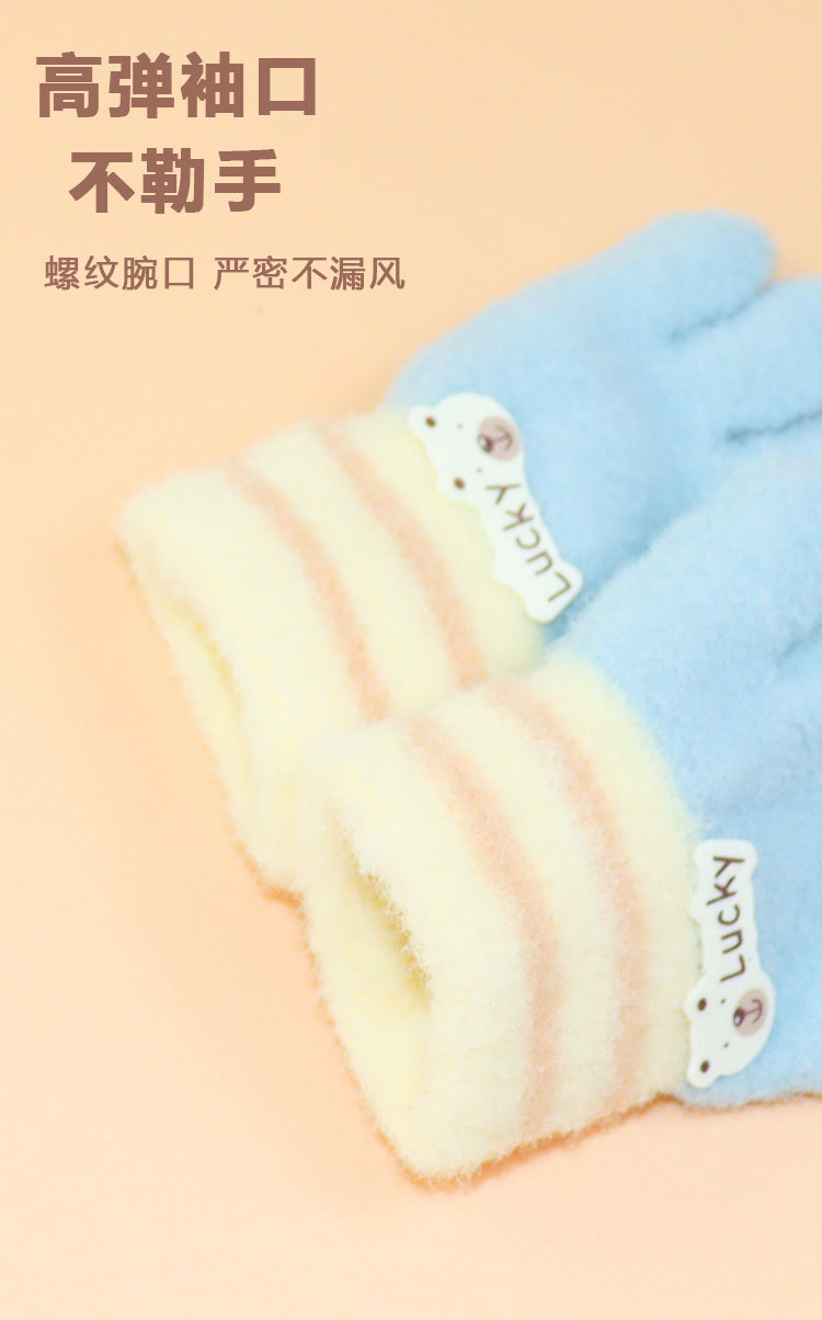 어린이 행운의 곰 아기 유아 겨울 니트 가을 겨울 다섯 손가락 장갑 1-4세 아기용 보온 두꺼운 보호 장갑