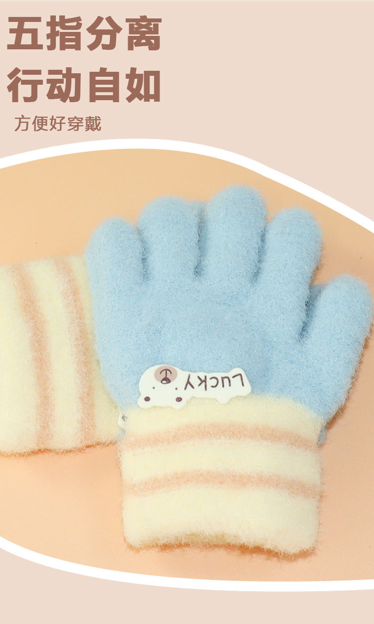 어린이 행운의 곰 아기 유아 겨울 니트 가을 겨울 다섯 손가락 장갑 1-4세 아기용 보온 두꺼운 보호 장갑스토어 가기