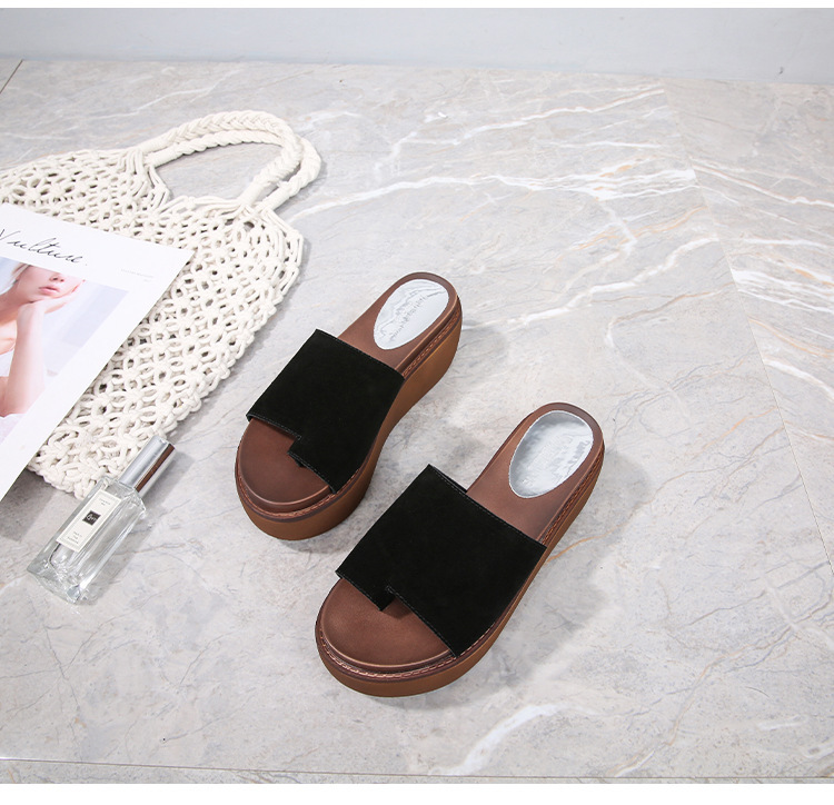 여성용 여름 아우터용 천연가죽 두꺼운 밑창 슬리퍼 2025년 신형 플랫폼 부드러운 밑창으로 슬림하고 미끄럼 방지 각도 슬리퍼스토어 가기