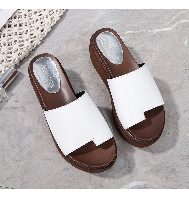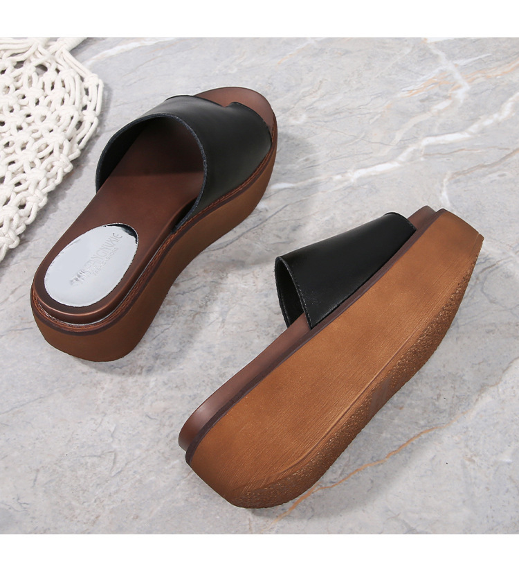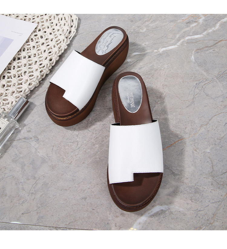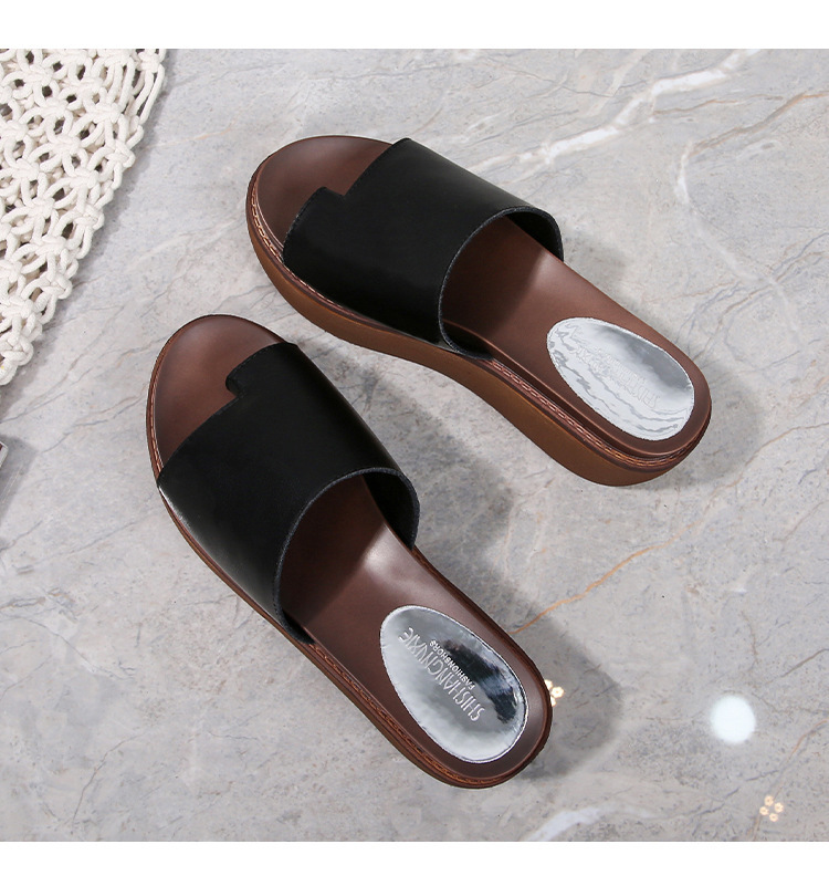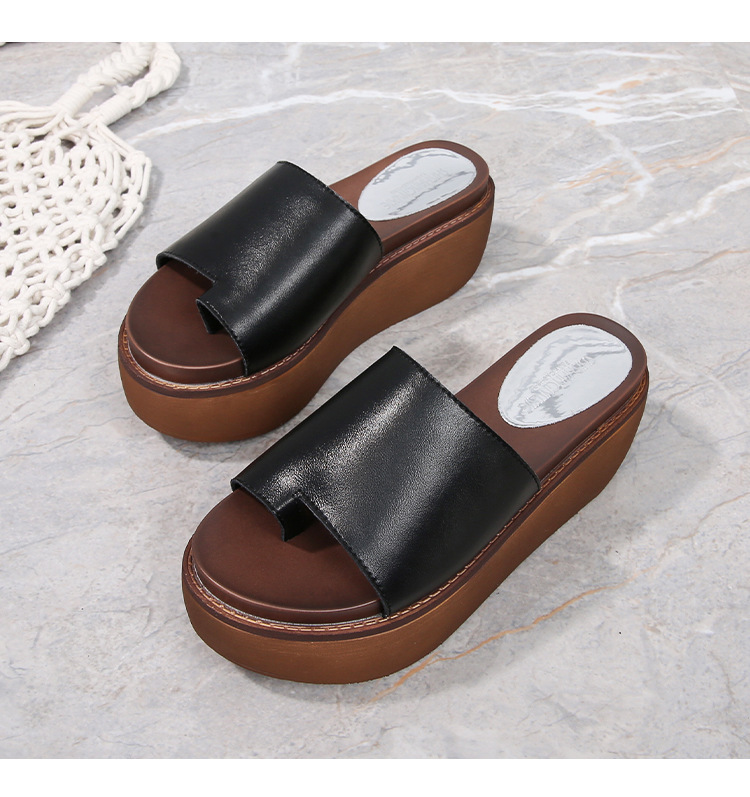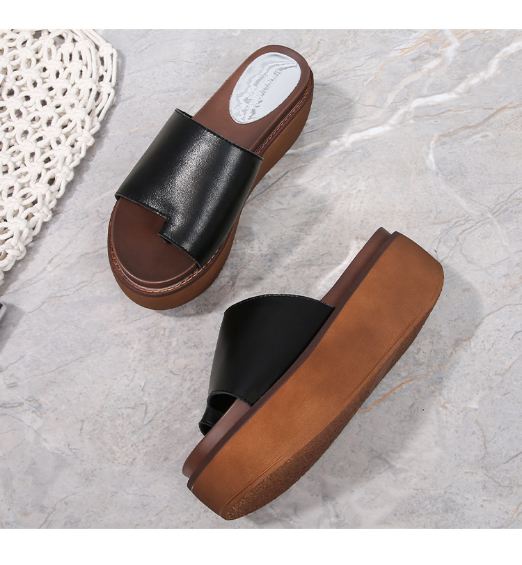 여성용 여름 아우터용 천연가죽 두꺼운 밑창 슬리퍼 2025년 신형 플랫폼 부드러운 밑창으로 슬림하고 미끄럼 방지 각도 슬리퍼