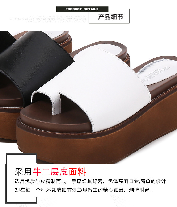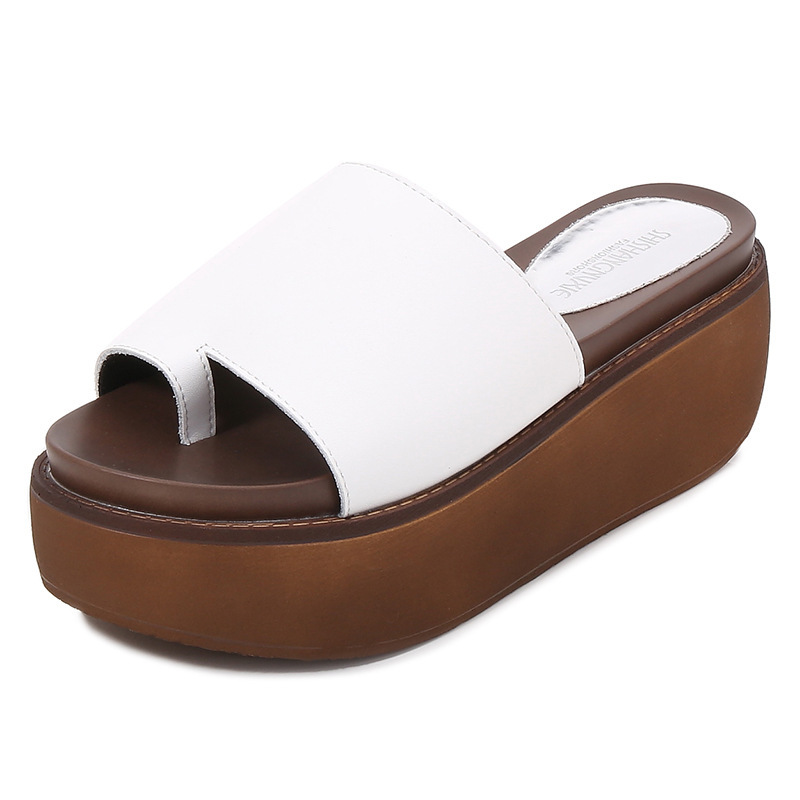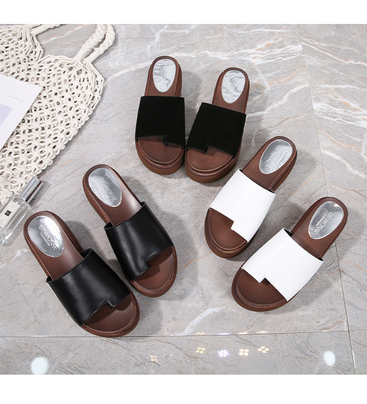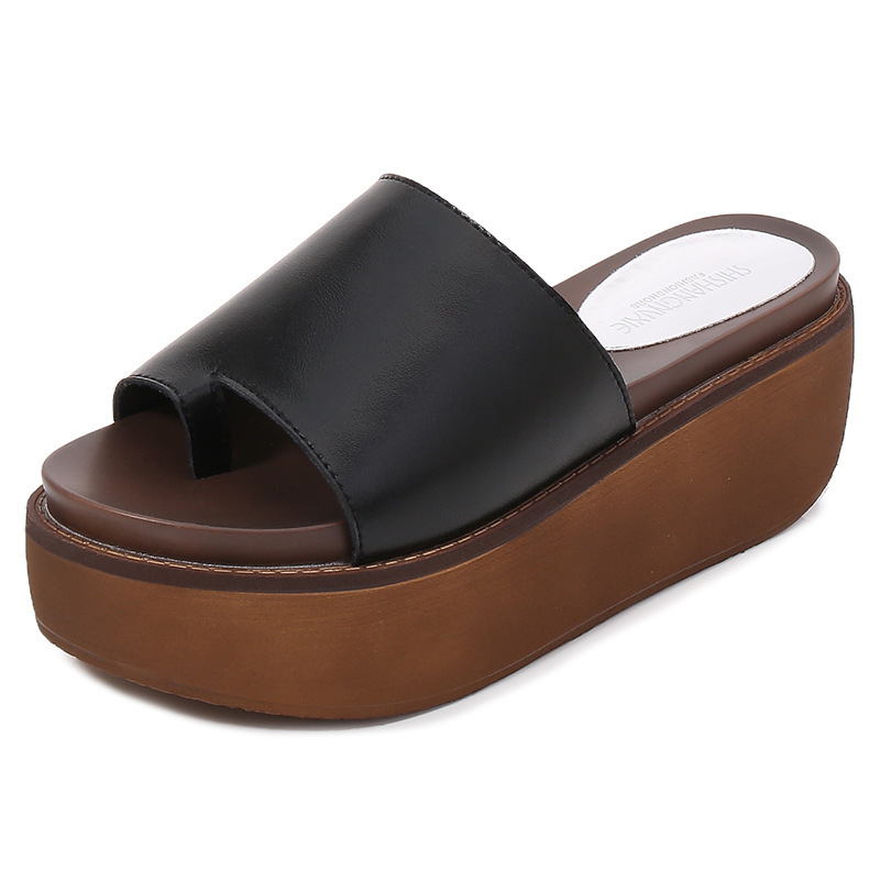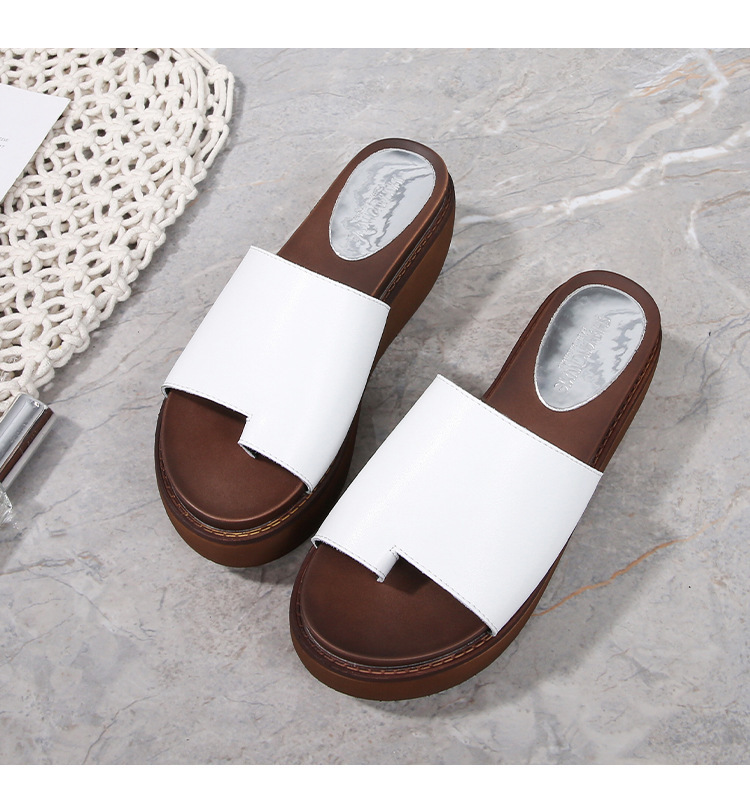 여성용 여름 아우터용 천연가죽 두꺼운 밑창 슬리퍼 2025년 신형 플랫폼 부드러운 밑창으로 슬림하고 미끄럼 방지 각도 슬리퍼