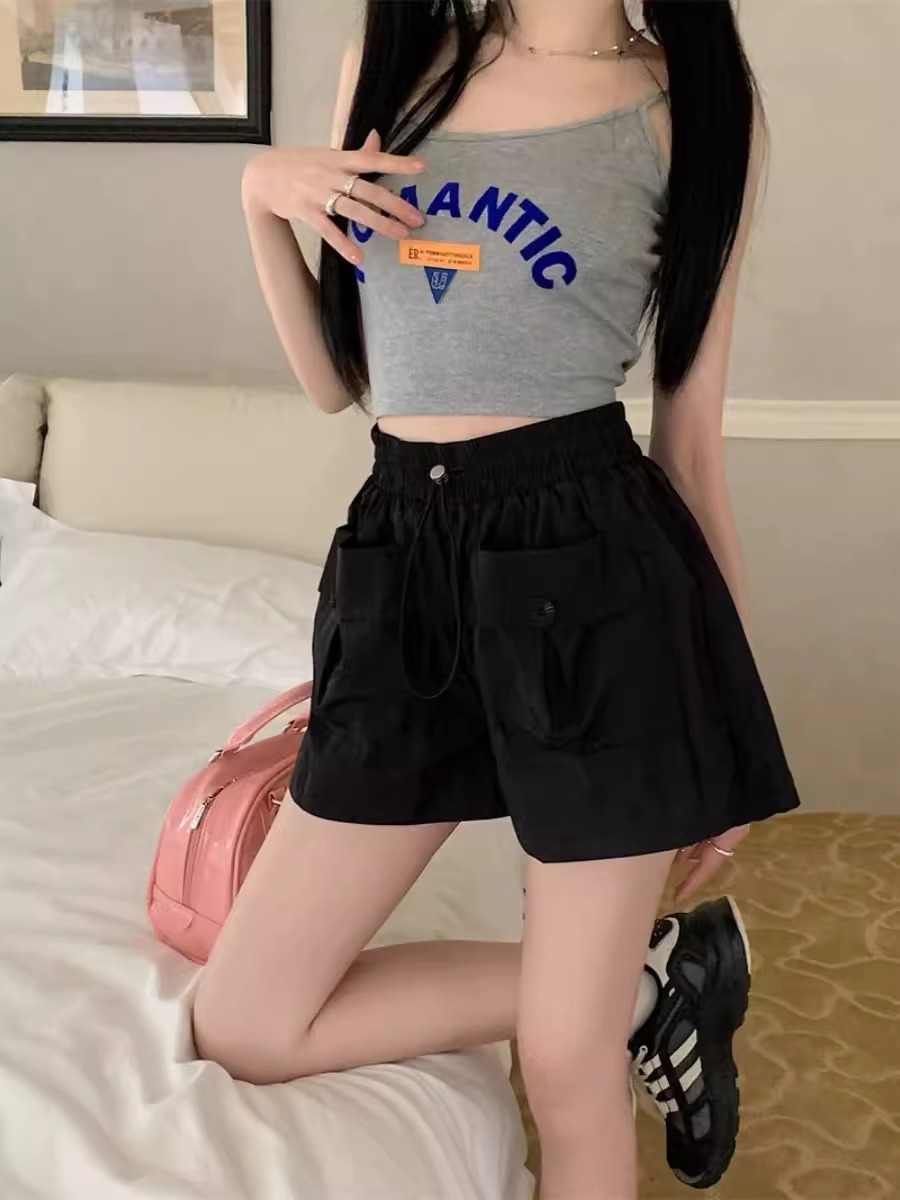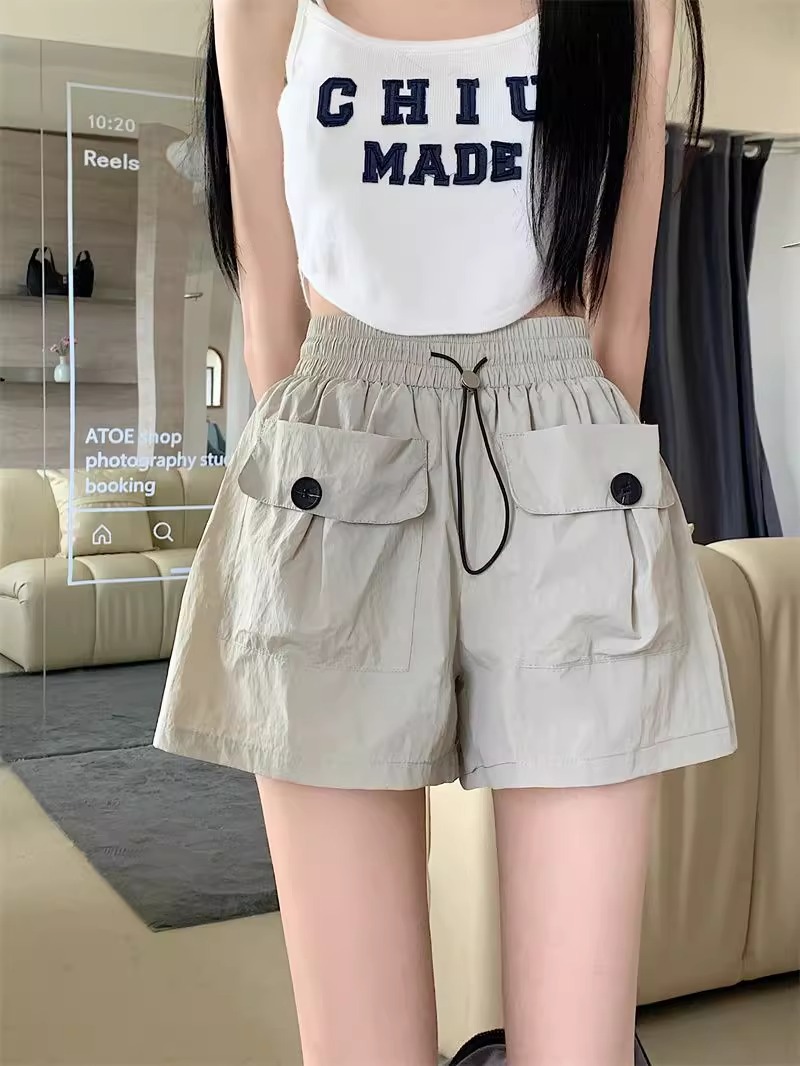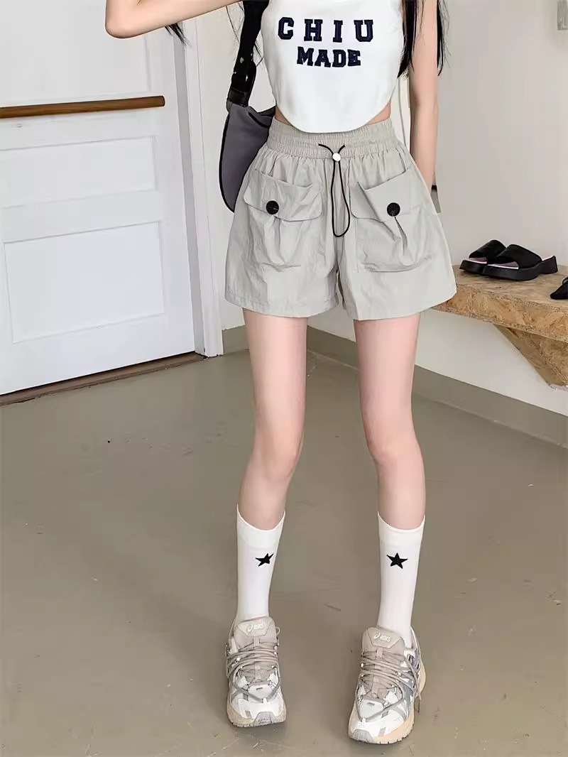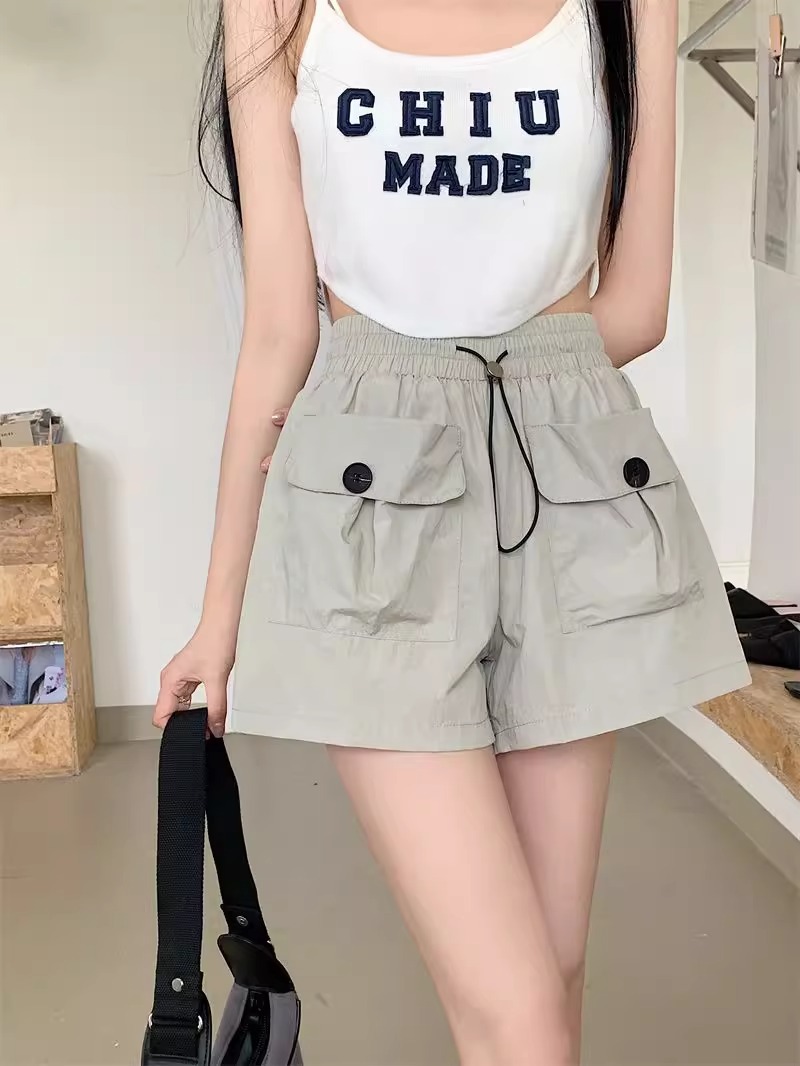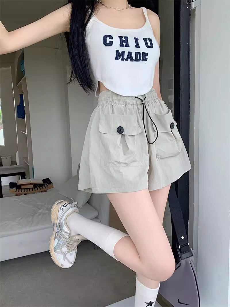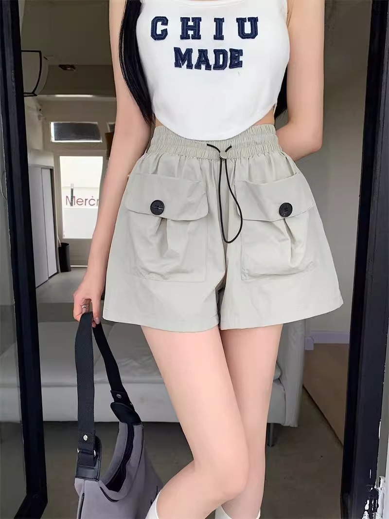 아동복 포켓 하이웨이스트 스트레이트 작업복 캐주얼 바지 2025년 여름 신작 중대형 아동용 루즈한 일본식 와이드 레그 반바지