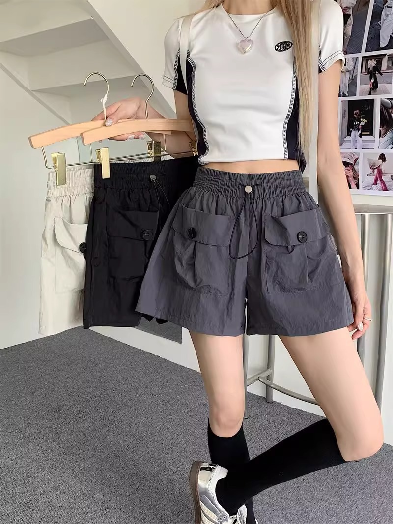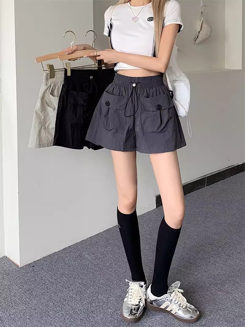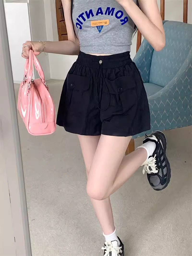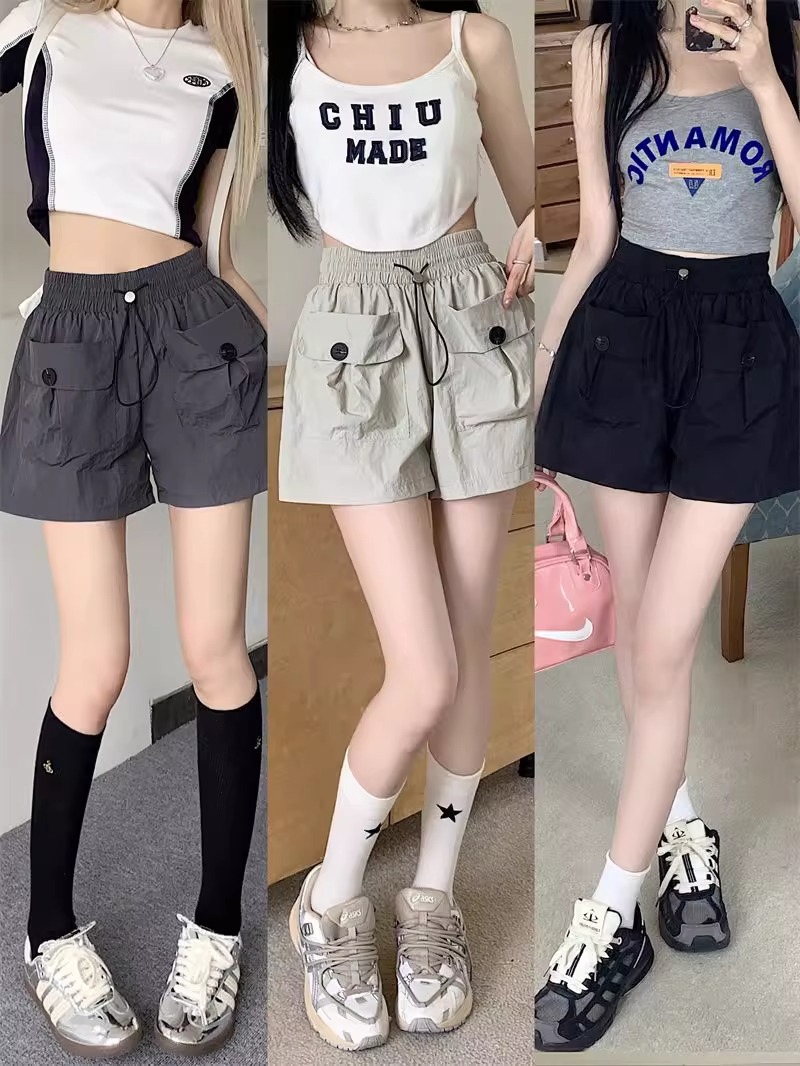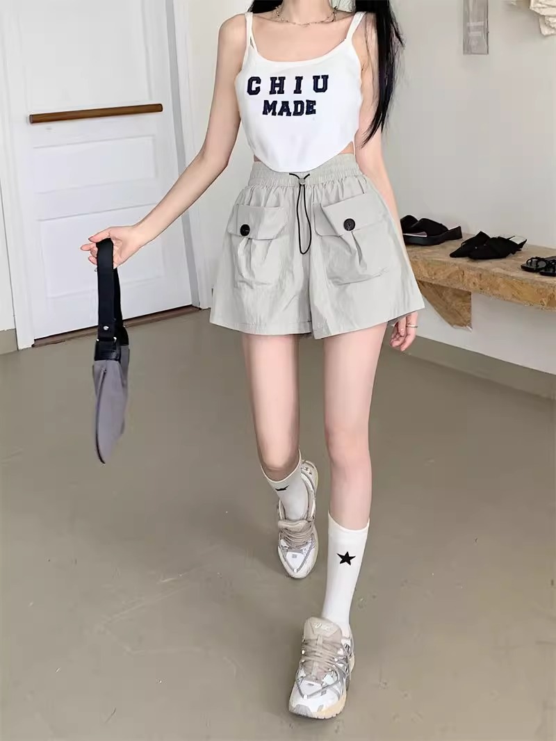 아동복 포켓 하이웨이스트 스트레이트 작업복 캐주얼 바지 2025년 여름 신작 중대형 아동용 루즈한 일본식 와이드 레그 반바지