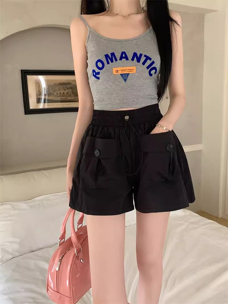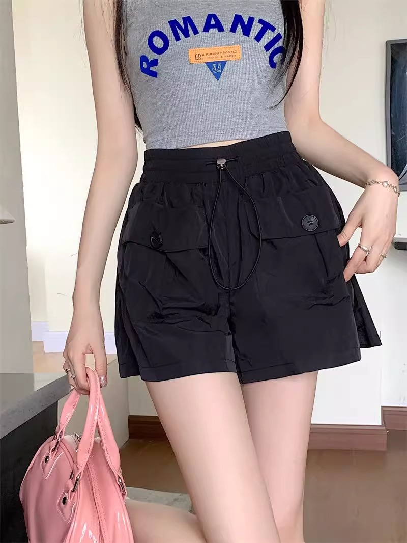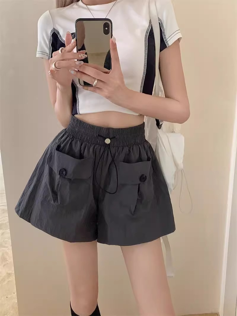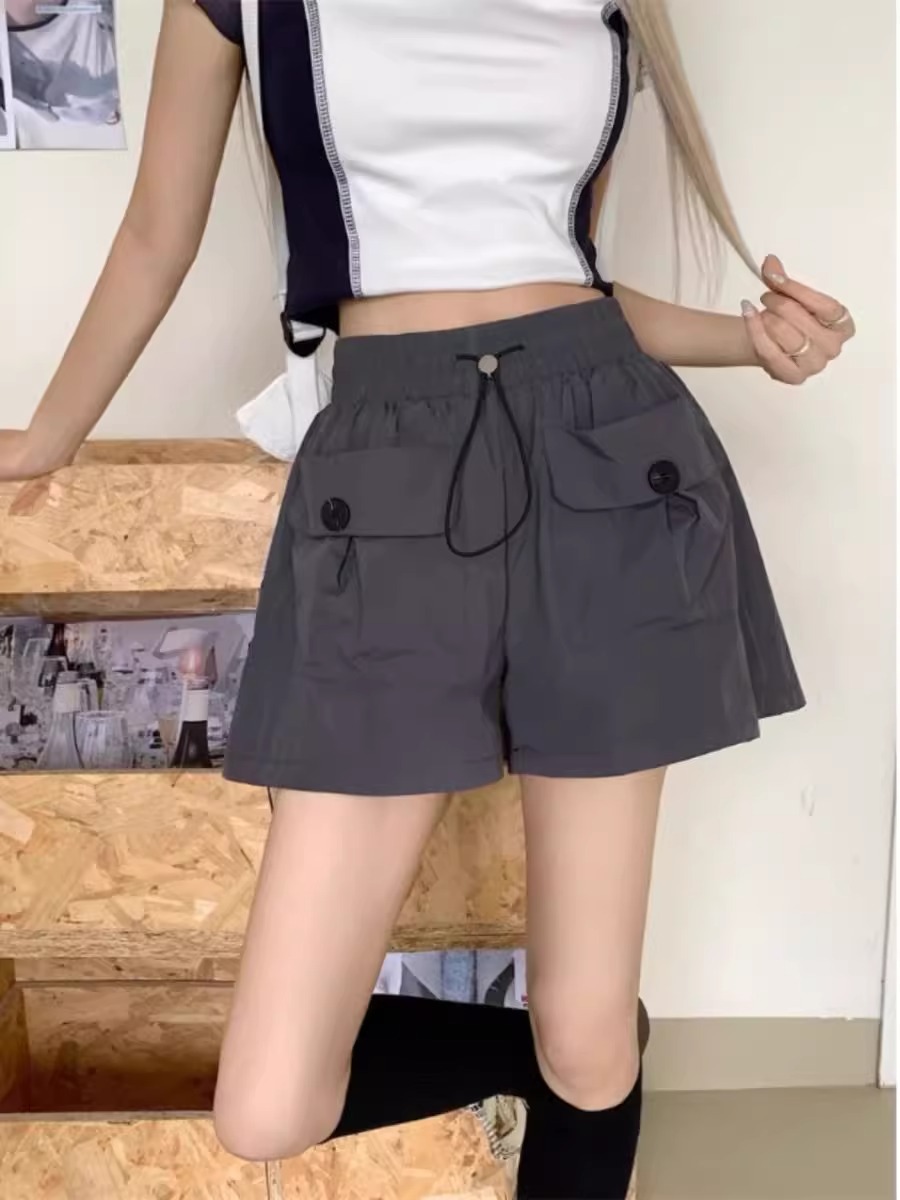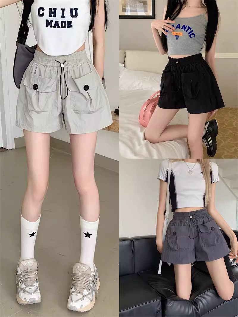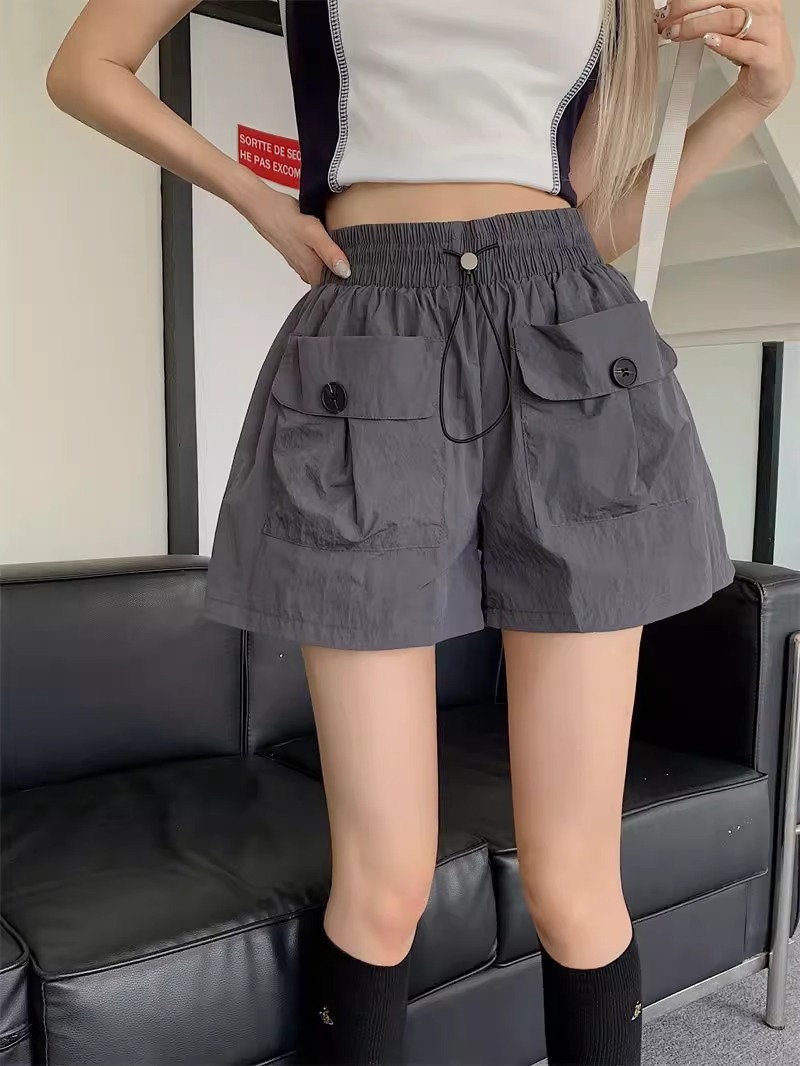 아동복 포켓 하이웨이스트 스트레이트 작업복 캐주얼 바지 2025년 여름 신작 중대형 아동용 루즈한 일본식 와이드 레그 반바지