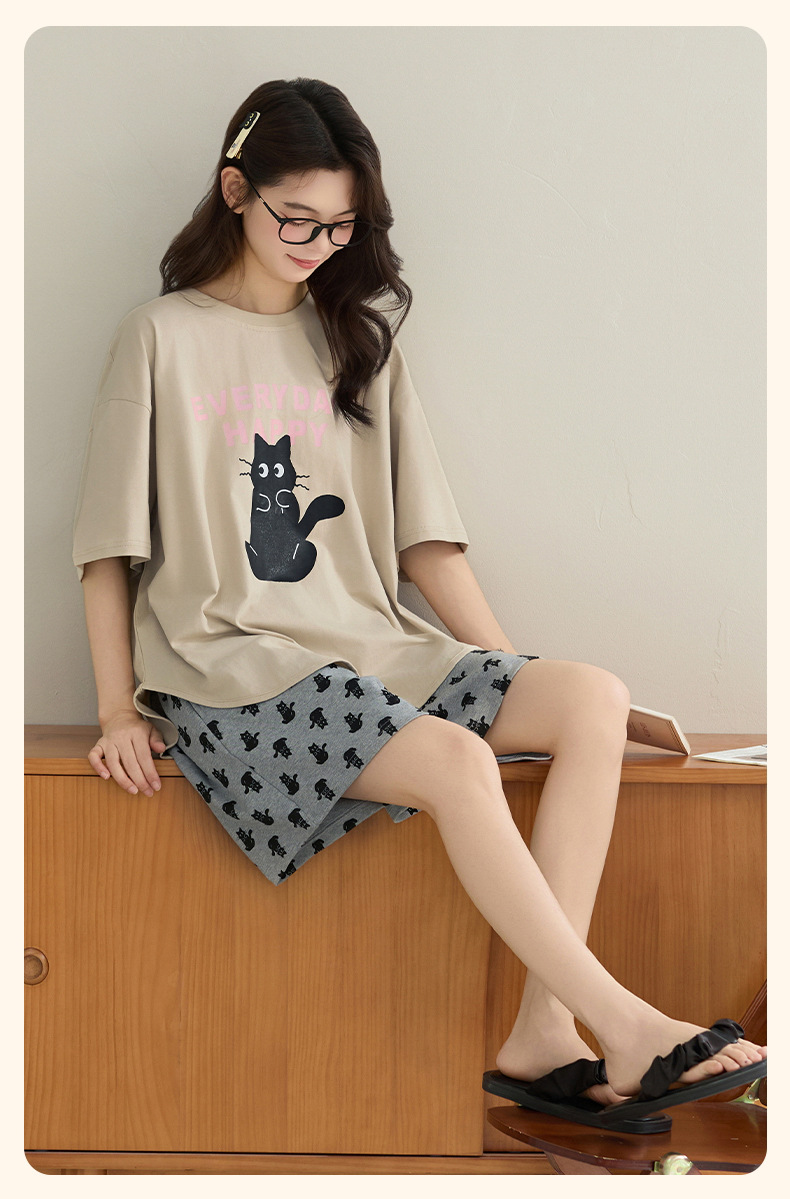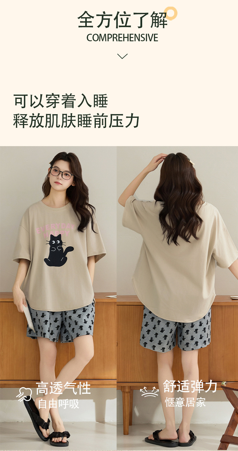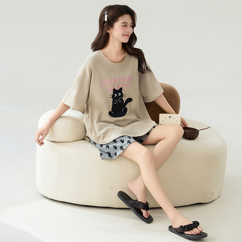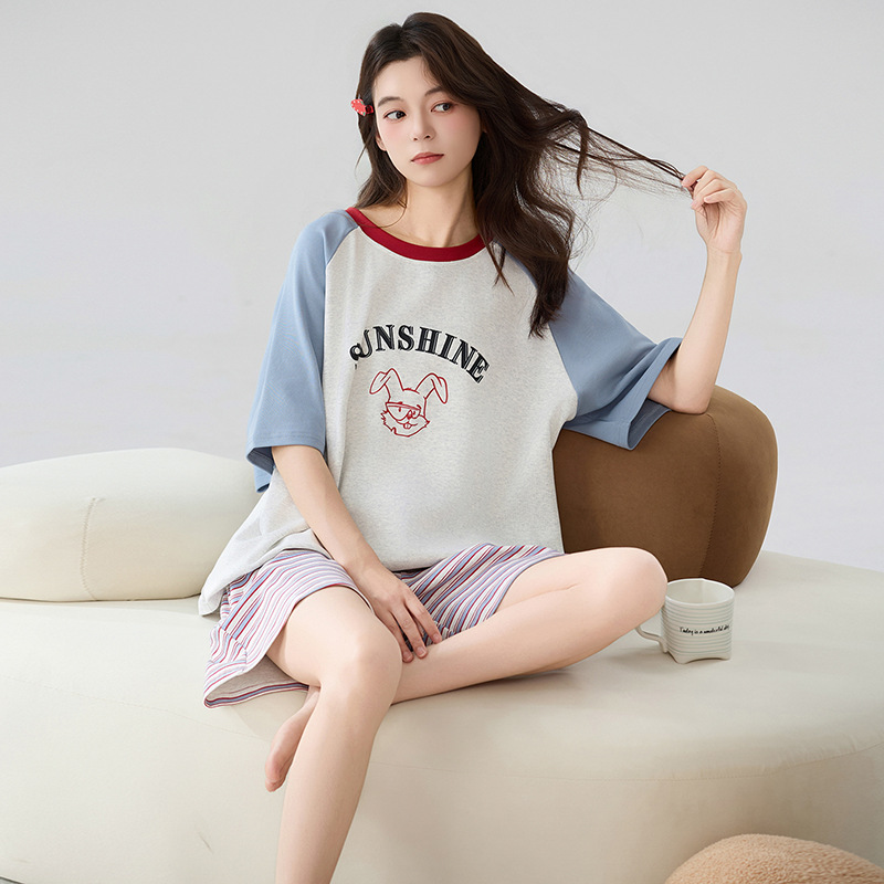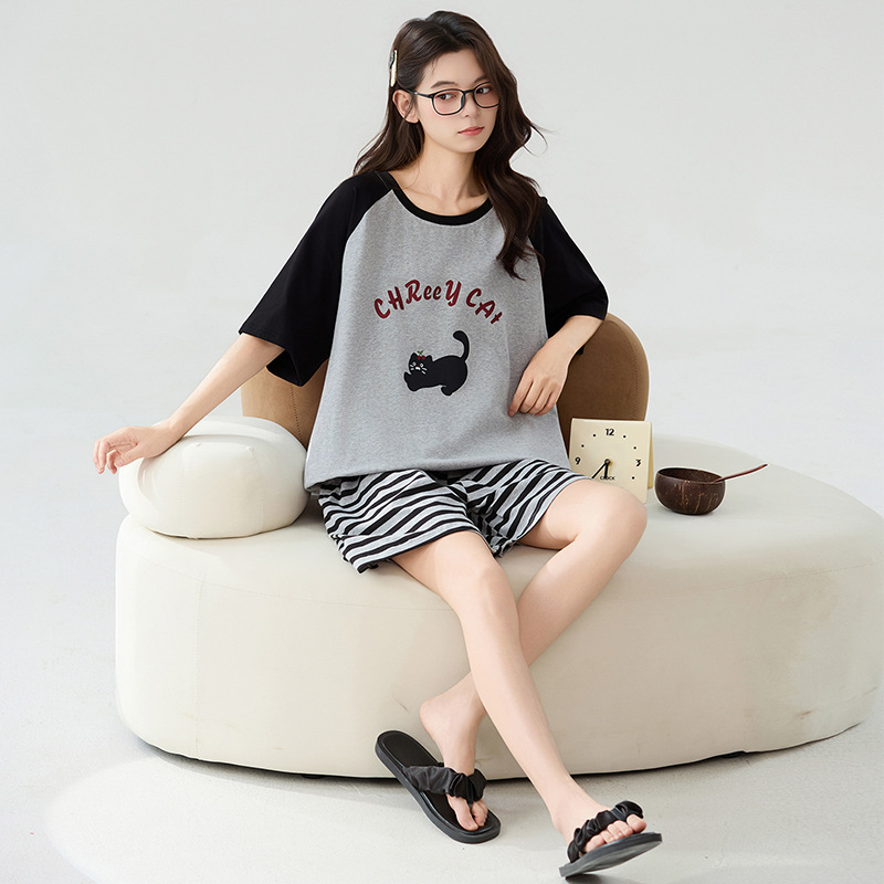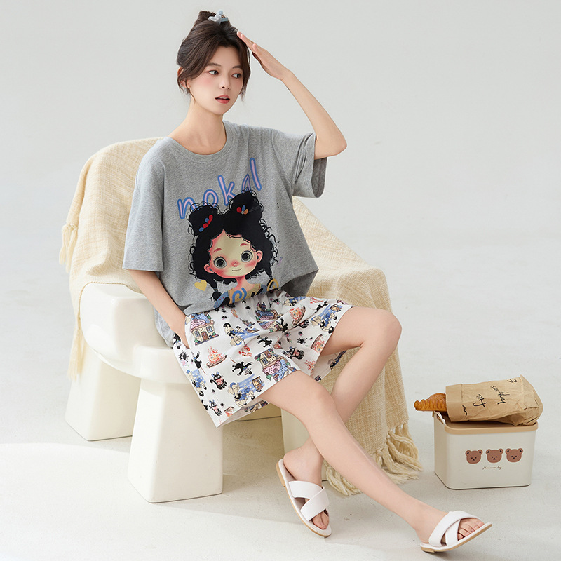 클래스 A 100% 면 여름 잠옷 여성 반팔 반바지 만화 정장 대형 캐주얼 여름 여성 홈웨어스토어 가기