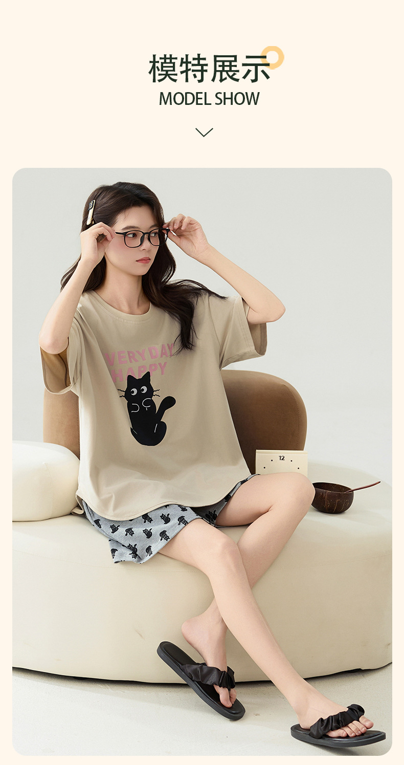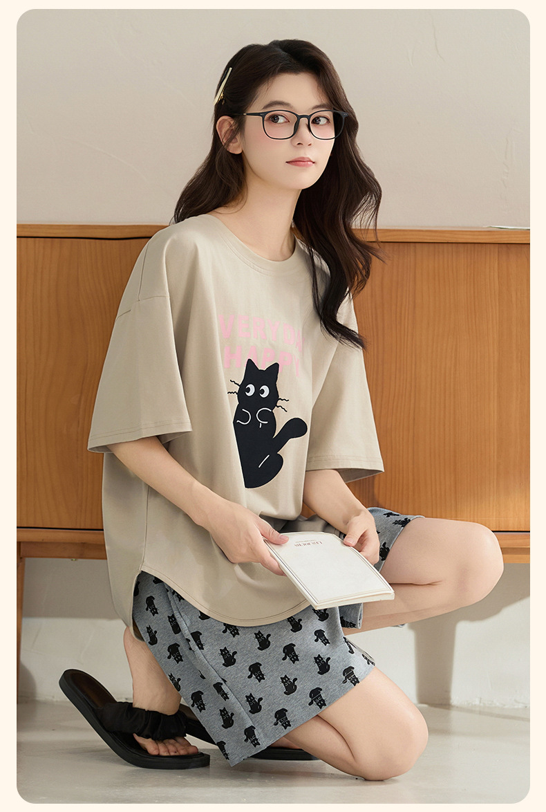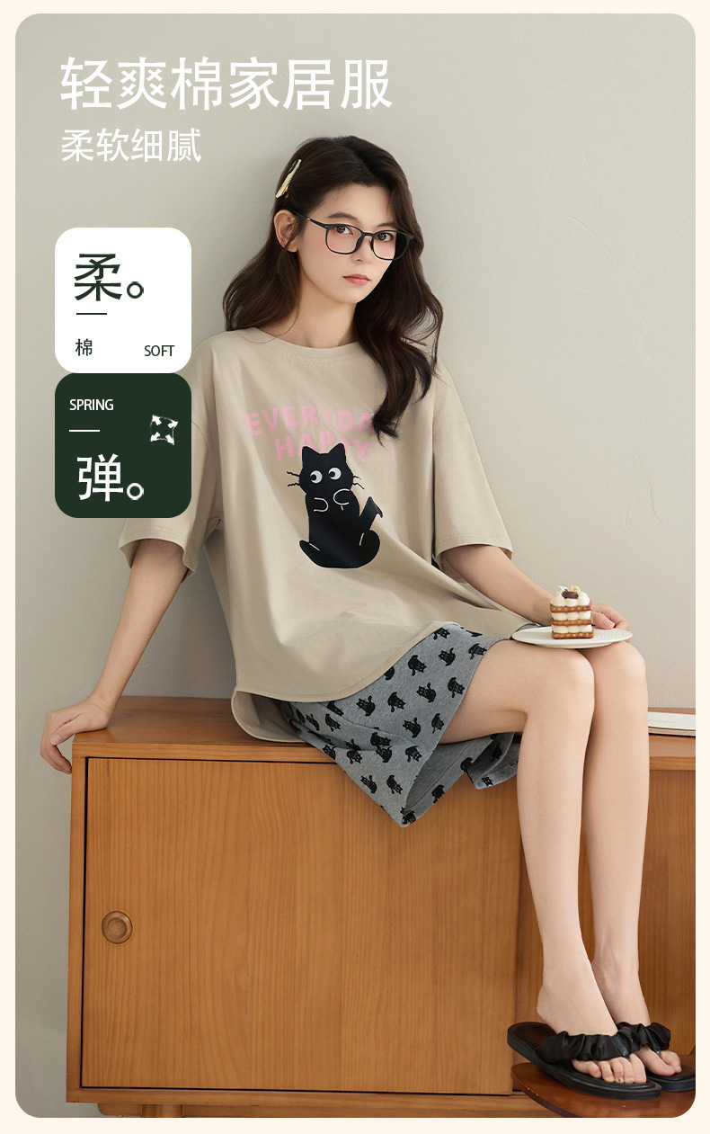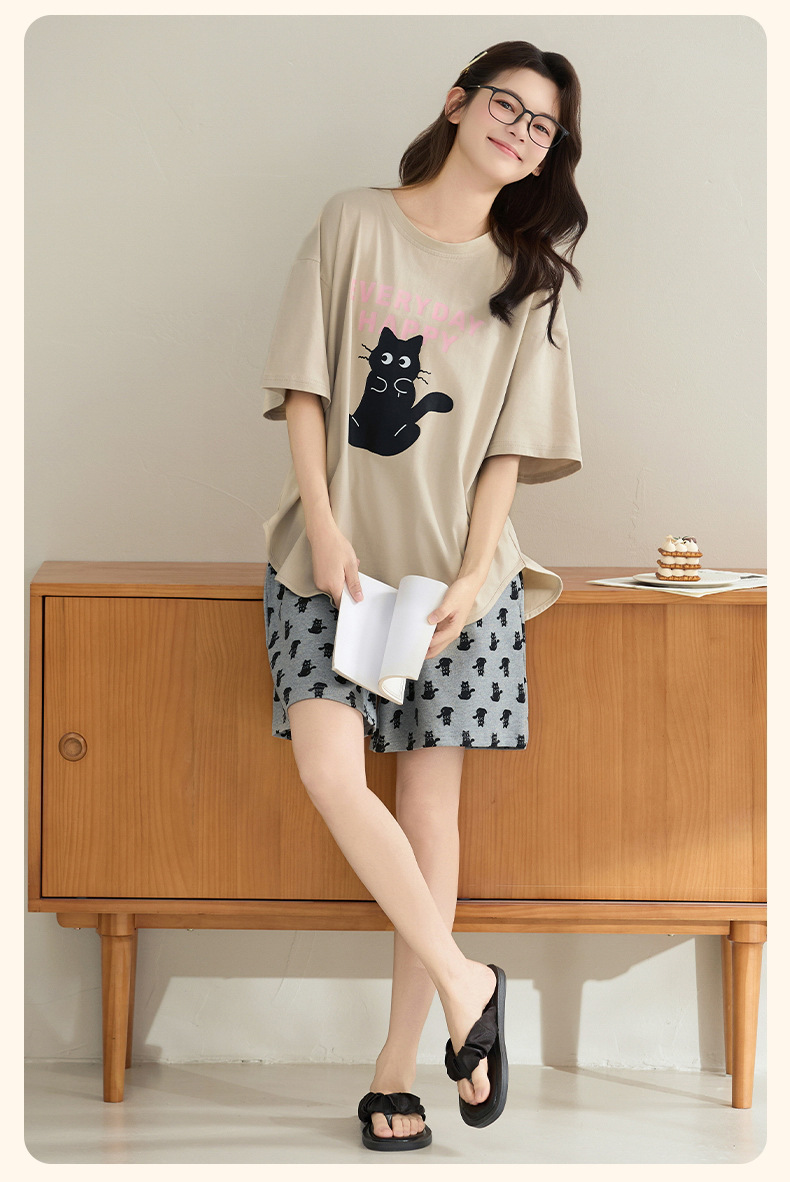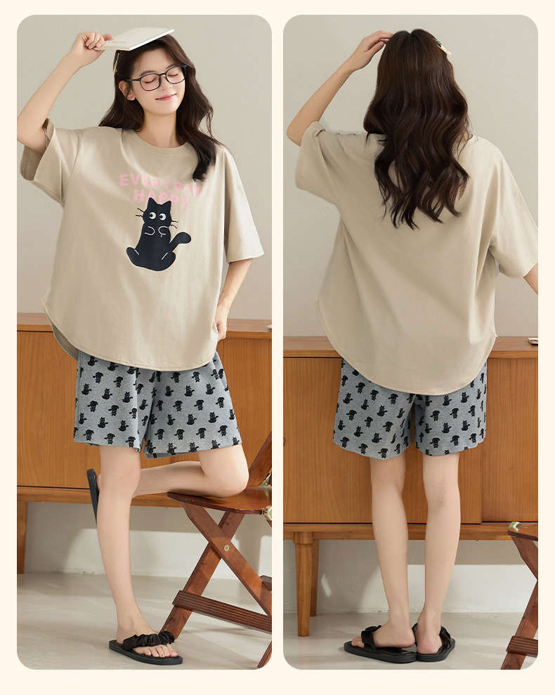 클래스 A 100% 면 여름 잠옷 여성 반팔 반바지 만화 정장 대형 캐주얼 여름 여성 홈웨어스토어 가기