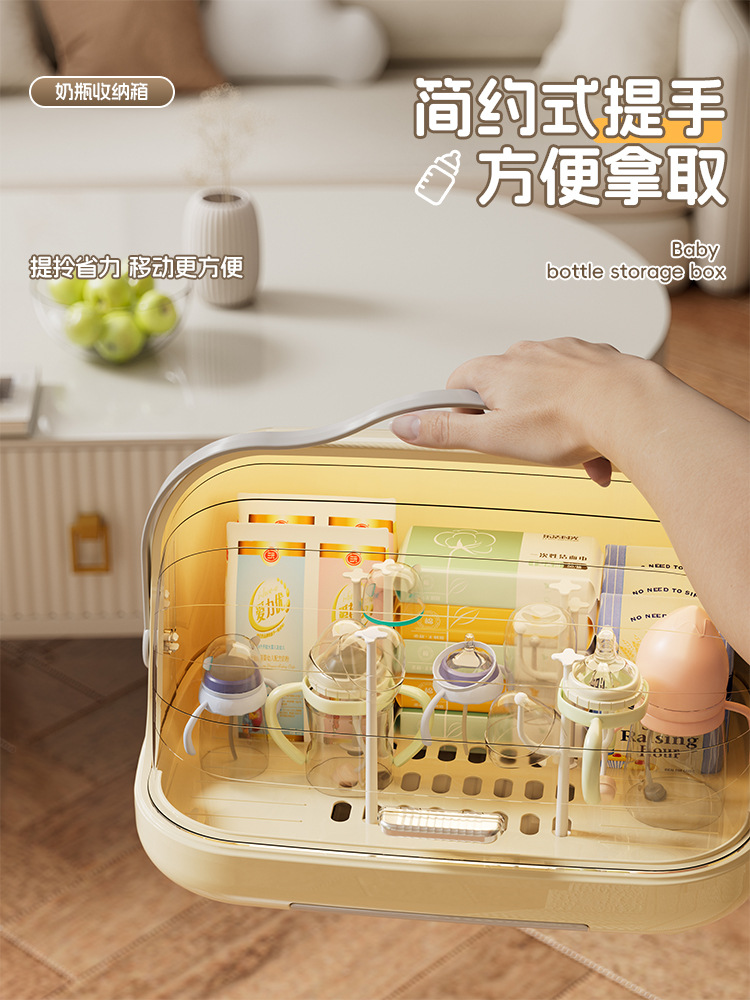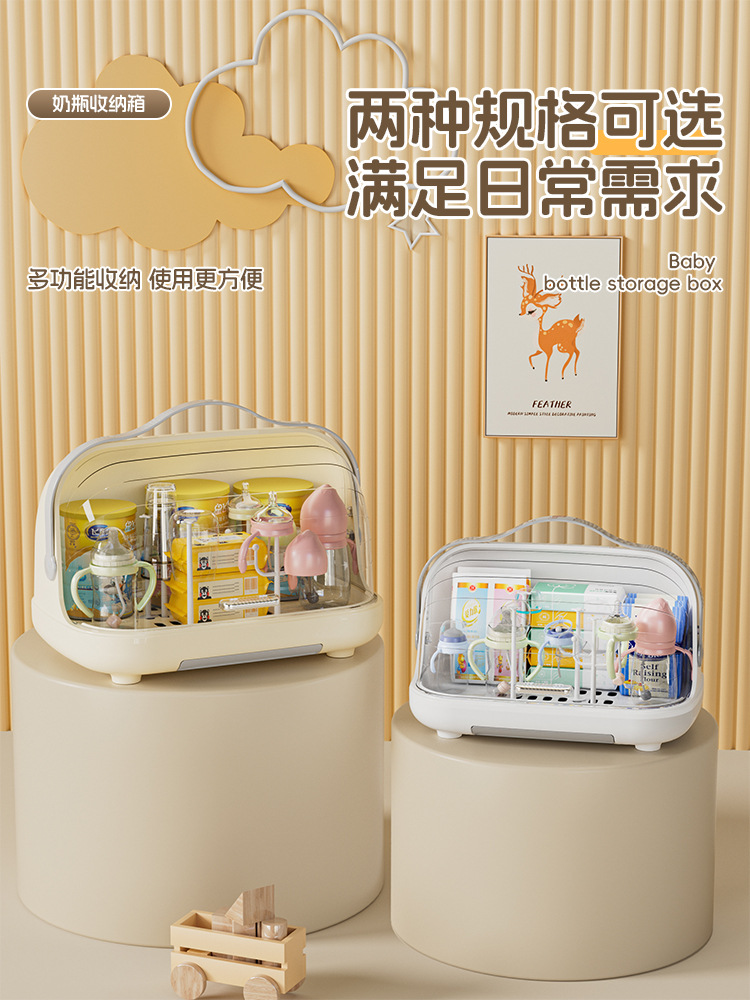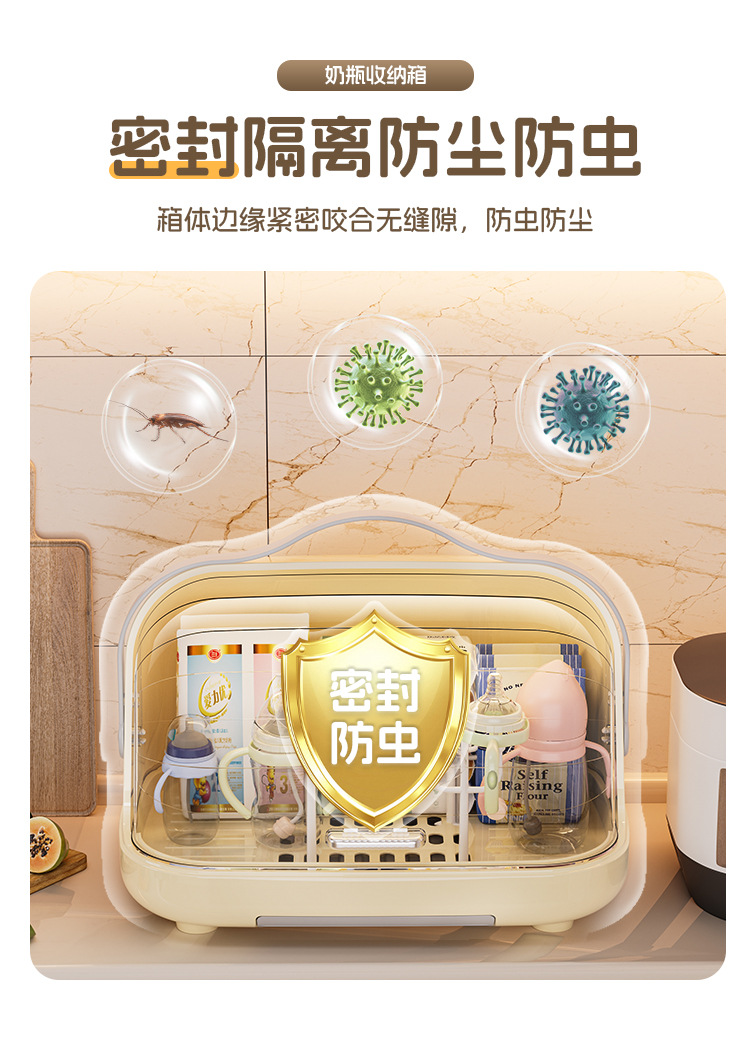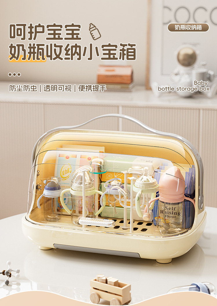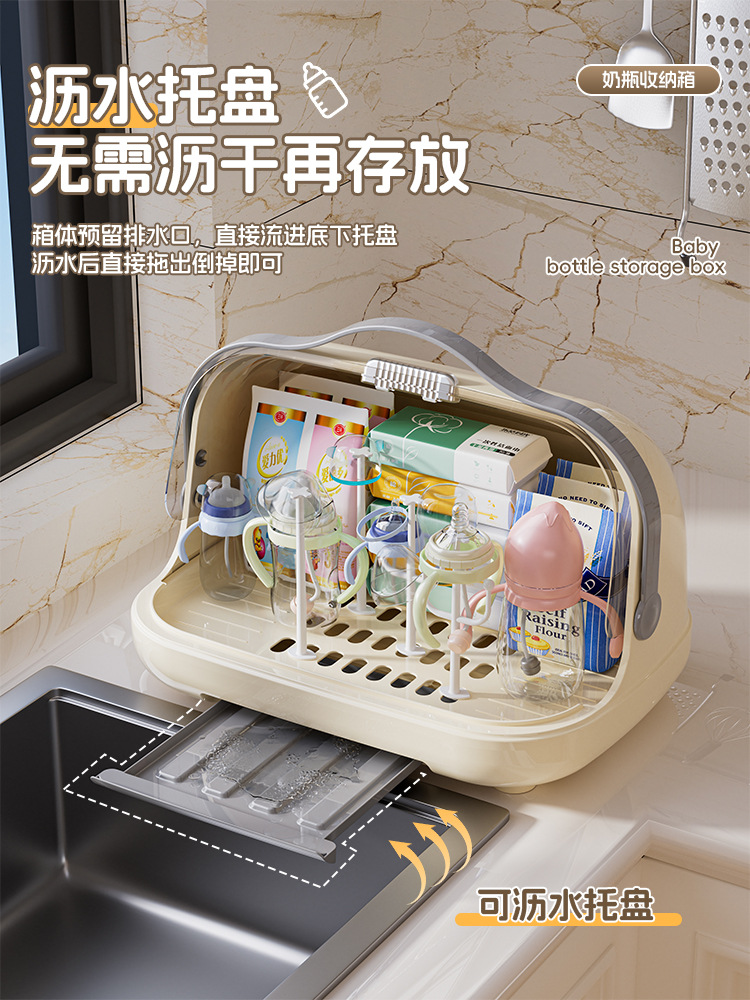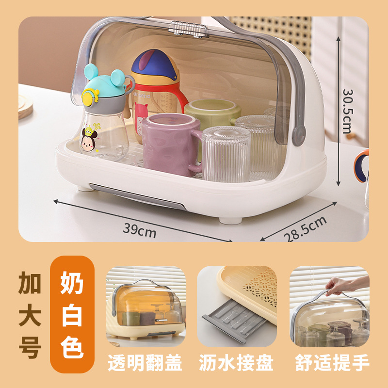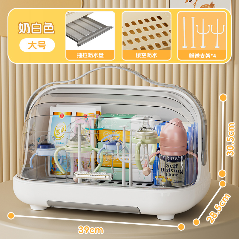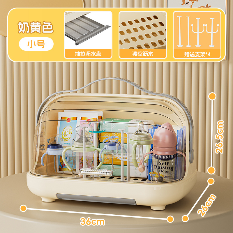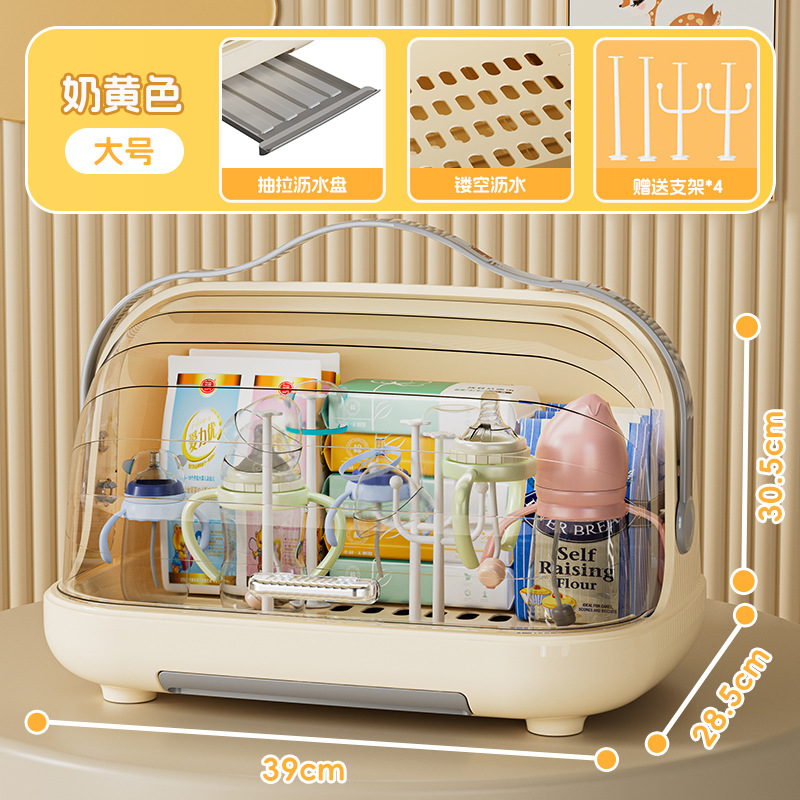 Huihai 아기 병 보관 상자 식기 보관 상자 먼지 커버 배수 랙 바구니 이유식 보조 식기 보관 랙스토어 가기