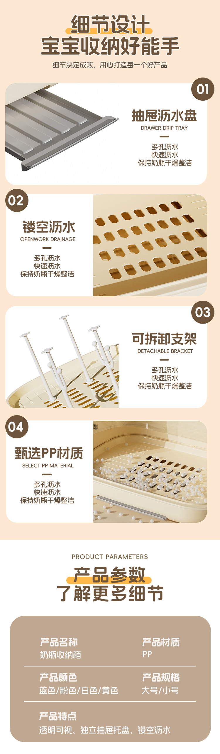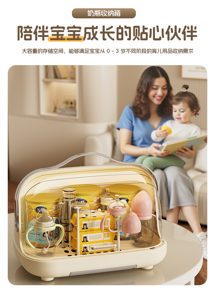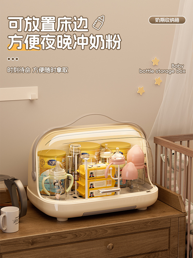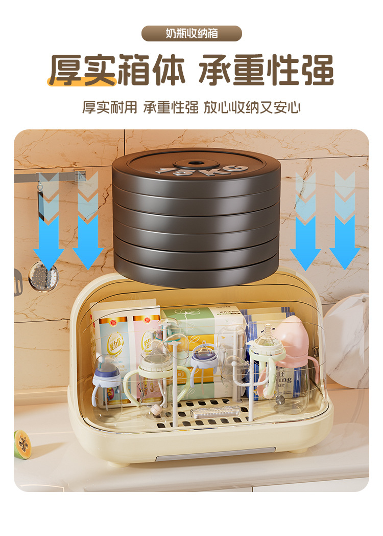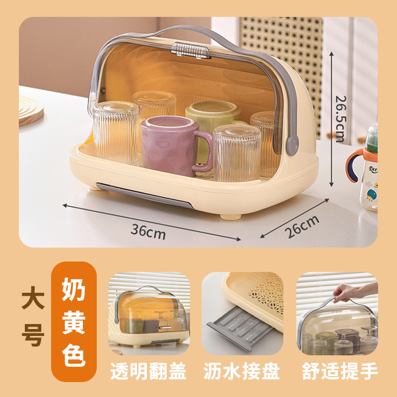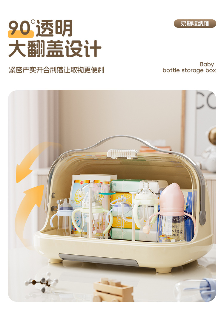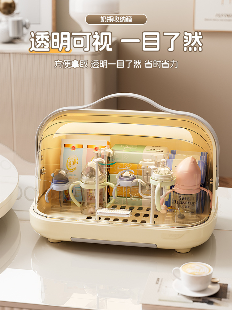 Huihai 아기 병 보관 상자 식기 보관 상자 먼지 커버 배수 랙 바구니 이유식 보조 식기 보관 랙스토어 가기