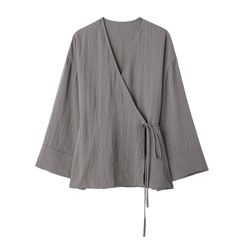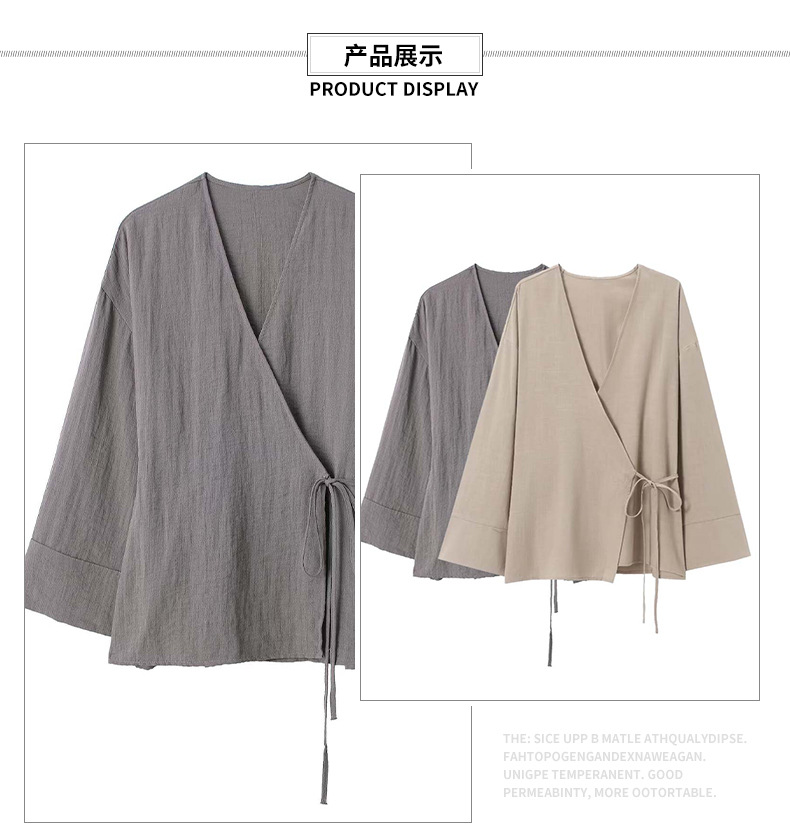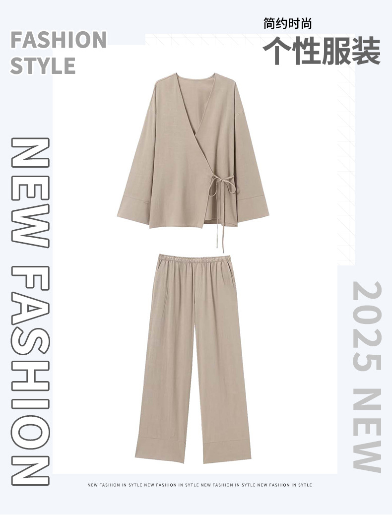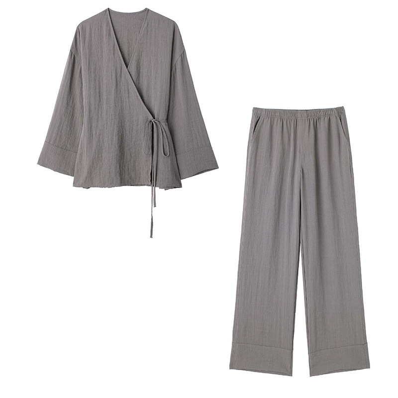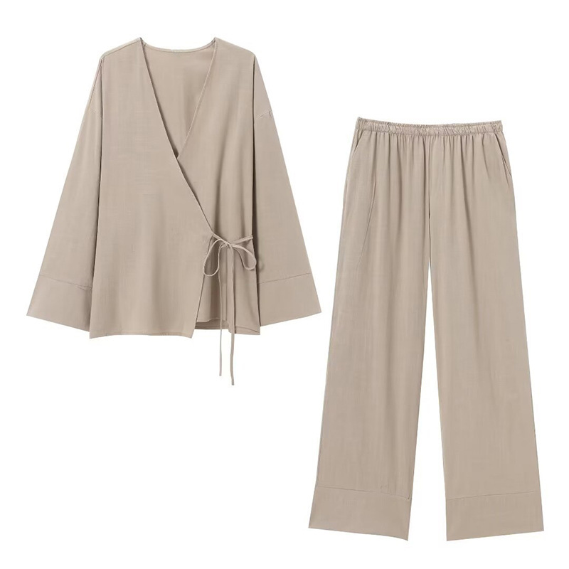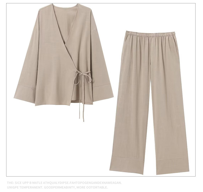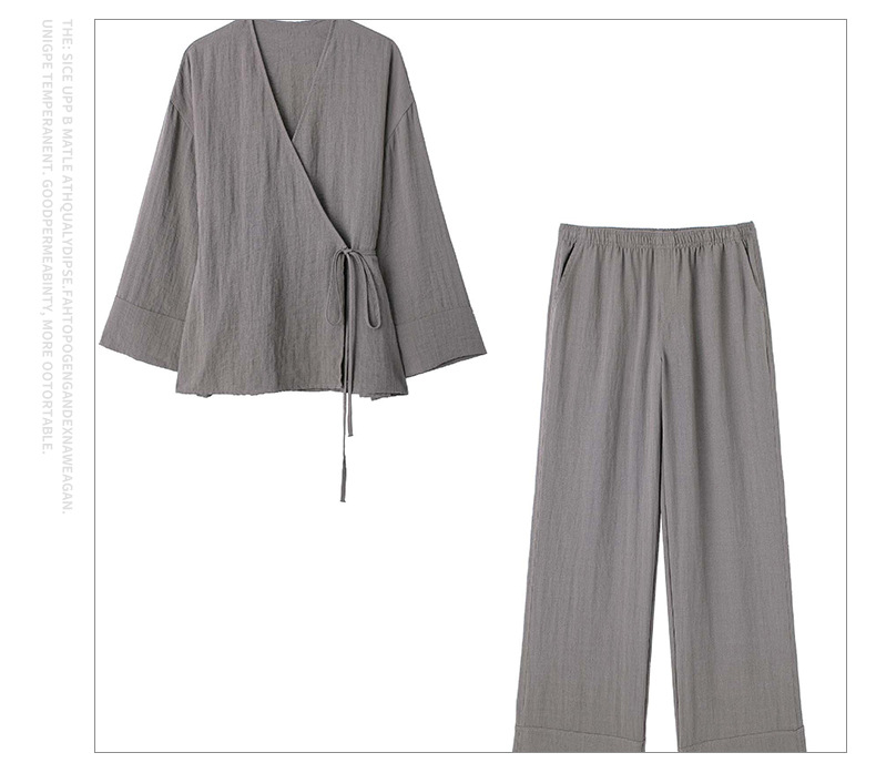 유럽과 미국 스타일의 대외 무역 여성 v 넥 더블 브레스트 기모노 스타일 아우터 카디건 루즈 솔리드 컬러 바지 캐주얼 투피스 슈트스토어 가기