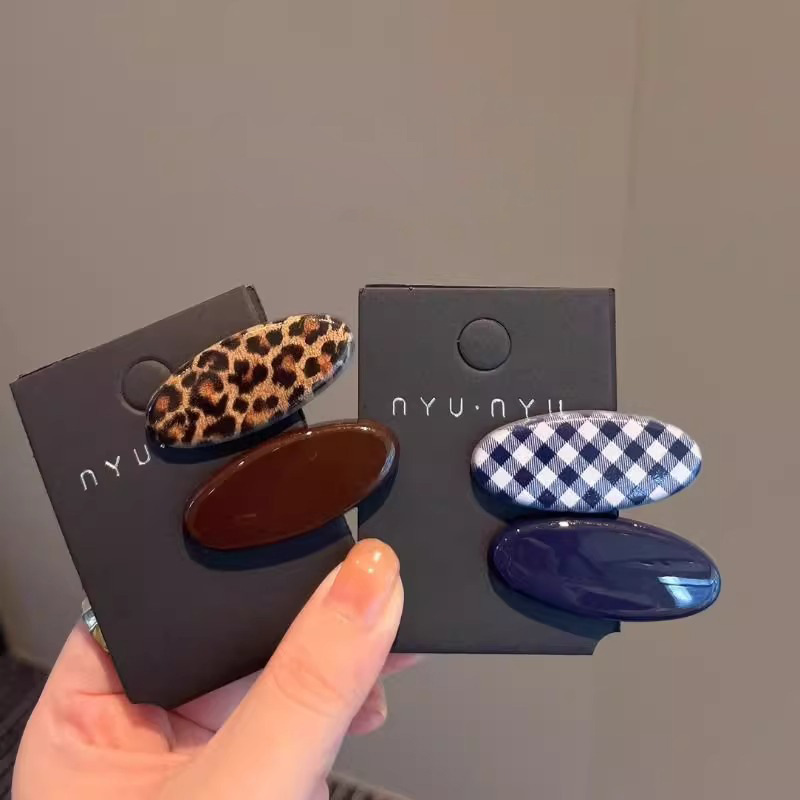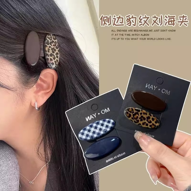 네이비 체크무늬 앞머리핀, 복고풍 기질의 레오파드 프린트 사이드 머리핀, 여성 이마머리핀, 덕빌머리핀스토어 가기