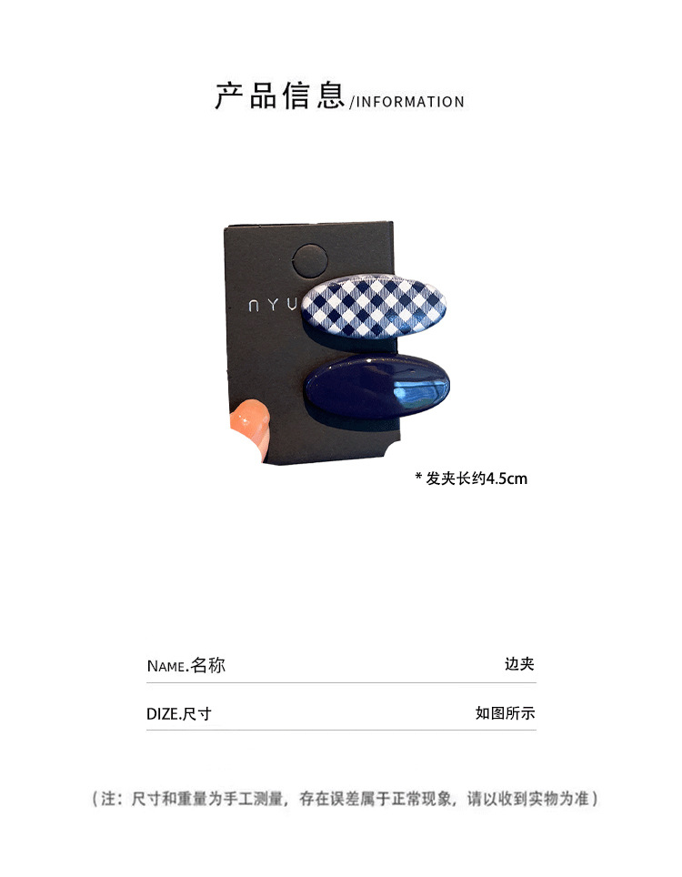 • 네이비 체크무늬 사이드 클립 [2종세트]