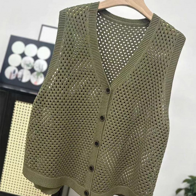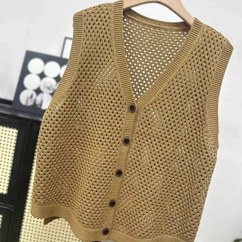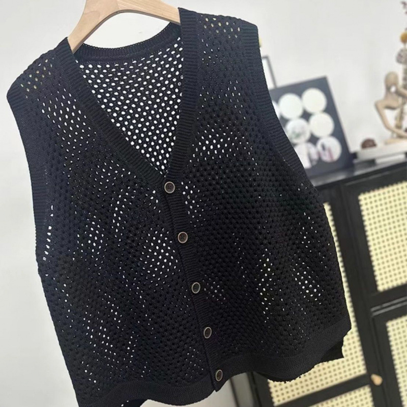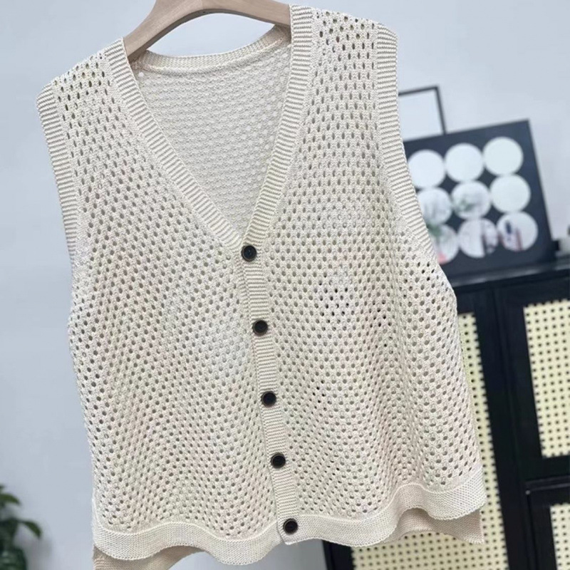 여성용 대형 중공 면 니트 조끼, 봄, 가을 느슨한 복고풍 다용도 스웨터, 슬리밍 조끼