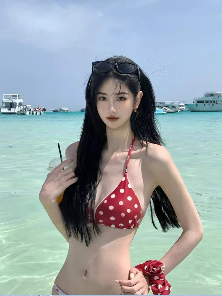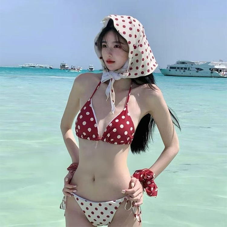 아쿠아맨 연인 대비 색상 빨간색 폴카 도트 수영장 사진 온천 수영복 여성의 새로운 스플릿 비키니 수영복스토어 가기