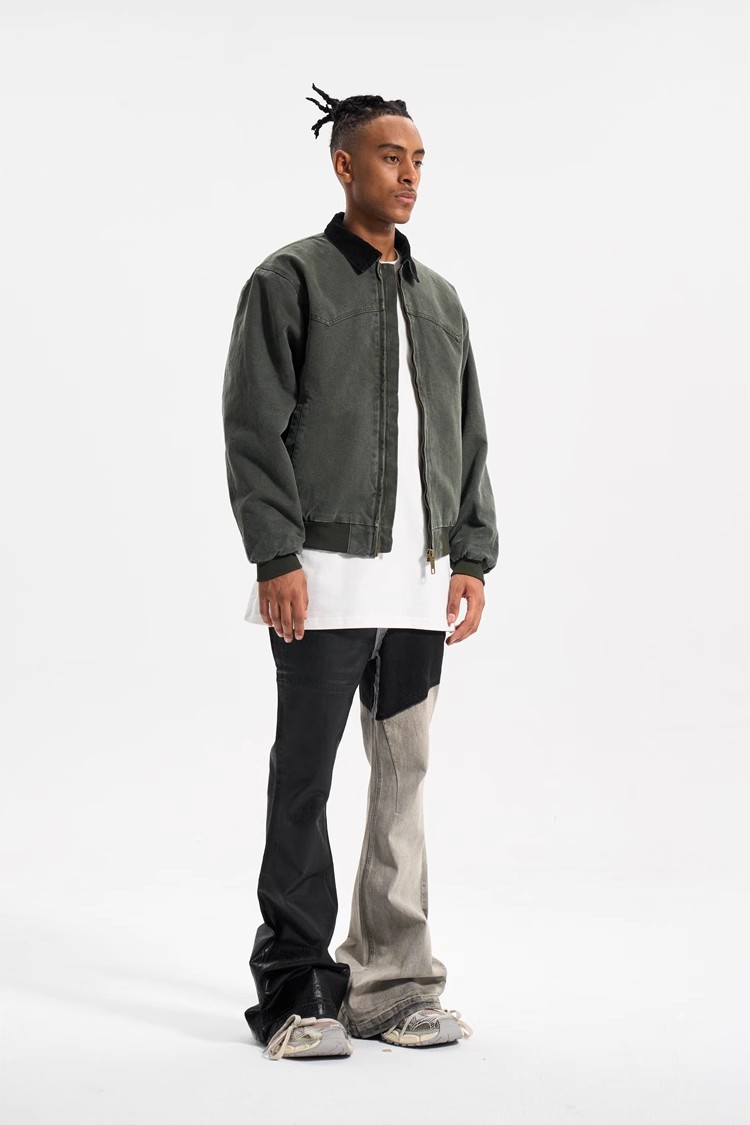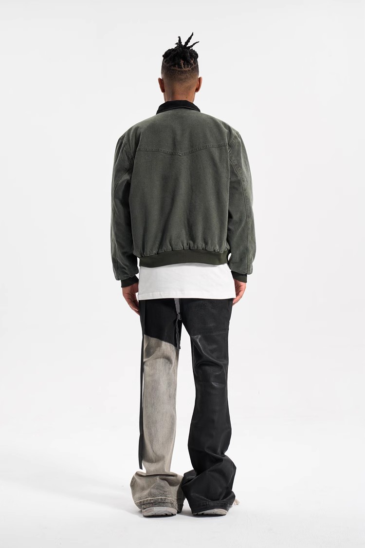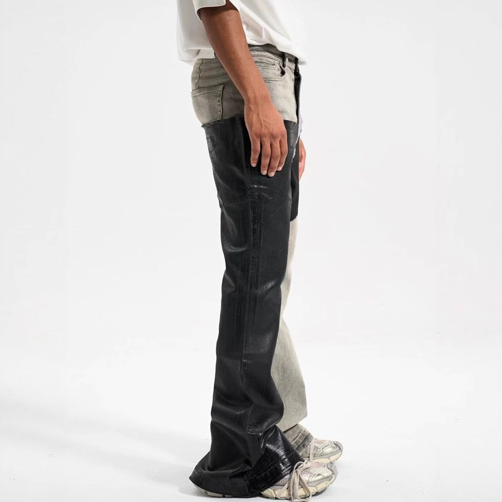 아메리칸 스트리트 스타일 바이브 스타일 디스트레스드 롱 리본 대비 컬러 워싱 스플라이싱 코팅 크로스보더 남성용 마이크로 플레어 청바지스토어 가기