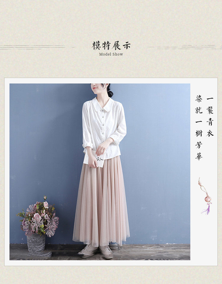 여성을위한 패션 셔츠 2025 봄과 여름 새로운 스타일 예술적 복고풍 스타일 인형 칼라 자카드 캐주얼 느슨한 긴팔 탑 여성