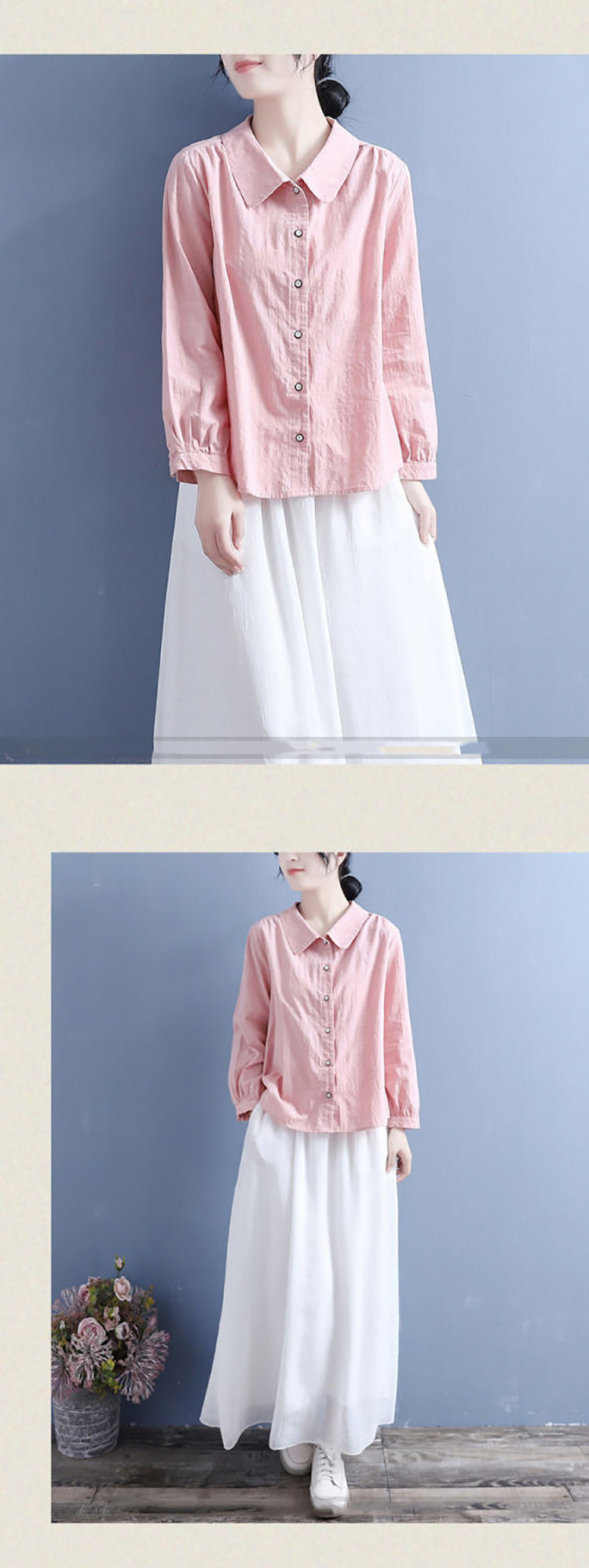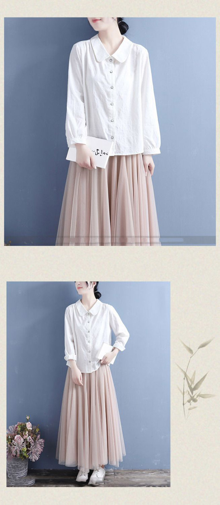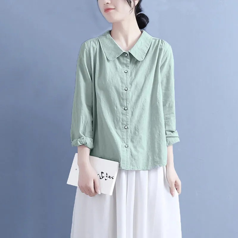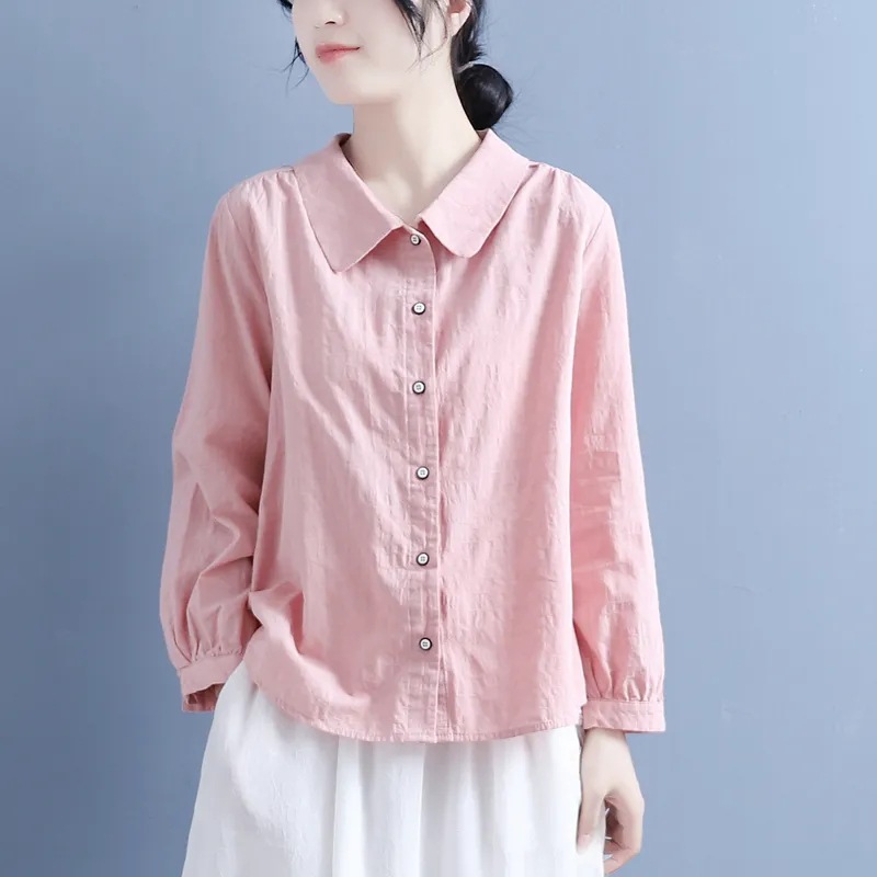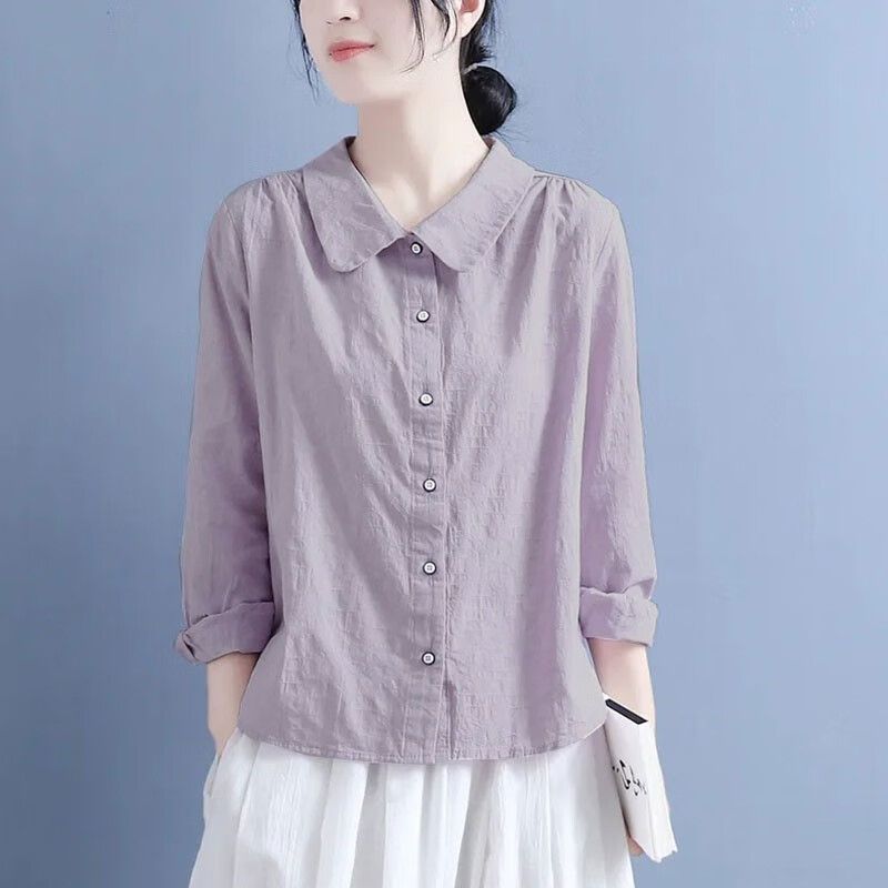 여성을위한 패션 셔츠 2025 봄과 여름 새로운 스타일 예술적 복고풍 스타일 인형 칼라 자카드 캐주얼 느슨한 긴팔 탑 여성스토어 가기