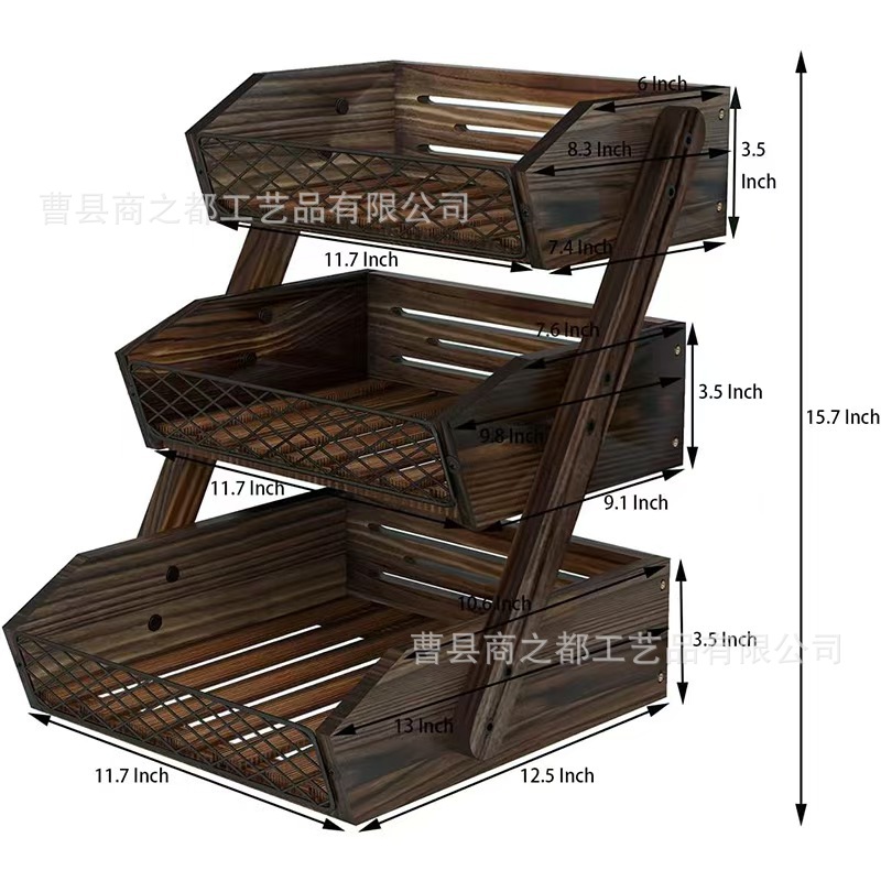 나무 주방 다층 보관 랙 조리대 과일 및 야채 보관 랙 가정용 철제 및 목재 결합 3층 보관 랙