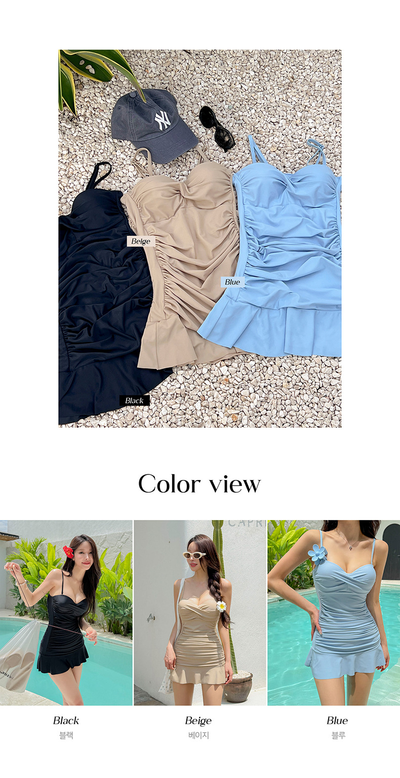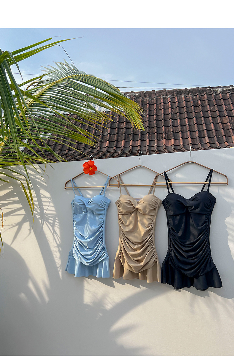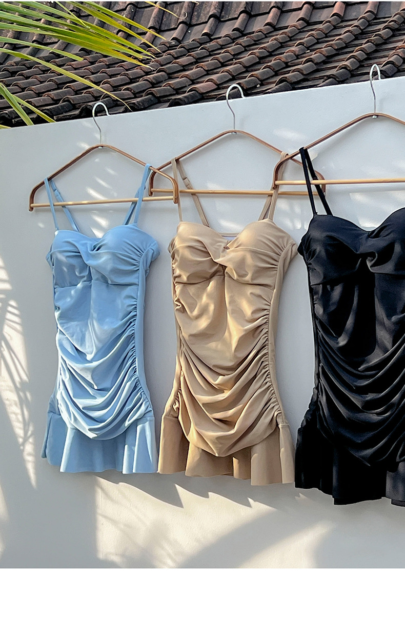 3 색 주름 슬리밍 크로스 보더 2025 한국 온천 여성을위한 새로운 하이 웨이스트 보수적 인 솔리드 컬러 원피스 스커트 수영복스토어 가기