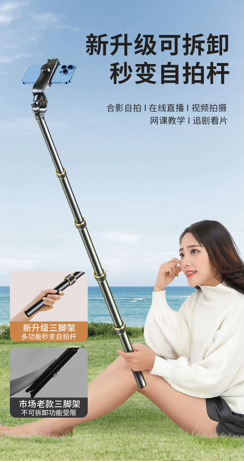 라이브 방송용 휴대폰 거치대, 스마트 블루투스 셀카 촬영 삼각대, 태블릿 회전 보조 조명, 라이브 방송 필수템