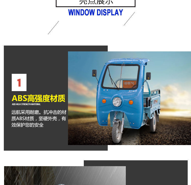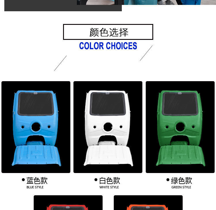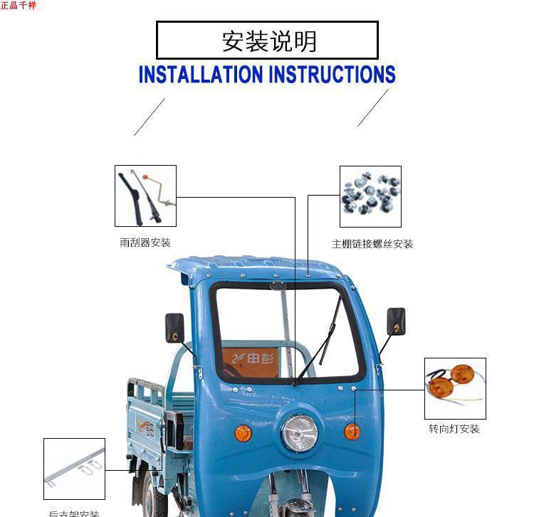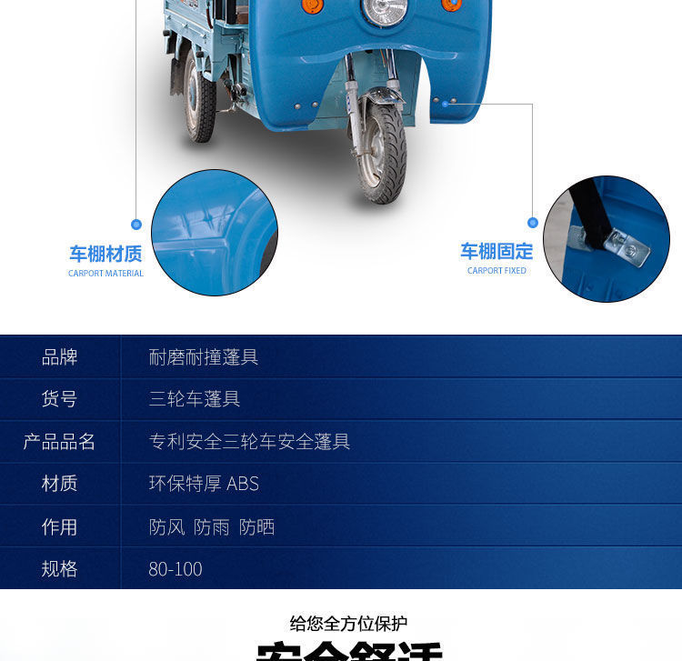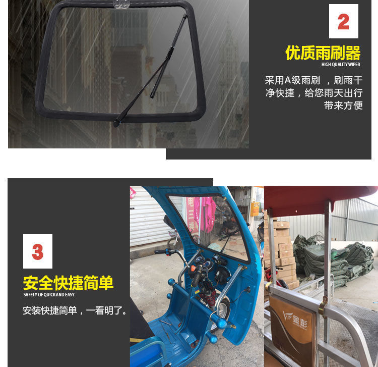 전기 삼륜차 차고, 차양, 차양, 운전실 앞 차고, 배터리 차고, 플라스틱 앞창