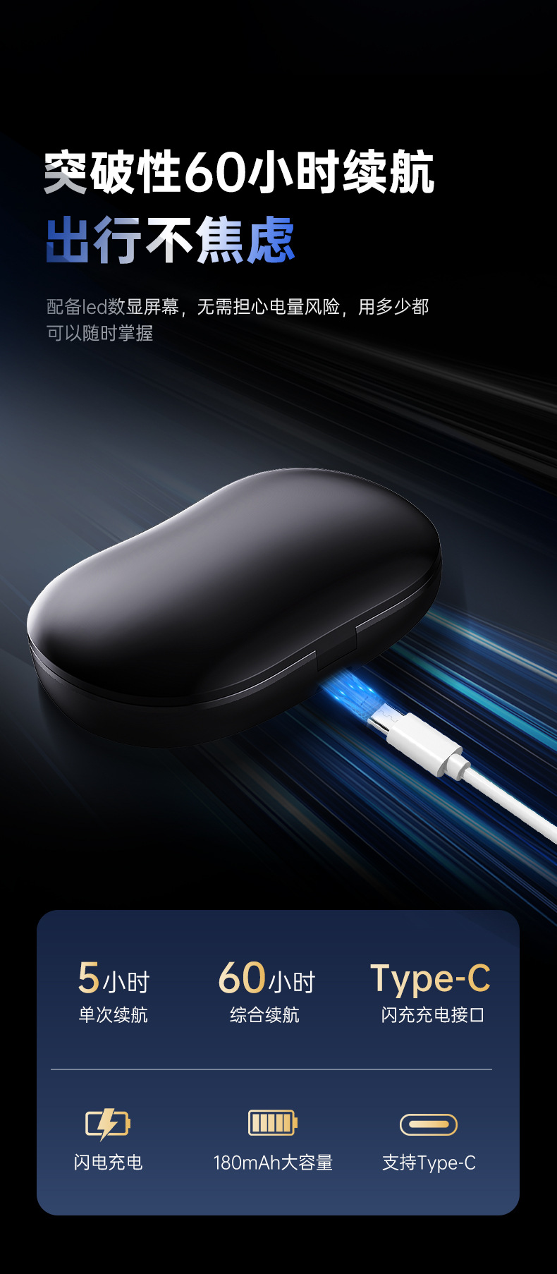 工作时间:4-5小时,充电仓可以给耳机充2次+。