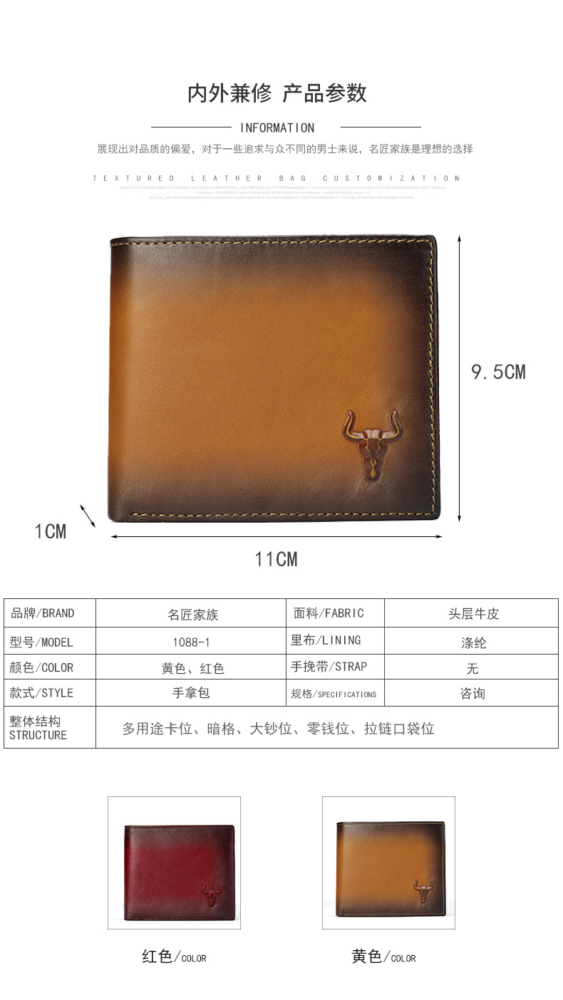 유명 장인 가죽 정품 가죽 남성용 지갑 복고풍 트렌디 컬러 다기능 RFID 항자기 도난 방지 남성용 지갑스토어 가기
