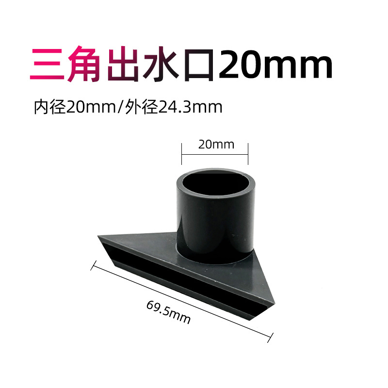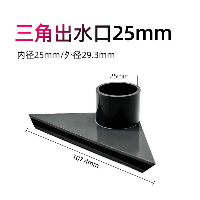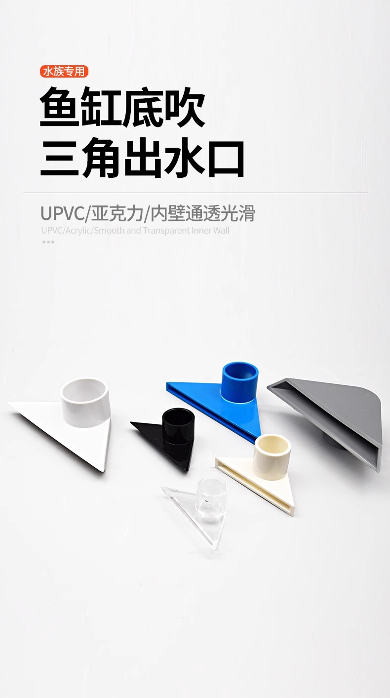 물고기 탱크 투명한 물구 흡입구, 하단 삼각형 물구, 검정색 회색 PVC 물구, 수정된 하단 배설물 파이프 피팅